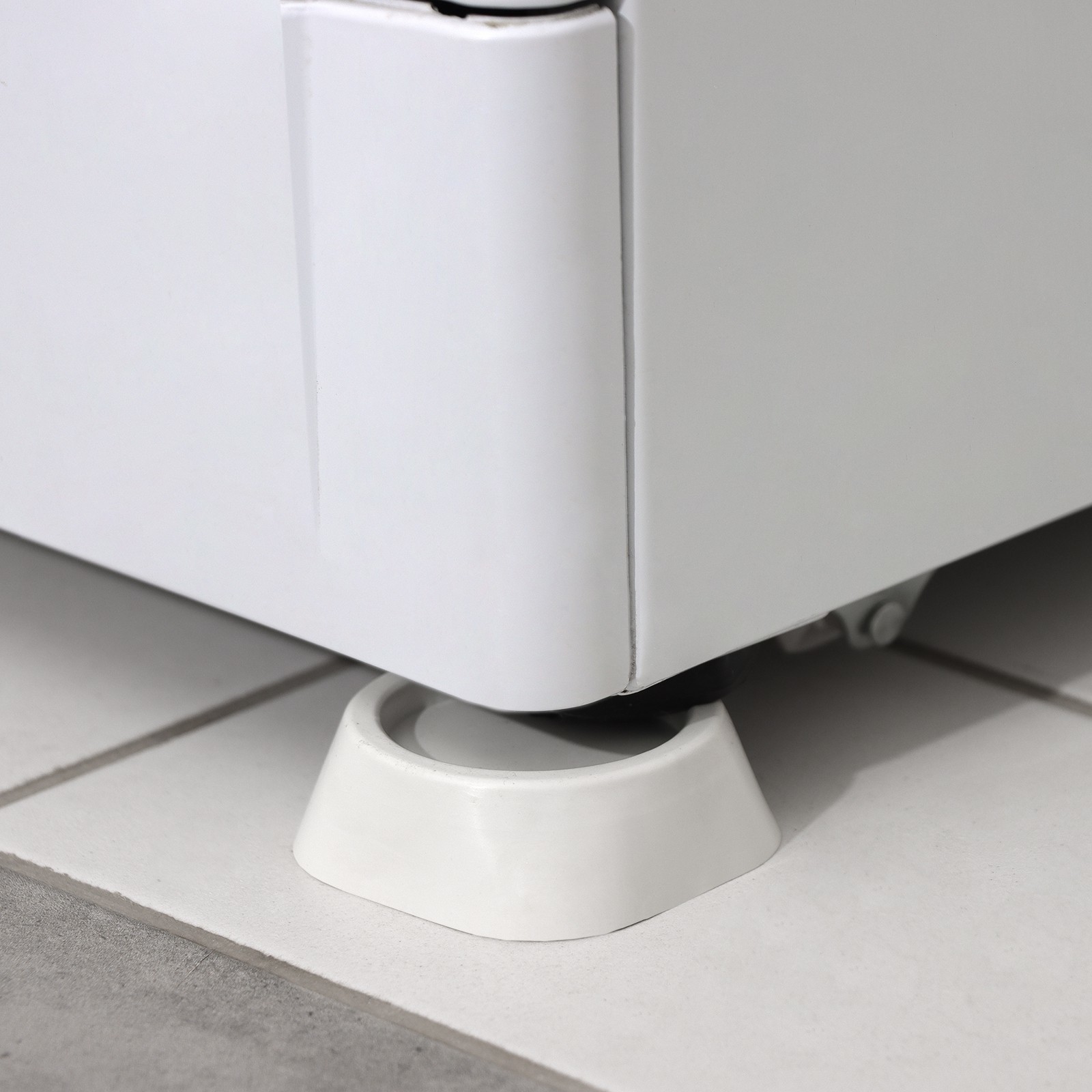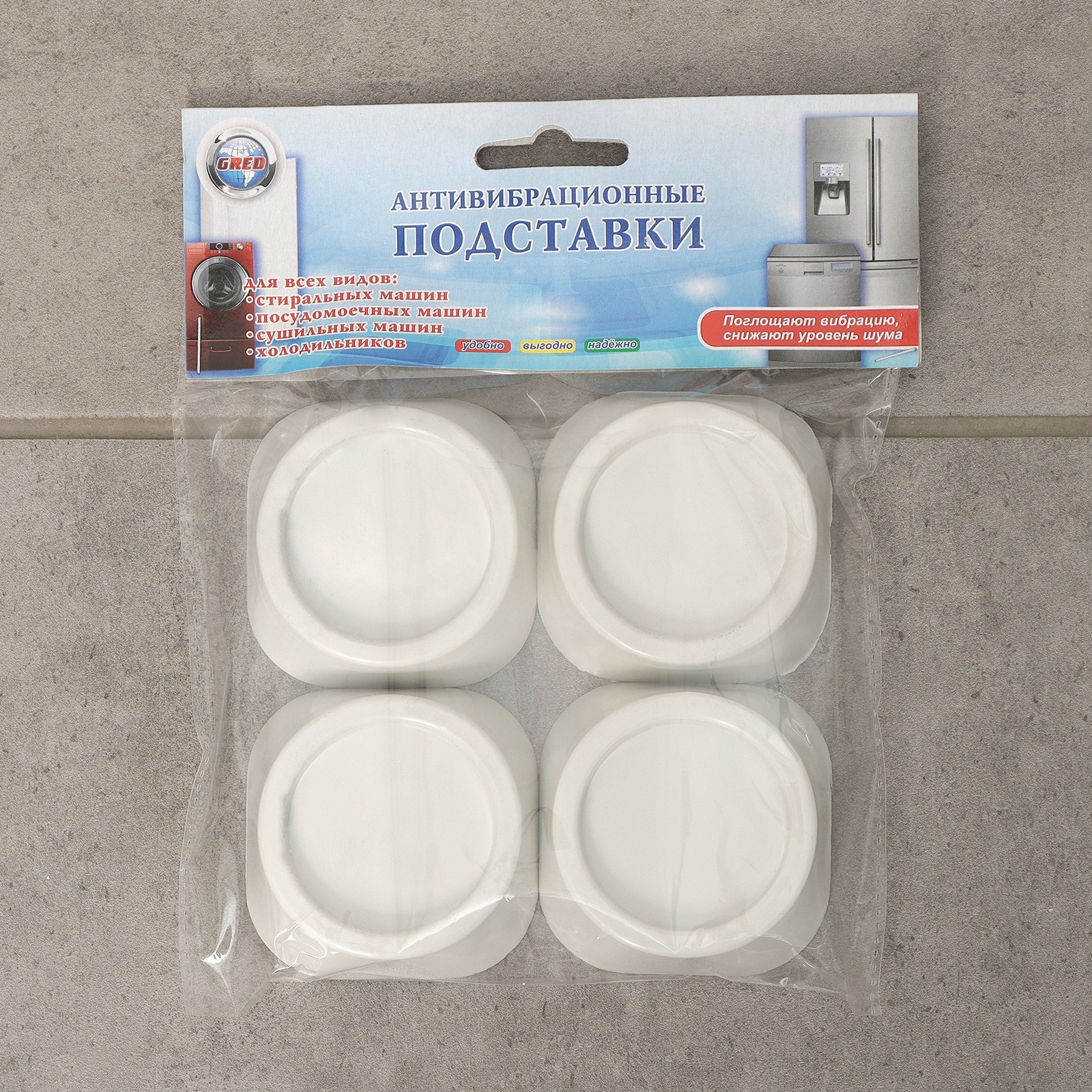 Набор подставок антивибрационных, 4 шт, цвет белый. Антивибрационные подставки предназначены для отдельно стоящих стиральных машин и холодильников. Это простое и эффективное решение для уменьшения вибрации. Защищает керамическую плитку, деревянные полы и другие виды покрытий от механических повреждений. Преимущества использованияЗащищают напольное покрытие от вмятин и разрывов. Предотвращают скольжение стиральной машины в режиме отжима. Существенно сокращают возможные шумы. Для эффективной работы подставки рекомендуется менять не реже 1 раза в год. Цвет: Белый Диаметр, см: 6.3 В упаковке, шт.: 4 Материал: ПВХ Температурное ограничение: Нет  развернуть описание ▼
