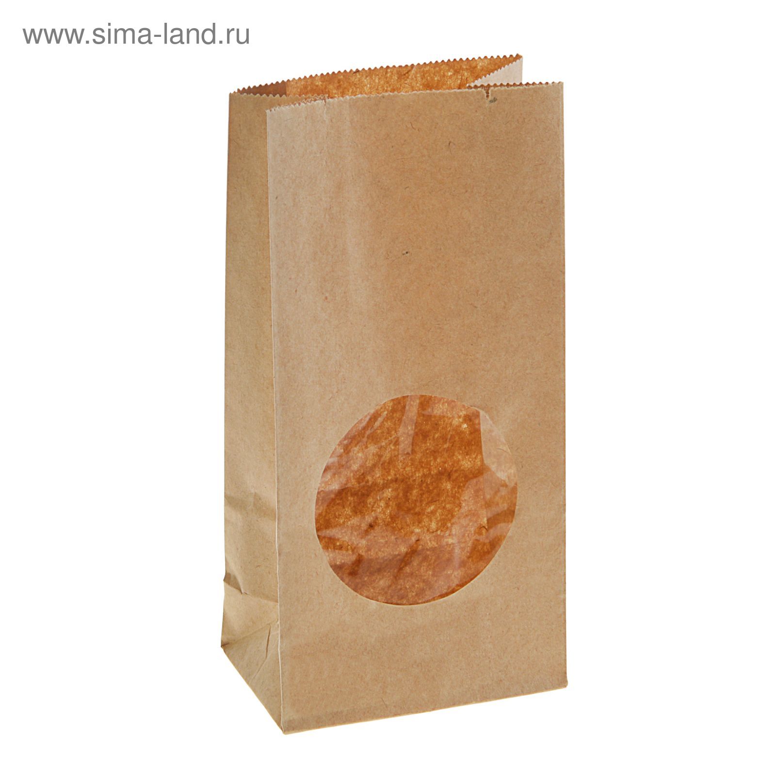 Пакет крафт бумажный фасовочный, двухслойный, с окном, прямоугольное дно 10(7) х 6 х 20 см