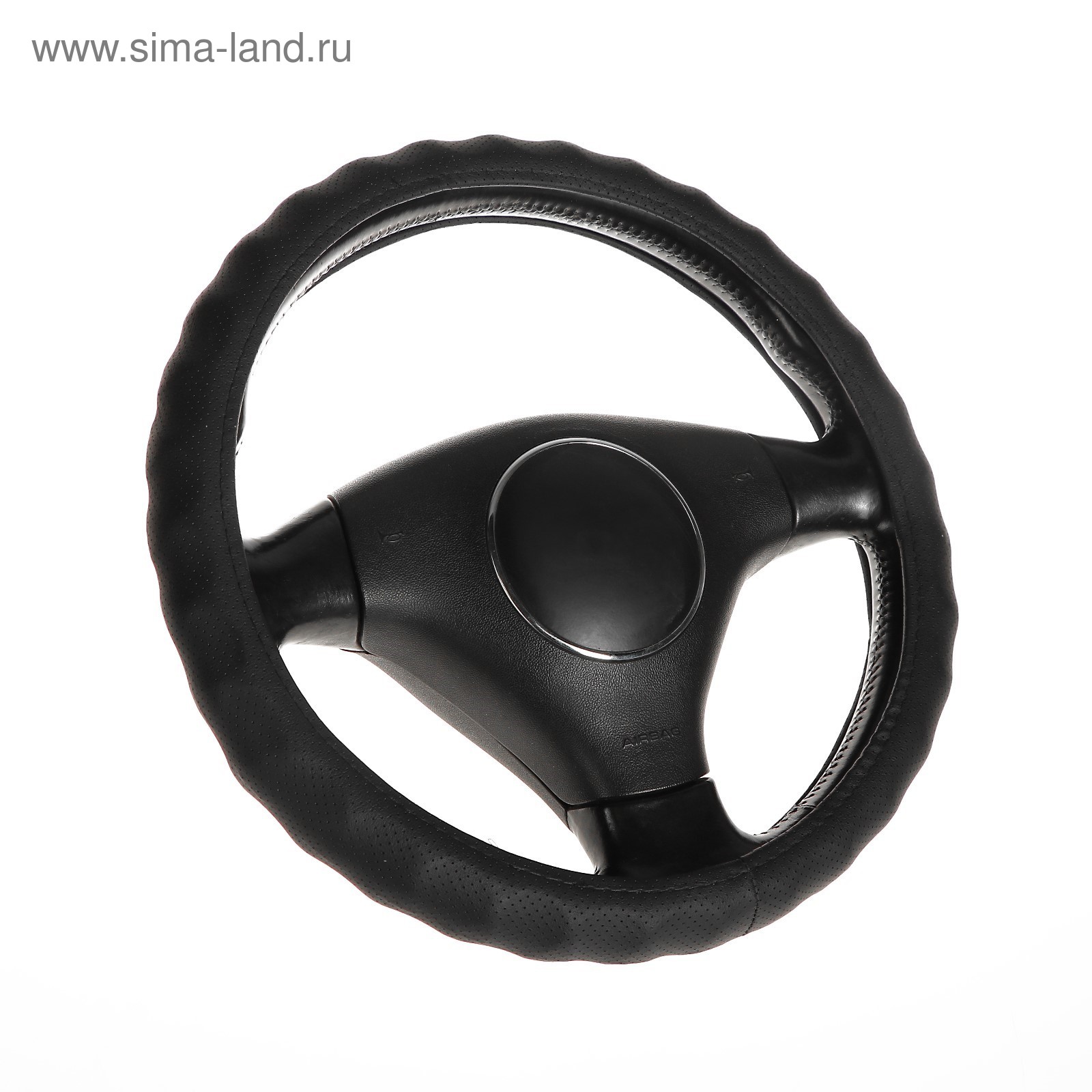 Оплетка на руль Torso, кожа Pu, перфорация, рельефная, размер 38 см, черный