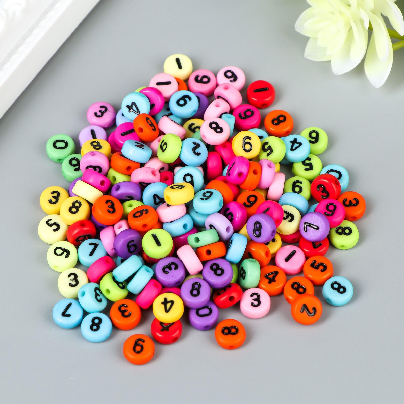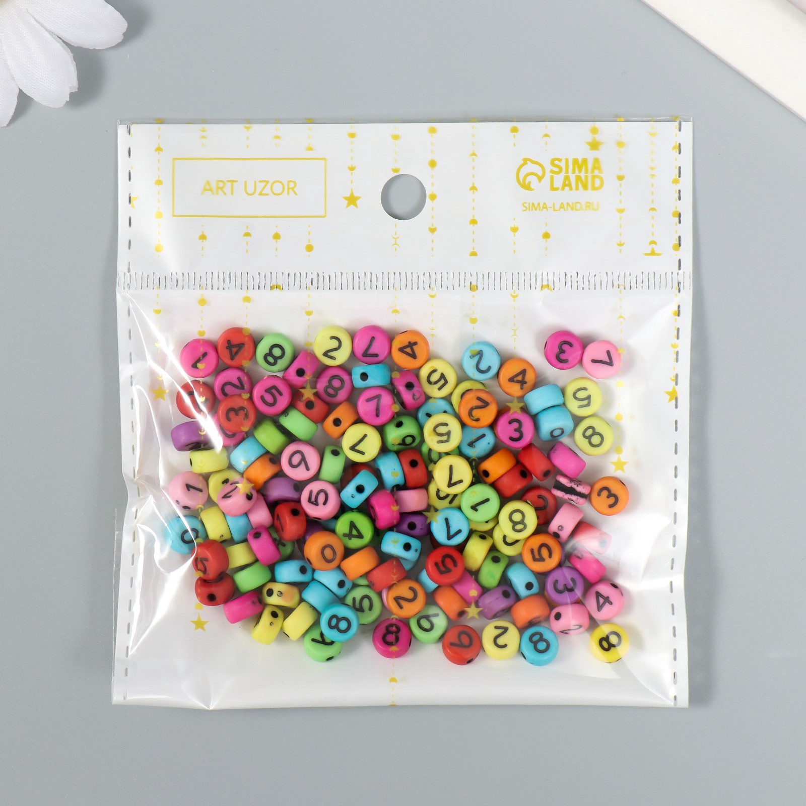 Набор бусин для рукоделия и плетения «арт узор. разноцветные цифры», пластик, 20 г, 0.7 0.7 см.