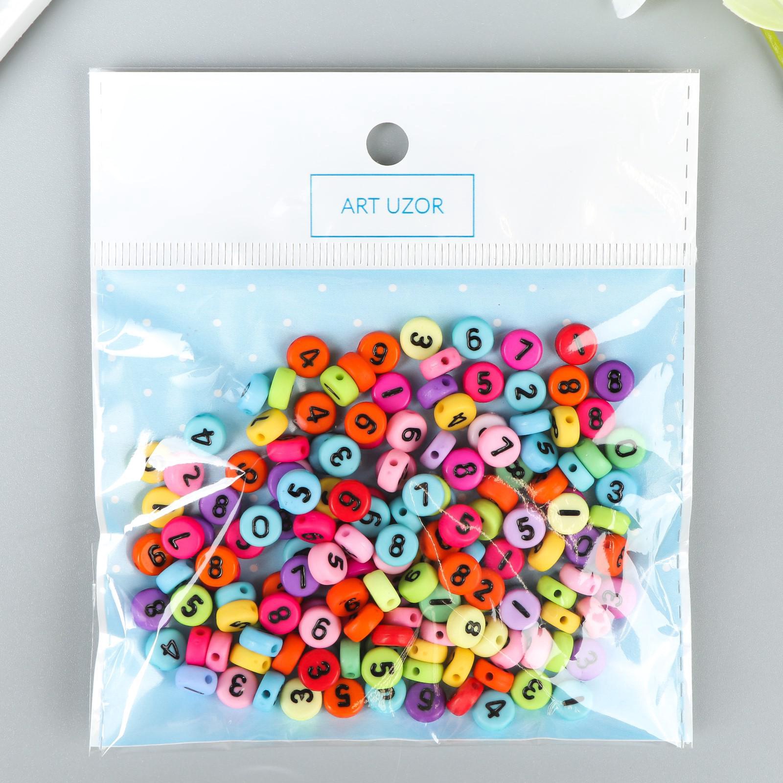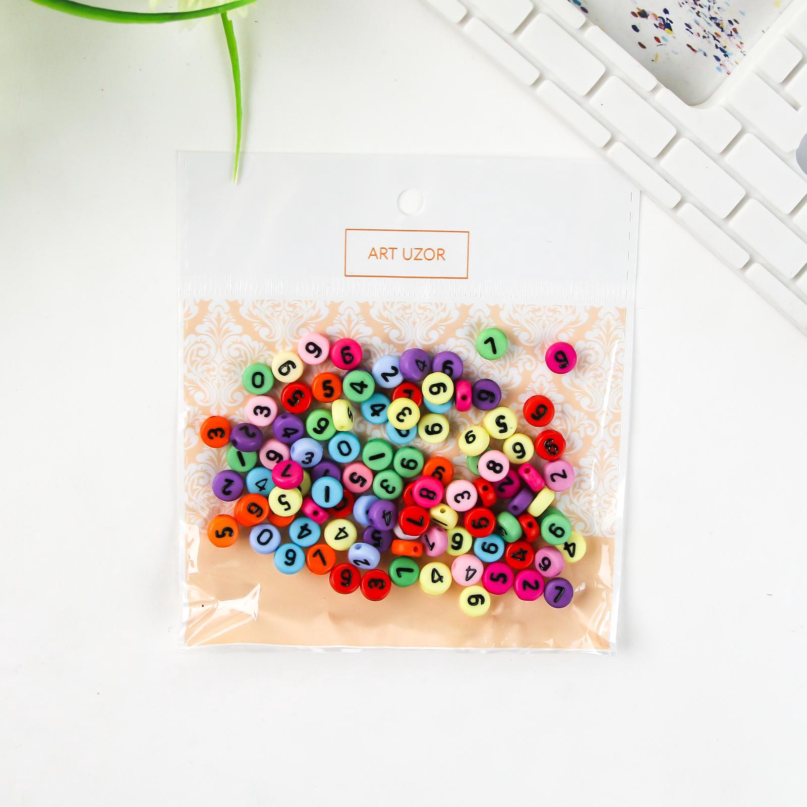 Набор бусин для рукоделия и плетения «арт узор. разноцветные цифры», пластик, 20 г, 0.7 0.7 см