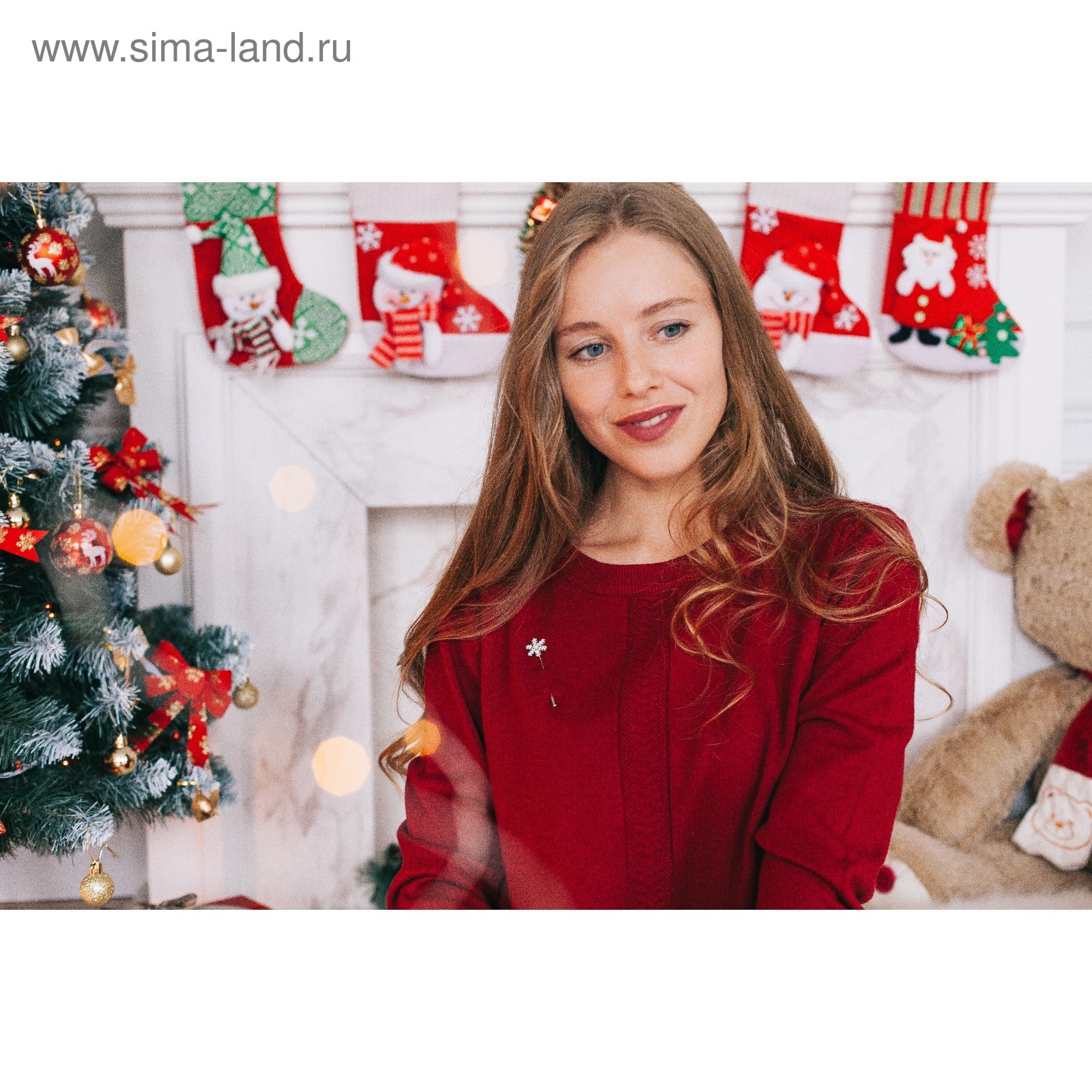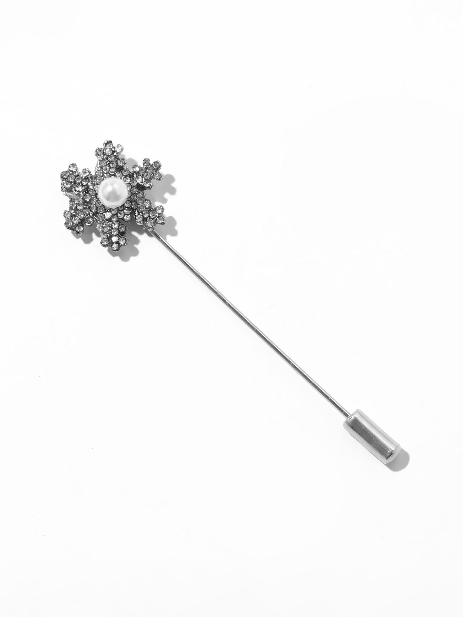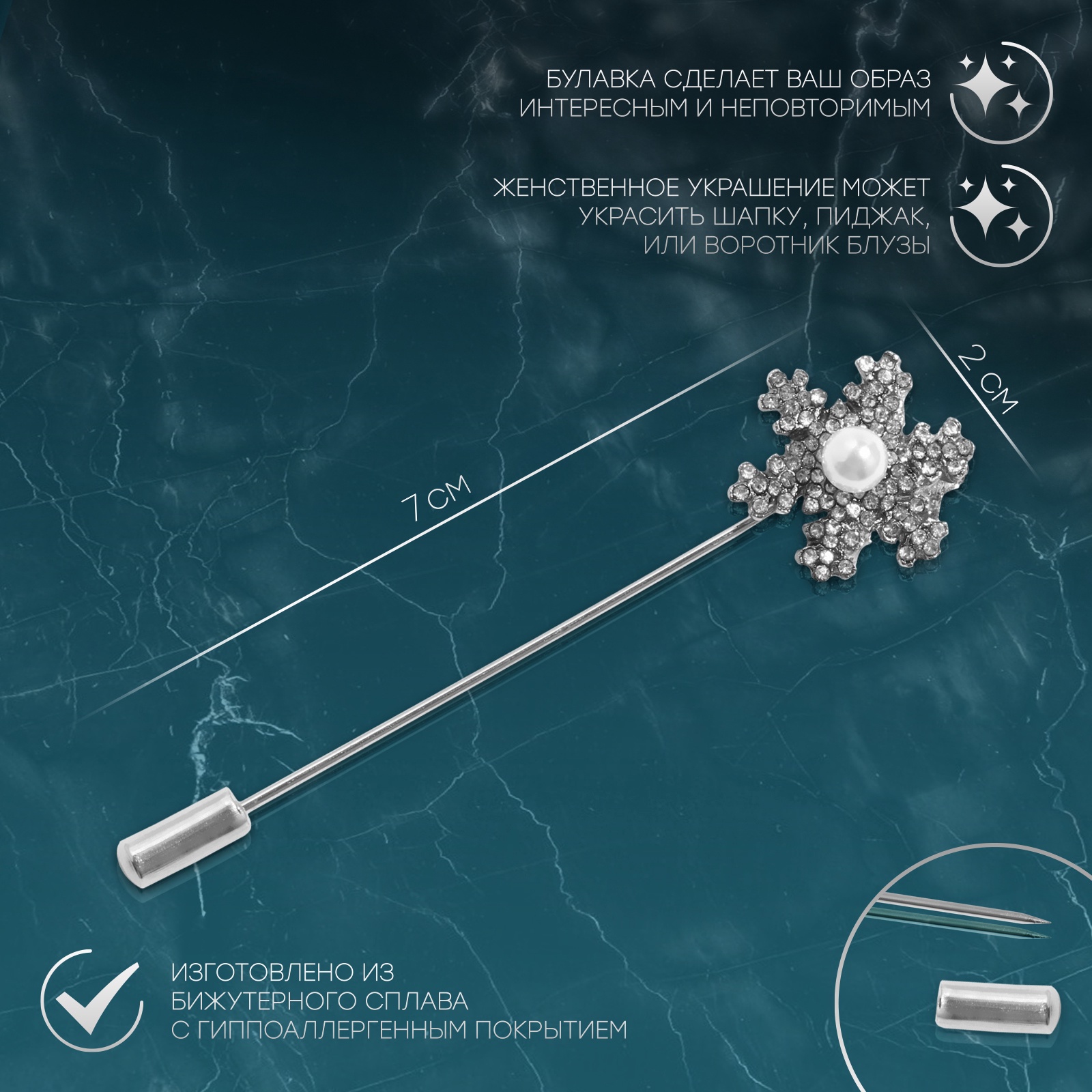 Булавка новогодняя «снежинка», бусина, 7 см, белая в серебре