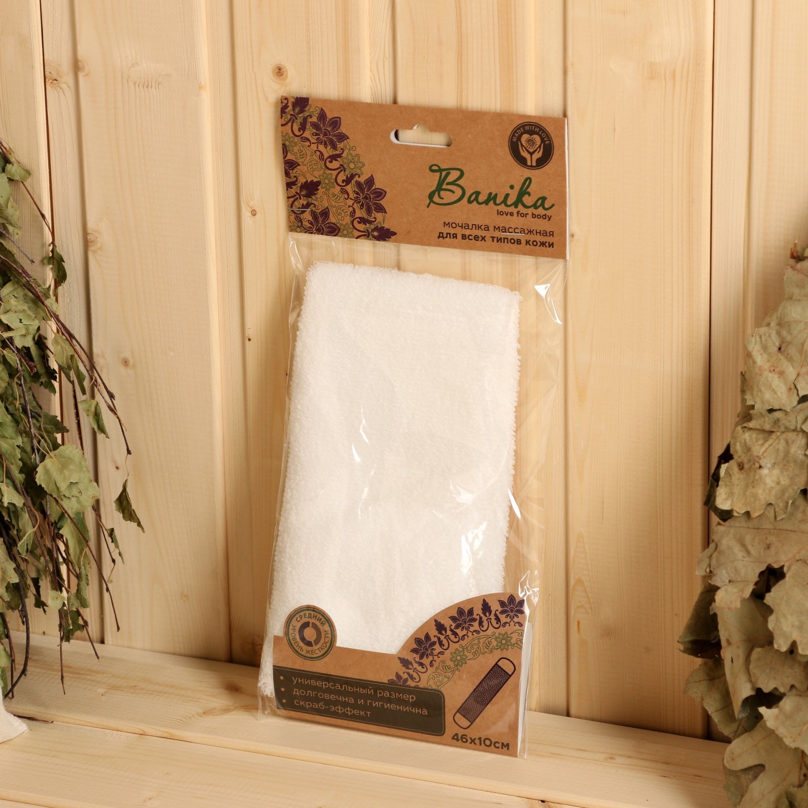 Мочалка банная "букле" длинная с ручками, 46х10см