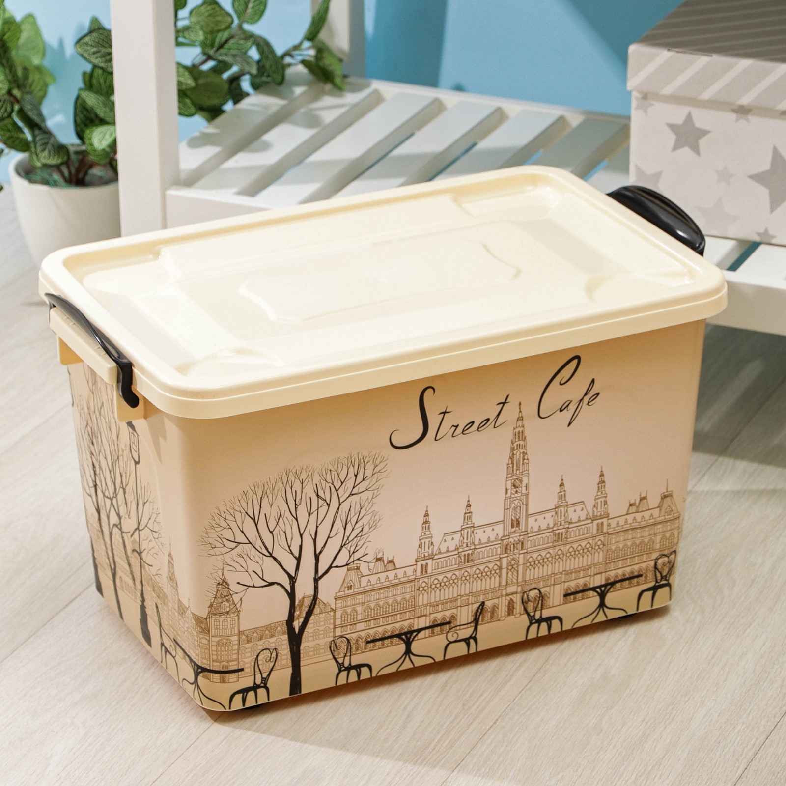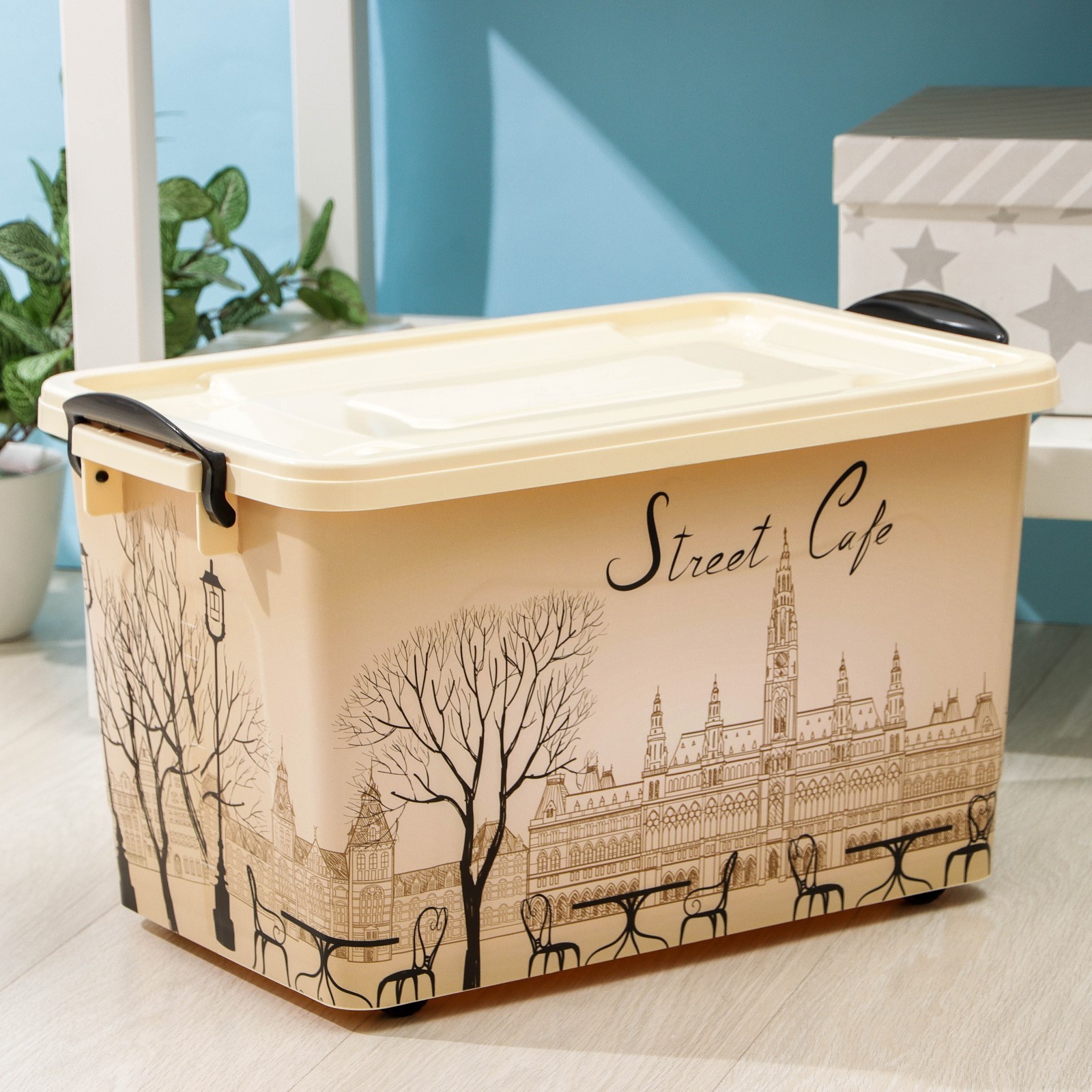 Контейнер для хранения с крышкой «уличное кафе», 35 л, 50,5x31,5x28 см, на колёсиках, цвет слоновая кость