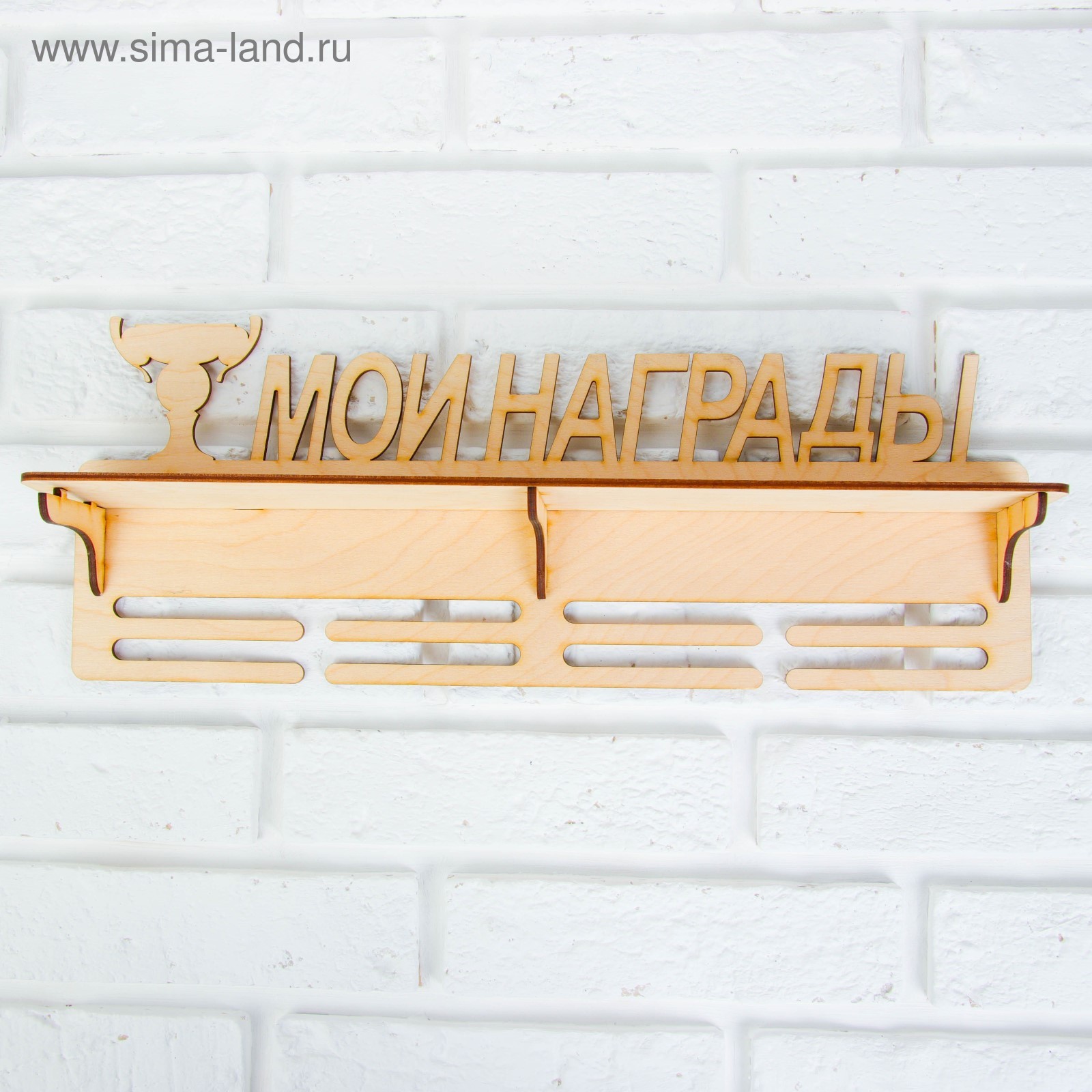 Медальница с полкой "мои награды", 45х17,5см. Медальница с полкой подходит для медалей и жетонов на лентах, а также для кубков и грамот. Медальница с полкой изготовлена из фанеры. Произведено в России. Цвет: Бежевый Материал: Дерево Вид спорта: Универсальный Вид: По дереву Особенность медальницы: С полкой  развернуть описание ▼