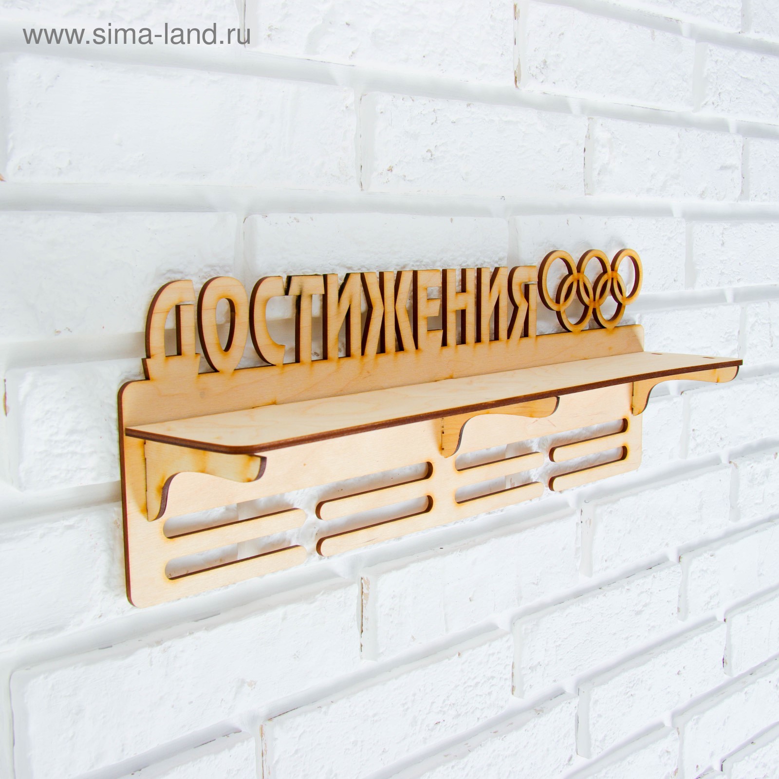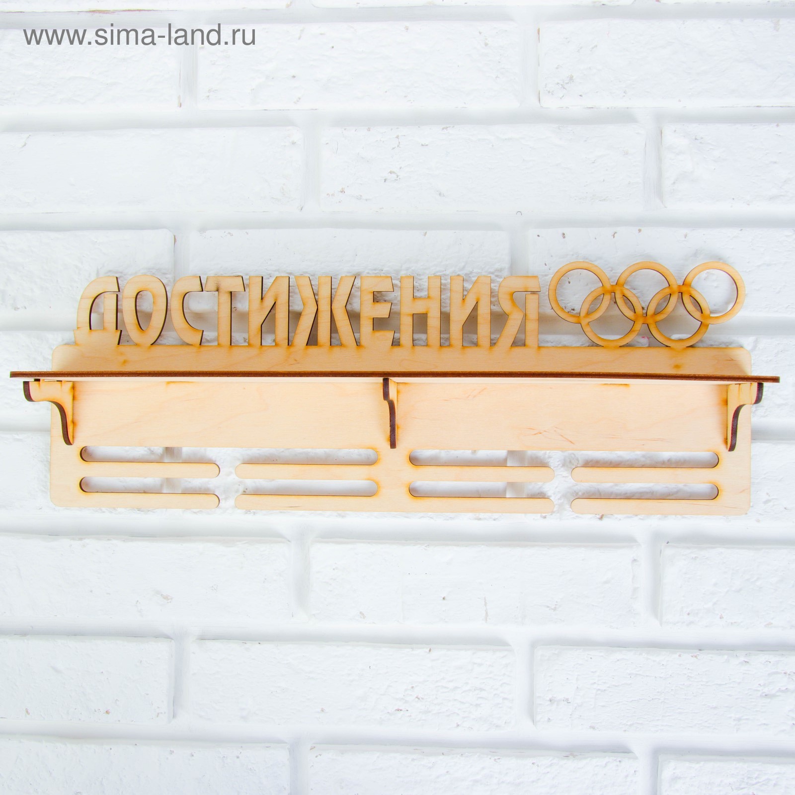 Медальница с полкой "достижения" , 45х16см. Медальница с полкой подходит для медалей и жетонов на лентах, а также для кубков и грамот. Медальница с полкой изготовлена из фанеры. Произведено в России. Цвет: Бежевый Материал: Дерево Вид спорта: Универсальный Вид: По дереву Особенность медальницы: С полкой  развернуть описание ▼