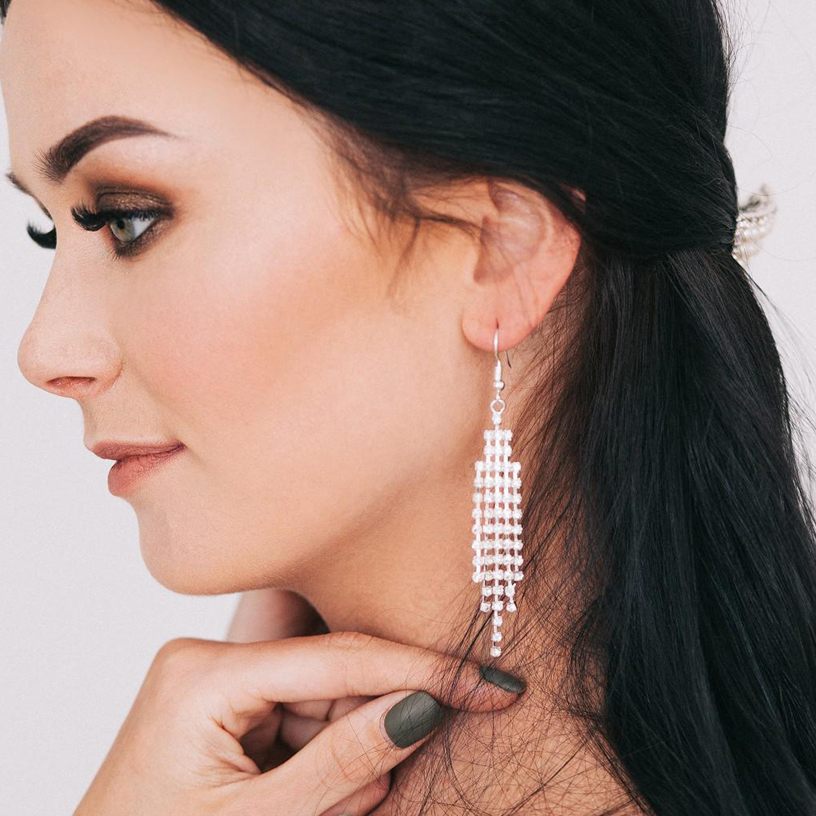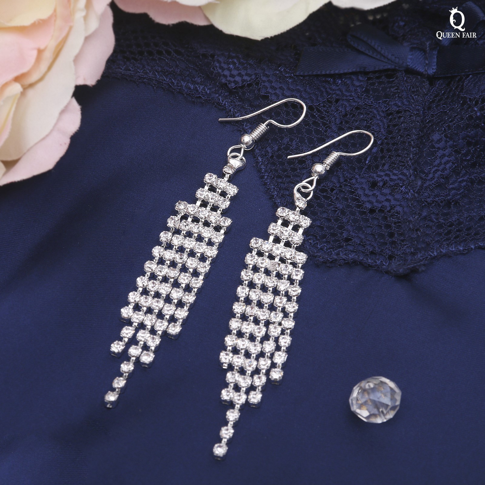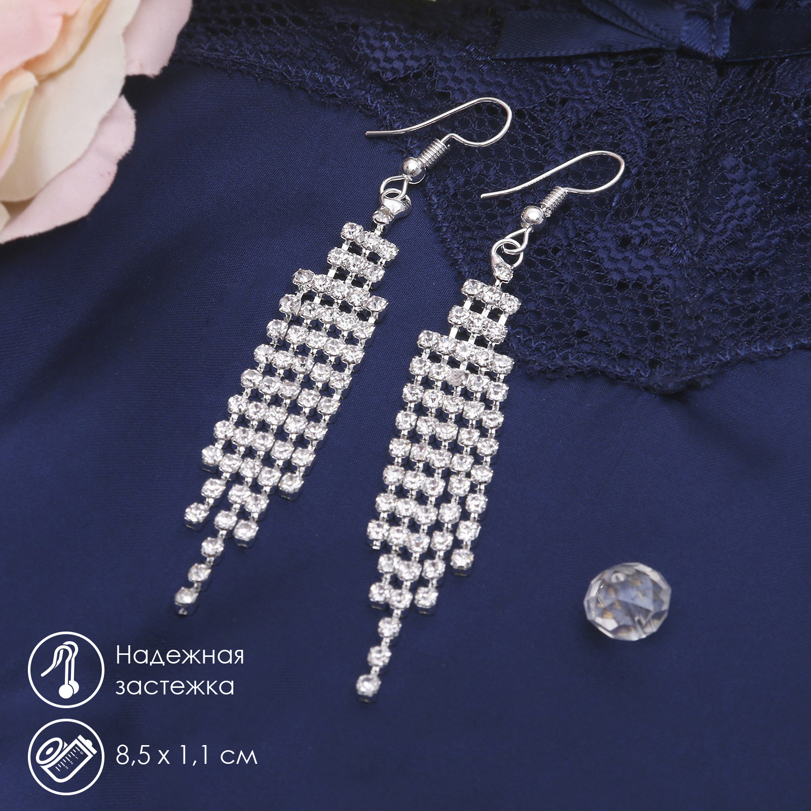 Серьги висячие со стразами Princess водопад, цвет белый в серебре, 8,5 см