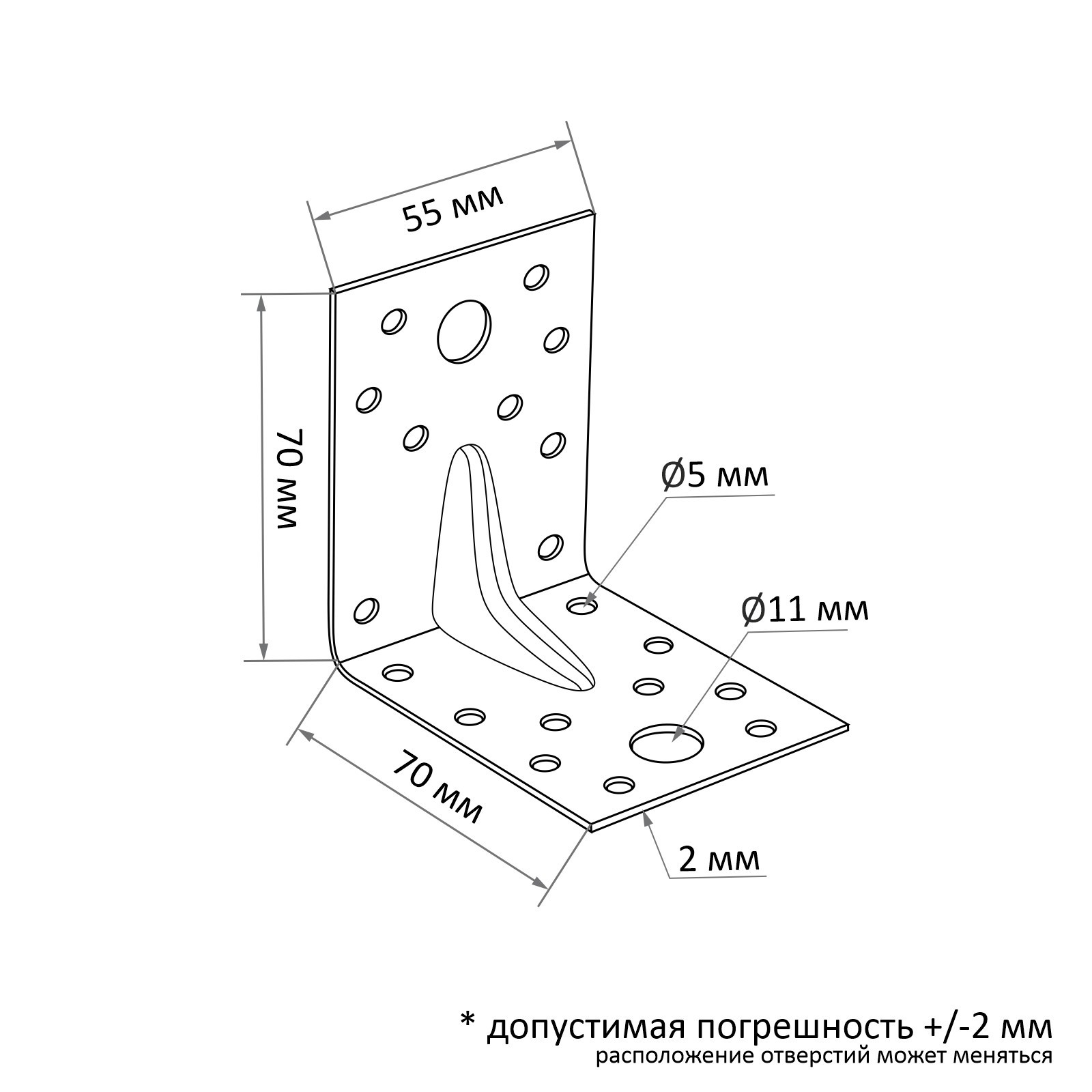 Уголок крепежный усиленный тундра Krep, 70 70 55 2 мм