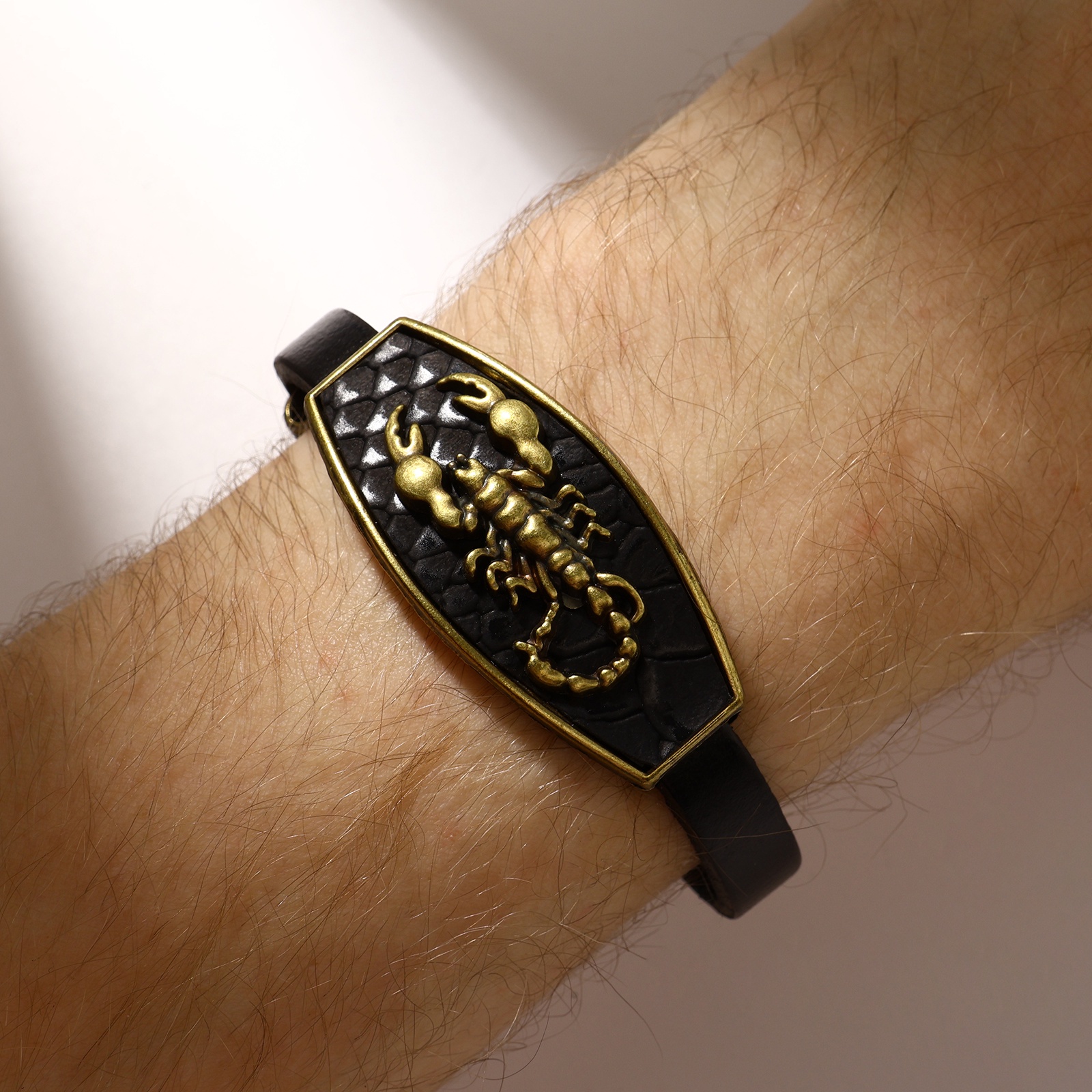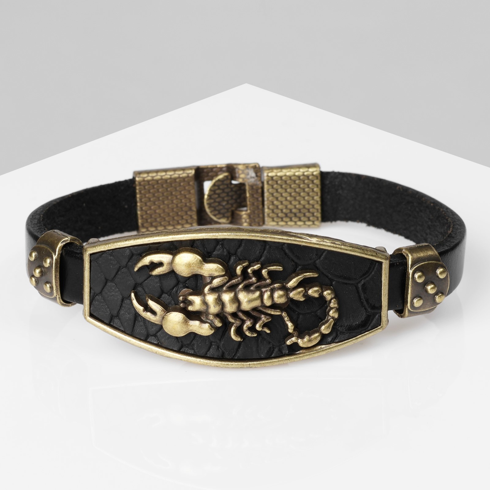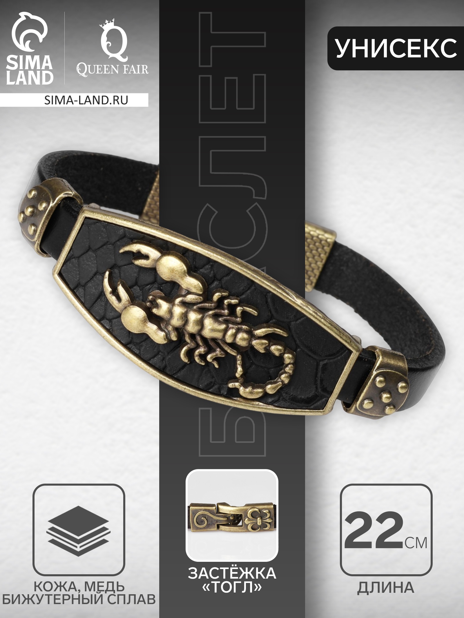 Браслет унисекс «атлант» скорпион, цвет чёрный с чернёным золотом, 22 см