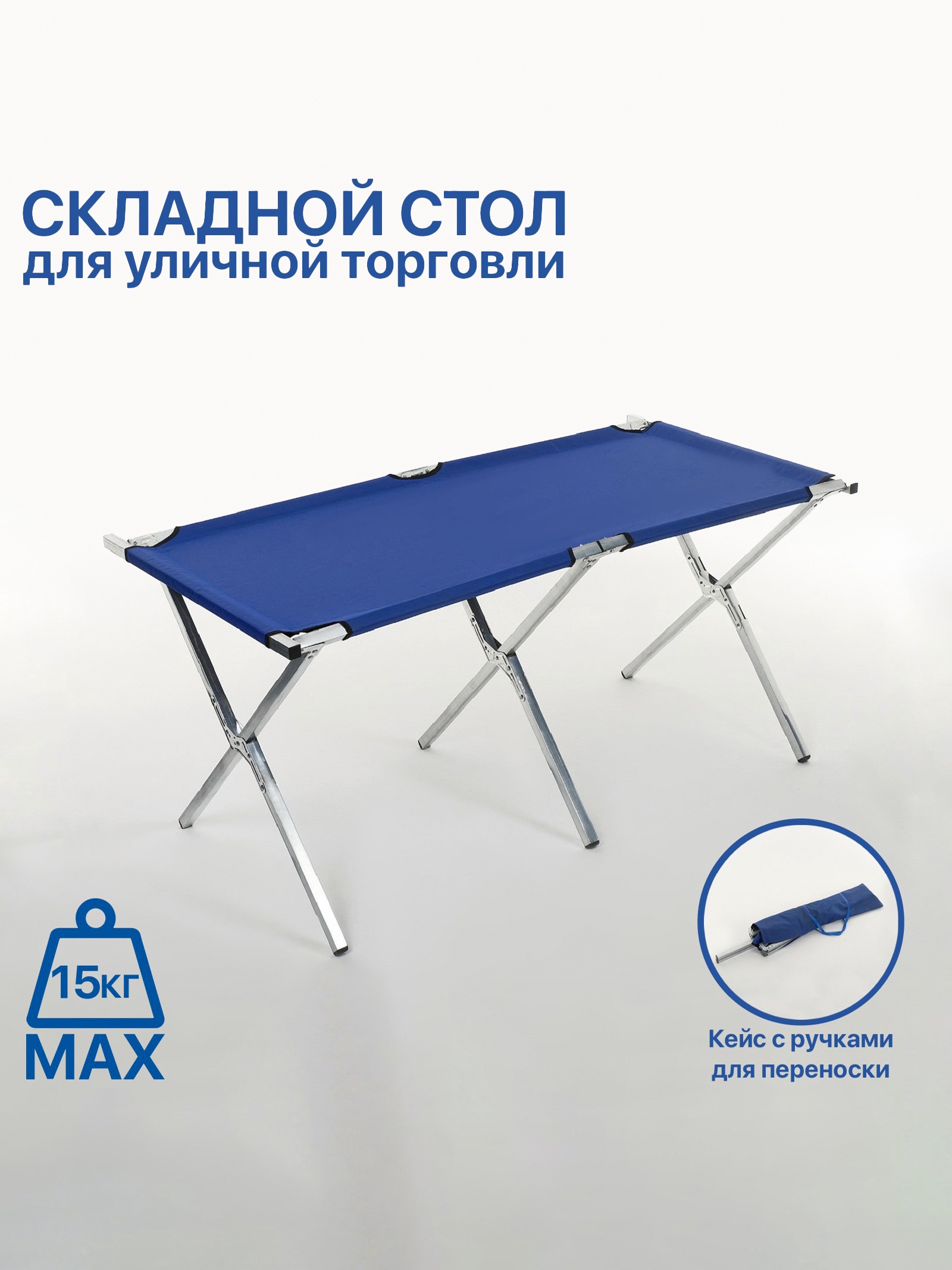 Стол для уличной торговли, складной, 150 70 70, синий. Стол для уличной торговли, складной, 150 70 70 см, цвет синий Складной стол для уличной торговли с размерами 150 70 70 см — это удобное и прочное решение для выездной торговли. Его легко складывать и перевозить, а синяя поверхность устойчива к воздействию окружающей среды. Стол подходит для размещения товаров и создания комфортных условий работы. Функциональное и мобильное решение для торговли. Цвет:Синий|Длина, м:1.5|Ширина, м:0.7|Высота, м:0.7|Maксимальная нагрузка, кг:15|Разборный:Да|Страна:Китай  развернуть описание ▼