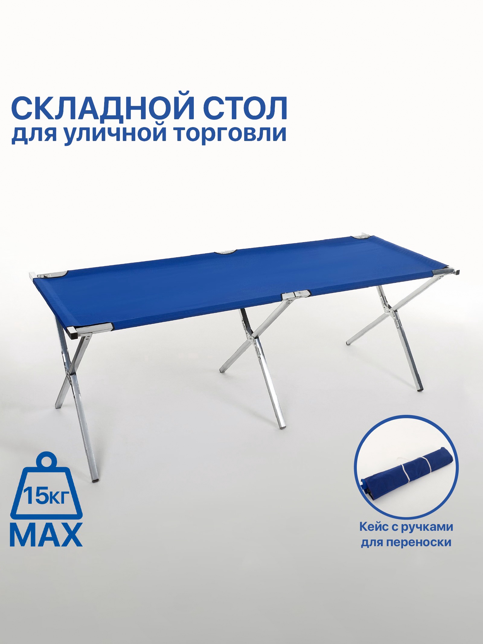 Стол для уличной торговли, складной, 200 70 70, синий. Стол для уличной торговли, складной, 200 70 70 см, цвет синий Складной стол для уличной торговли с размерами 200 70 70 см — это удобное и прочное решение для выездной торговли. Его легко складывать и перевозить, а синяя поверхность устойчива к воздействию окружающей среды. Стол подходит для размещения товаров и создания комфортных условий работы. Функциональное и мобильное решение для торговли. Цвет:Синий|Длина, м:2|Ширина, м:0.7|Высота, м:0.7|Maксимальная нагрузка, кг:15|Материал:Металл|Материал:Текстиль|Разборный:Да|Страна:Китай  развернуть описание ▼