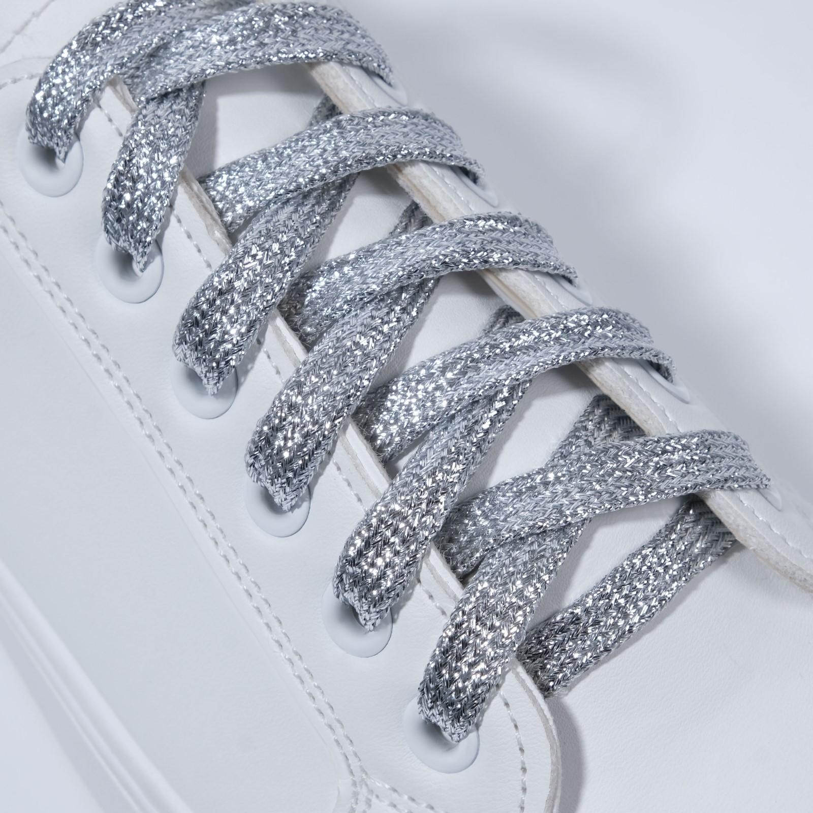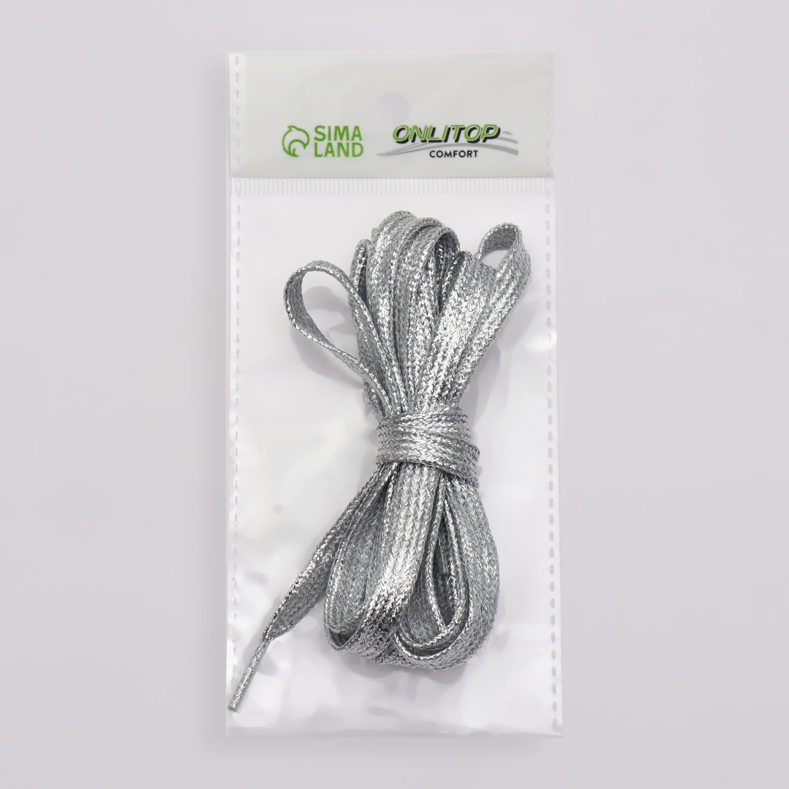 Шнурки для обуви, пара, плоские, 8 мм, 110 см, цвет серебристый