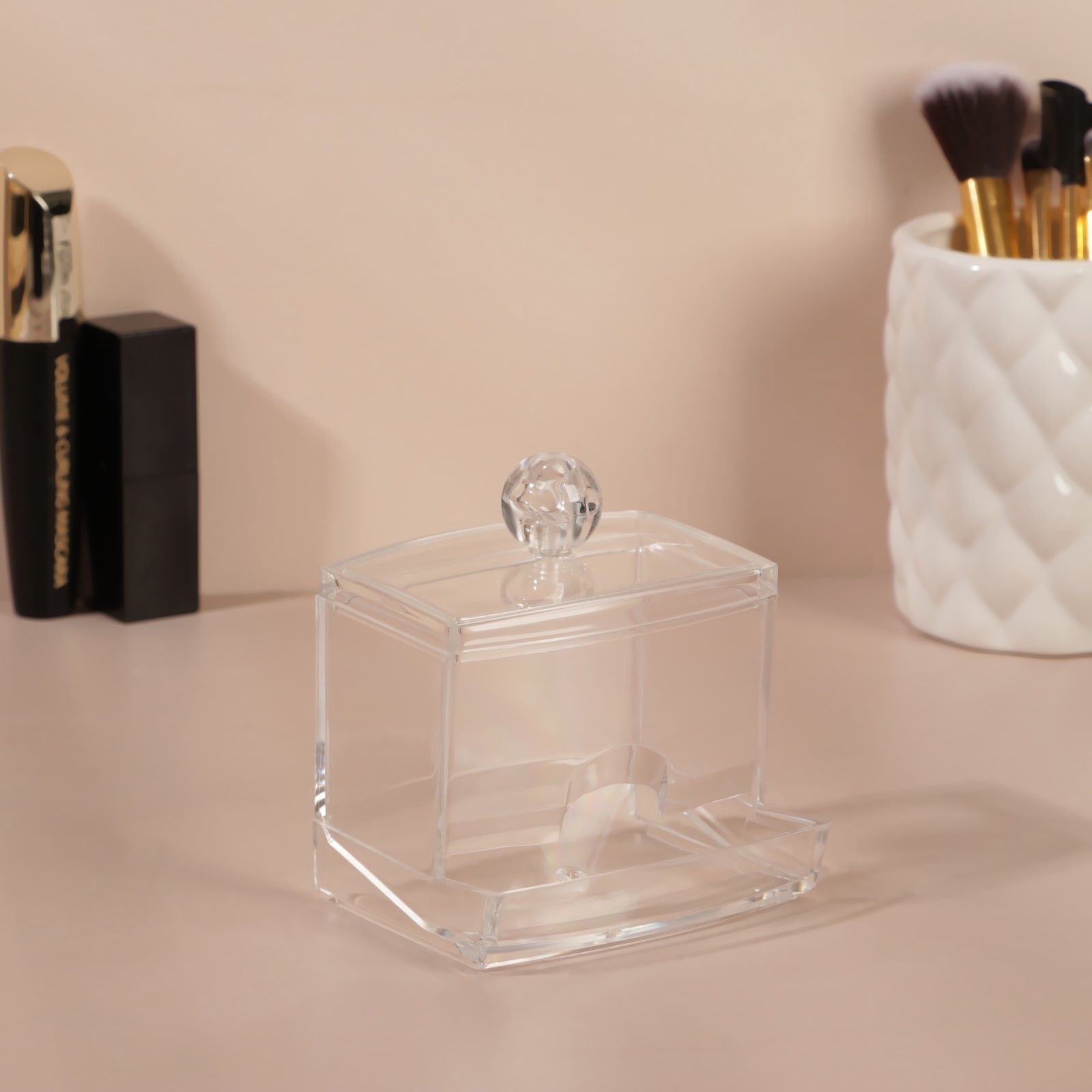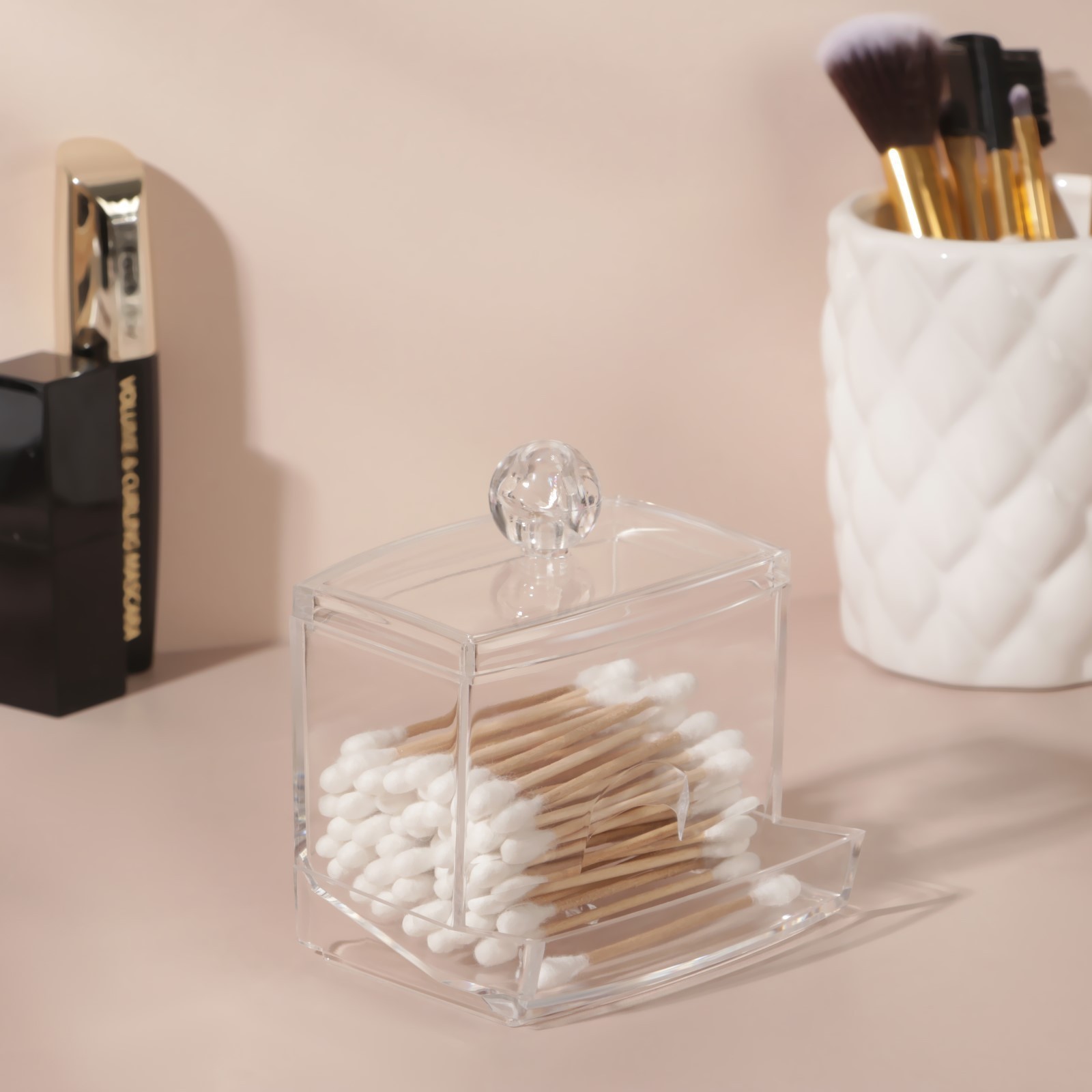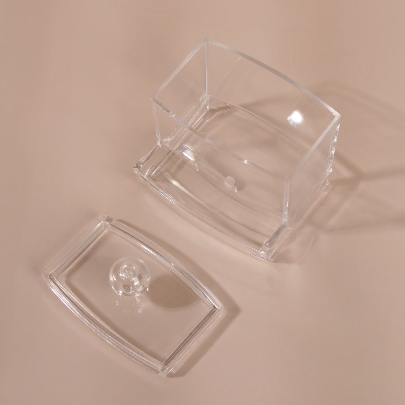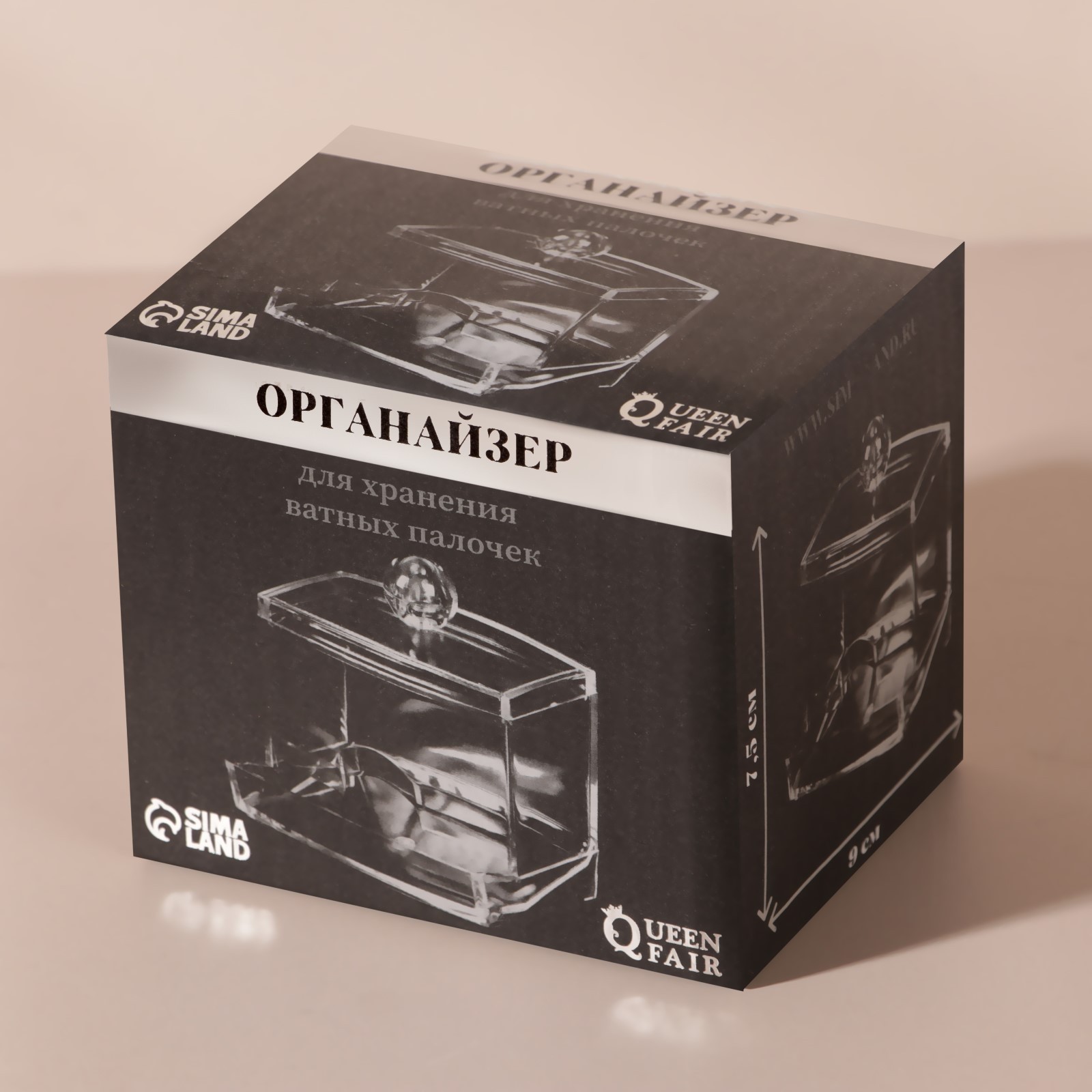 Органайзер для хранения ватных палочек, с крышкой, 9 X 7 X 10 см, в картонной коробке, цвет прозрачный