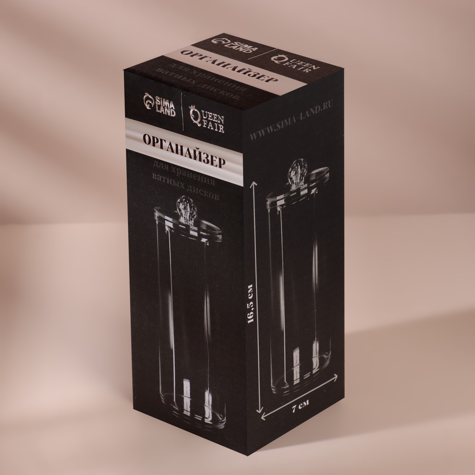 Органайзер для хранения ватных дисков, с крышкой, D = 7 X 20 см, в картонной коробке, цвет прозрачный