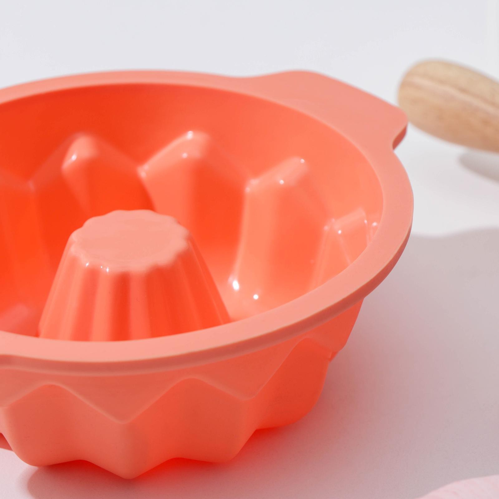 Форма силиконовая для выпечки доляна «немецкий кекс», 16x13,3 см, с ручками, цвет оранжевый. Цвет: Оранжевый Форма: Круглая Фасовка, шт.: 1 Количество ячеек: 1 Крышка: Нет Материал: Силикон Тип покрытия: Без покрытия Ячейки: Нет Наличие палочек для форм: Нет Тип формы: Для коржей Тип формы: Для пирогов Разъёмная форма: Нет Можно мыть в посудомоечной машине: Да  развернуть описание ▼