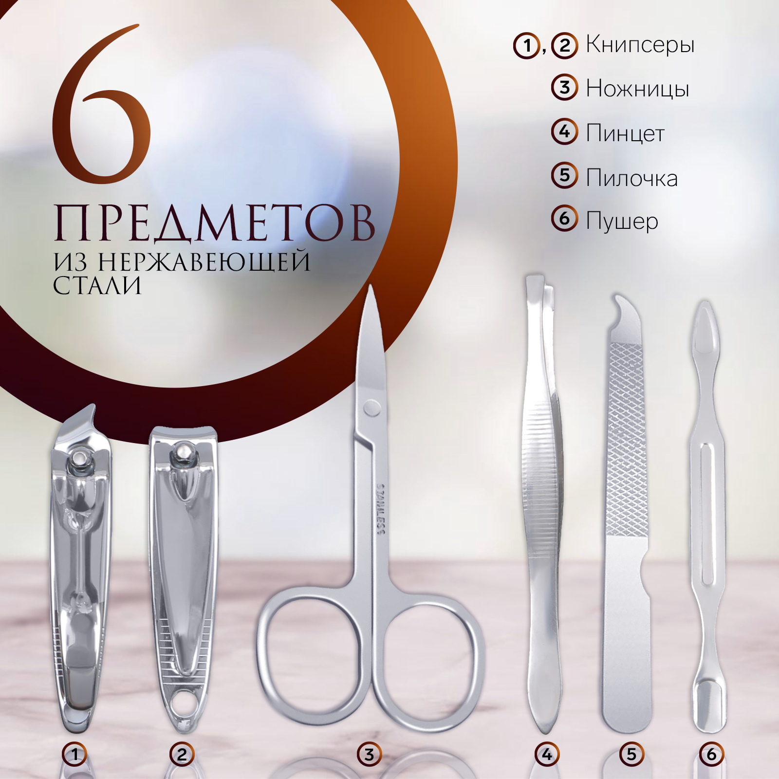Набор маникюрный «париж», 6 предметов, в футляре, рисунок микс