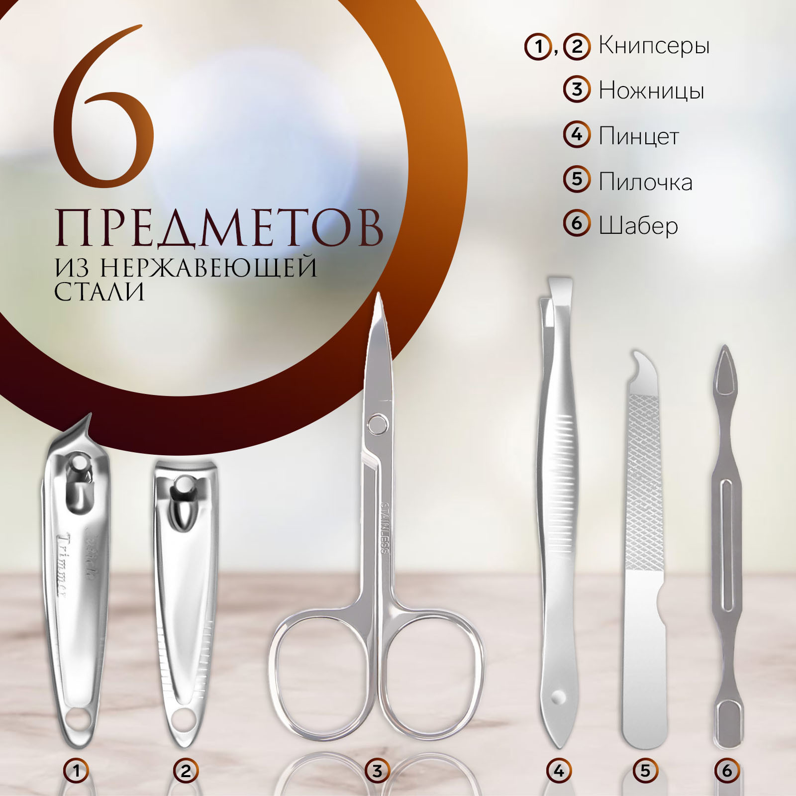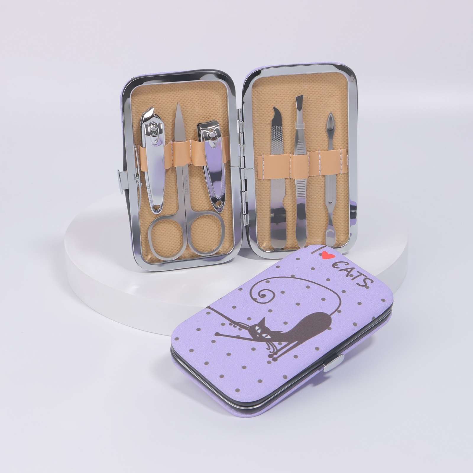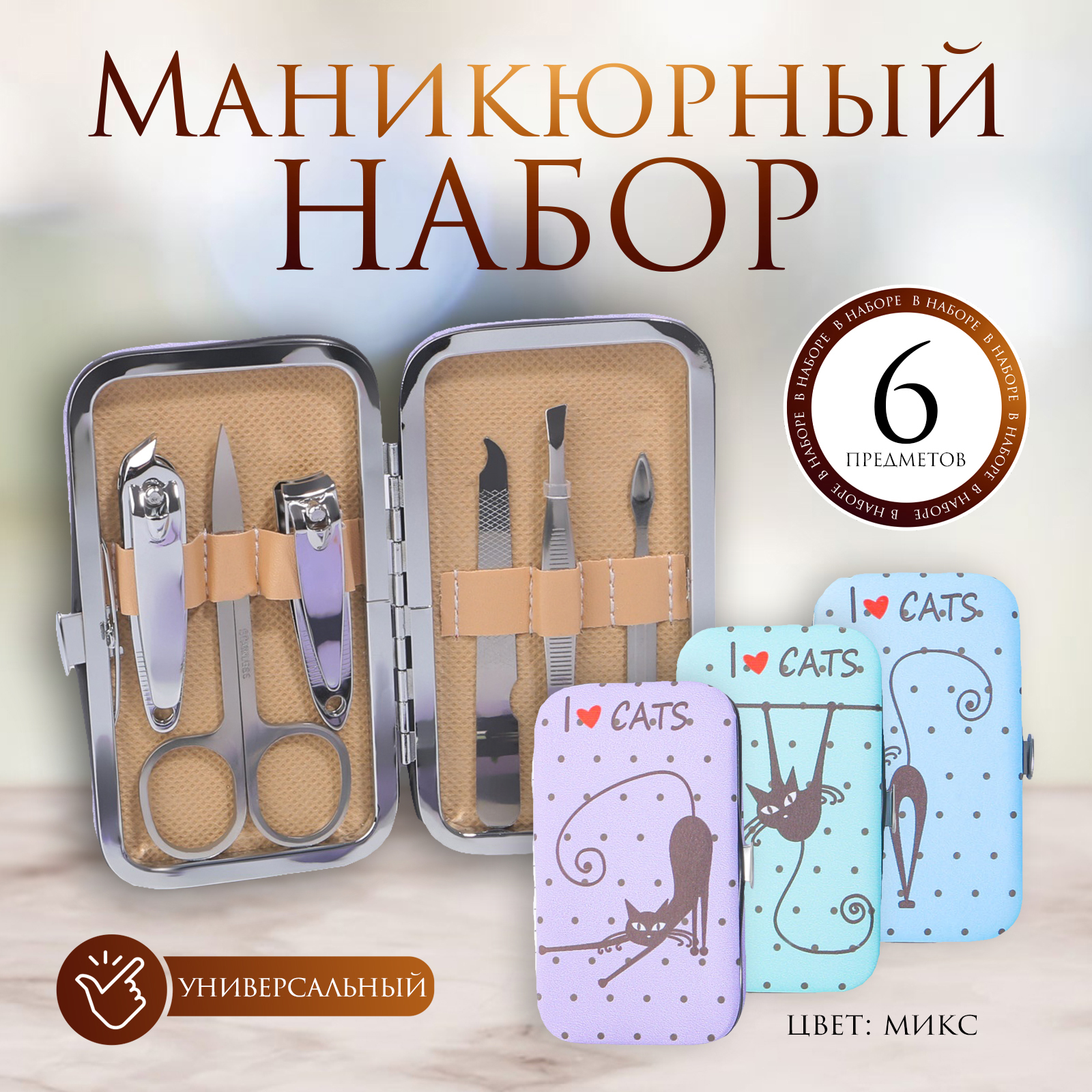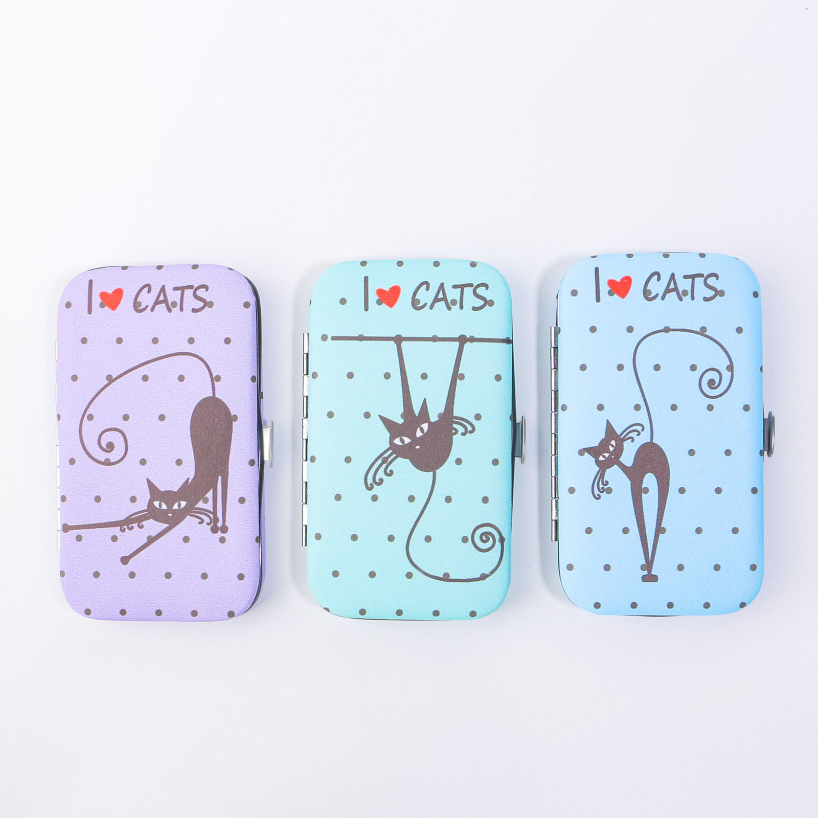 Набор маникюрный «кошечки», 6 предметов, в футляре, рисунок и цвет микс