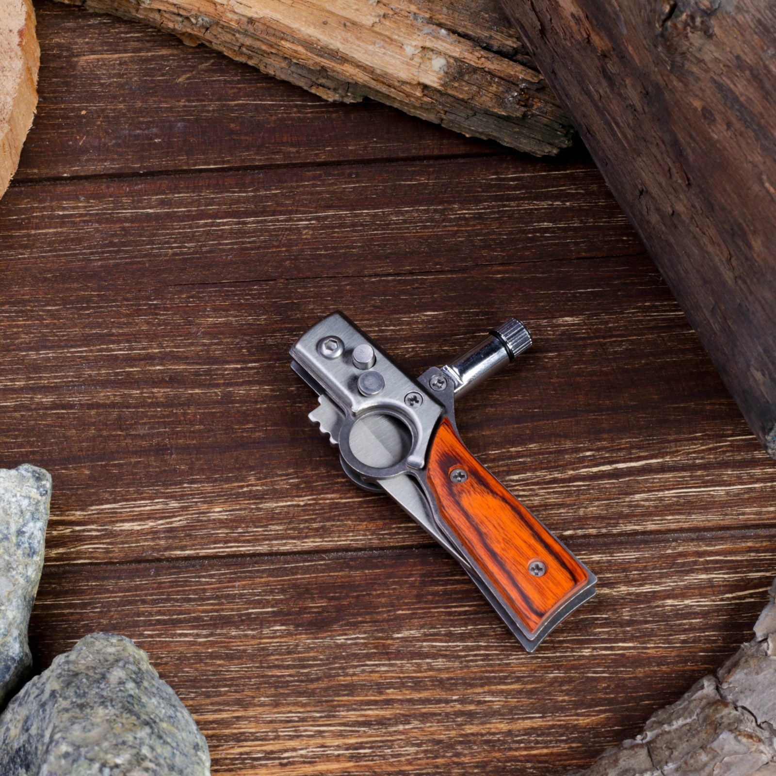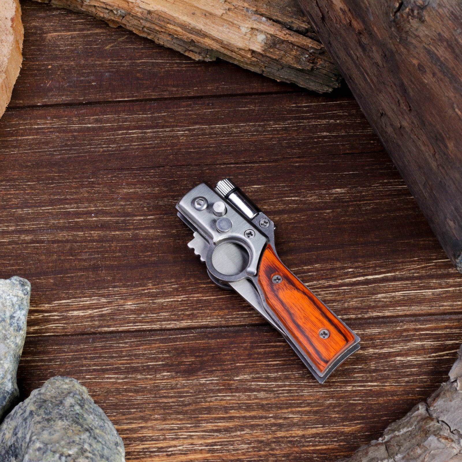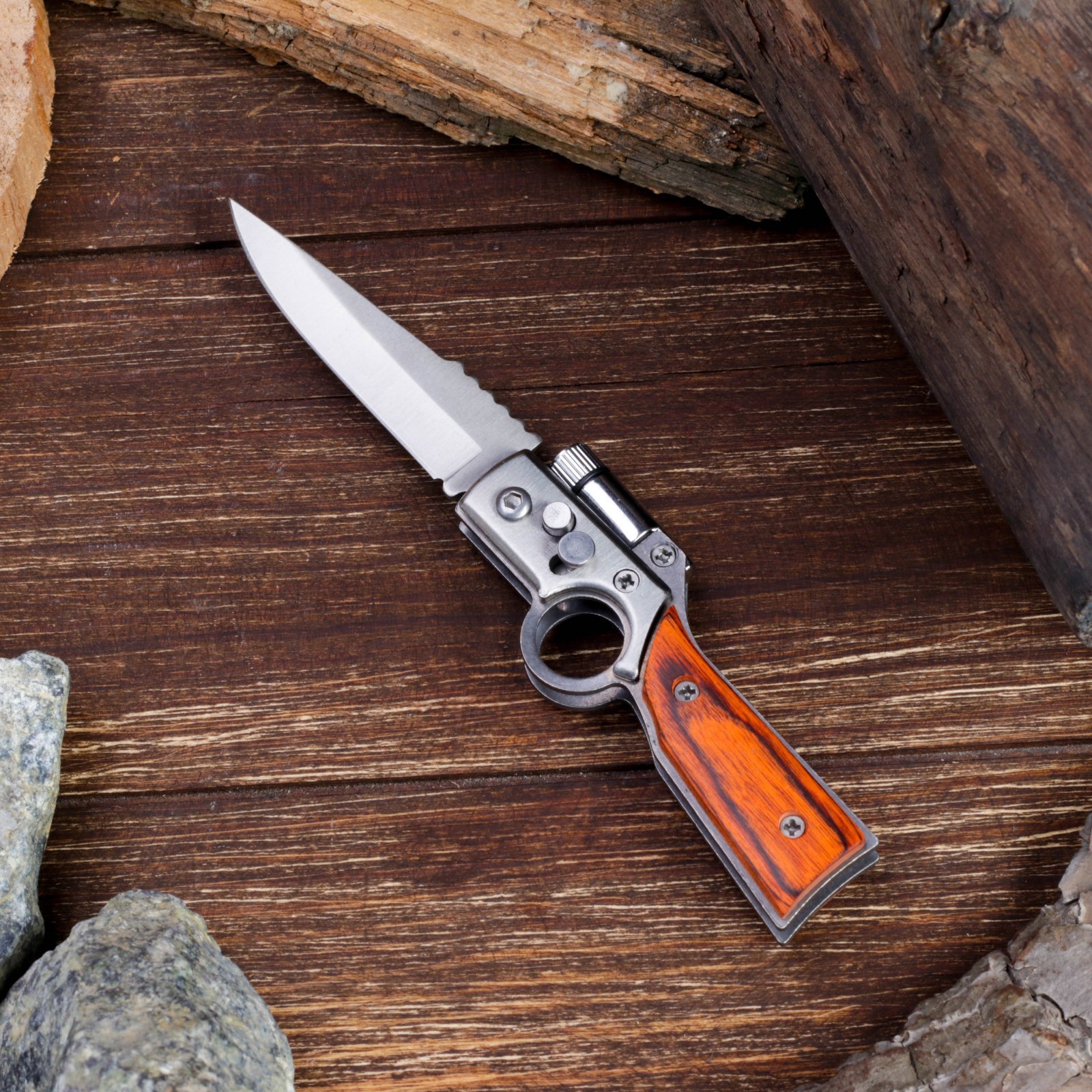 Нож складной полуавтоматический "ружье", клинок 7 см, с фонариком. Поклонники активного отдыха на свежем воздухе не понаслышке знают, что надежный клинок - это один из главных походных атрибутов. Поэтому, нож складной полуавтоматический "Ружье", клинок 7 см, с фонариком пользуется популярностью у наших клиентов. Нож оснащен кнопкой-фиксатором, которая позволит плотно зафиксировать инструмент в открытом и закрытом состоянии в единственном положении. Удобная рукоять не позволит выскользнуть ножу из рук в самый неподходящий момент при работе. А ещё нож складной полуавтоматический "Ружье", клинок 7 см, с фонариком оснащен удобным фонариком, который выручит вас в любой ситуации. В интернет-магазине Бельведор представлено большое разнообразие оригинальных сувенирных складных автоматических ножей. Вы можете выбрать идеальный клинок по своему вкусу для себя или в подарок! Длина лезвия, см: 7 Твёрдость лезвия, HRC: 48 Материал ручки: Дерево Фиксатор: Да Тип ножа: Складной автоматический  развернуть описание ▼