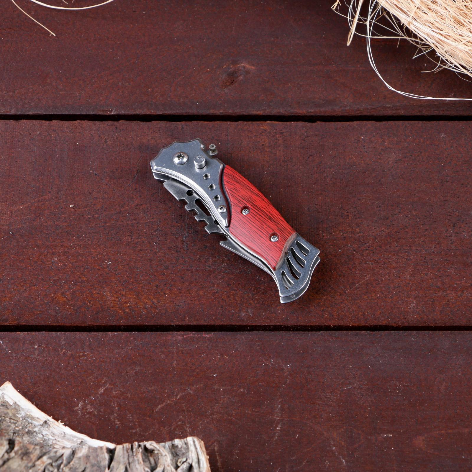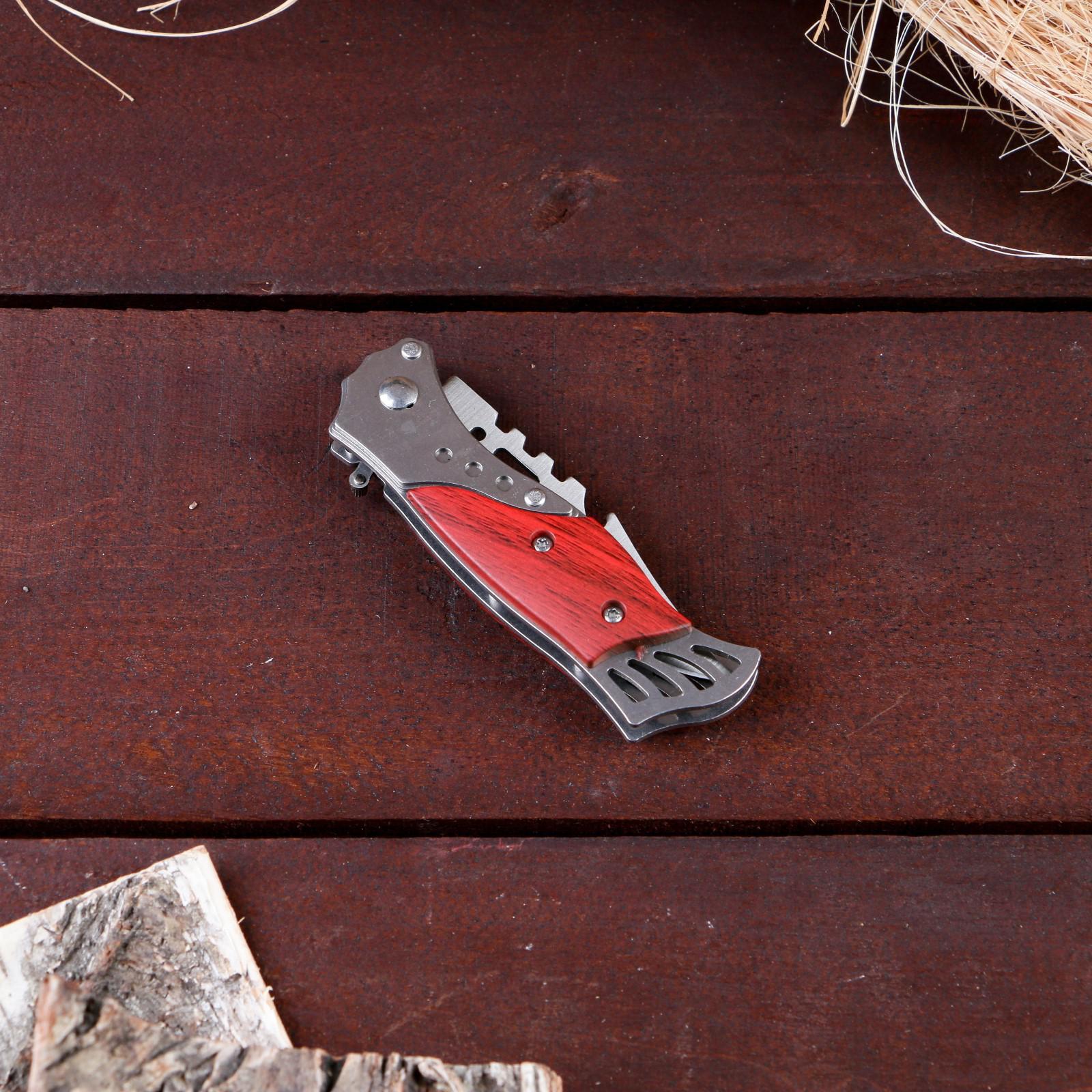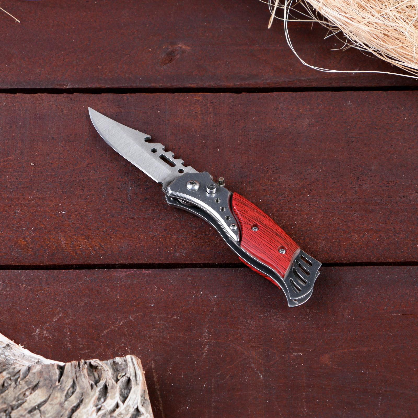 Нож складной "пескарь" 16,3см, клинок 70мм/1мм. Поклонники активного отдыха на свежем воздухе не понаслышке знают, что надежный клинок - это один из главных походных атрибутов. Поэтому, нож складной "Пескарь" 16, 3см, клинок 70мм/1мм пользуется популярностью у наших клиентов. Нож оснащен кнопкой-фиксатором, которая позволит плотно зафиксировать инструмент в открытом и закрытом состоянии в единственном положении. Удобная рукоять не позволит выскользнуть ножу из рук в самый неподходящий момент при работе. В интернет-магазине Бельведор представлено большое разнообразие оригинальных сувенирных складных автоматических ножей. Вы можете выбрать идеальный клинок по своему вкусу для себя или в подарок! Длина лезвия, см: 7 Материал ручки: Дерево Фиксатор: Да Тип ножа: Складной автоматический  развернуть описание ▼