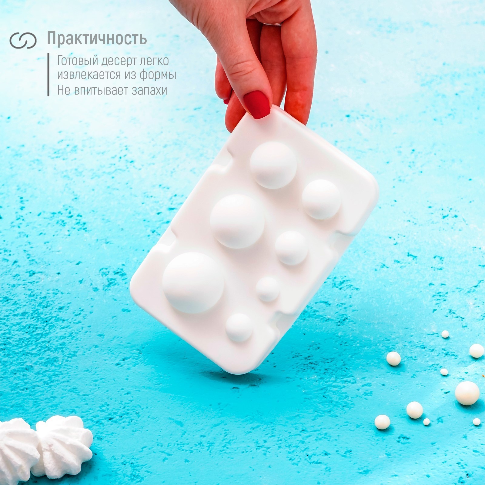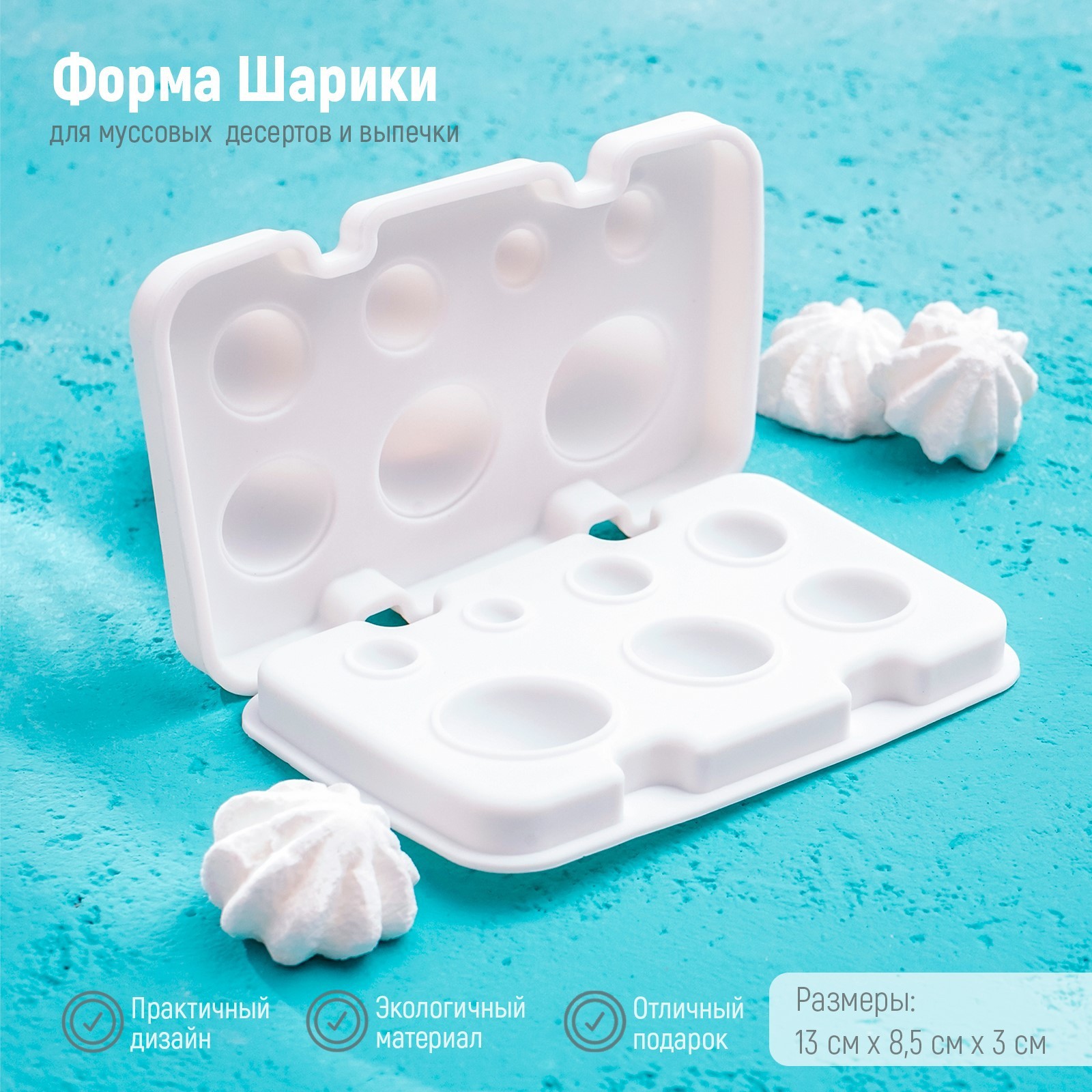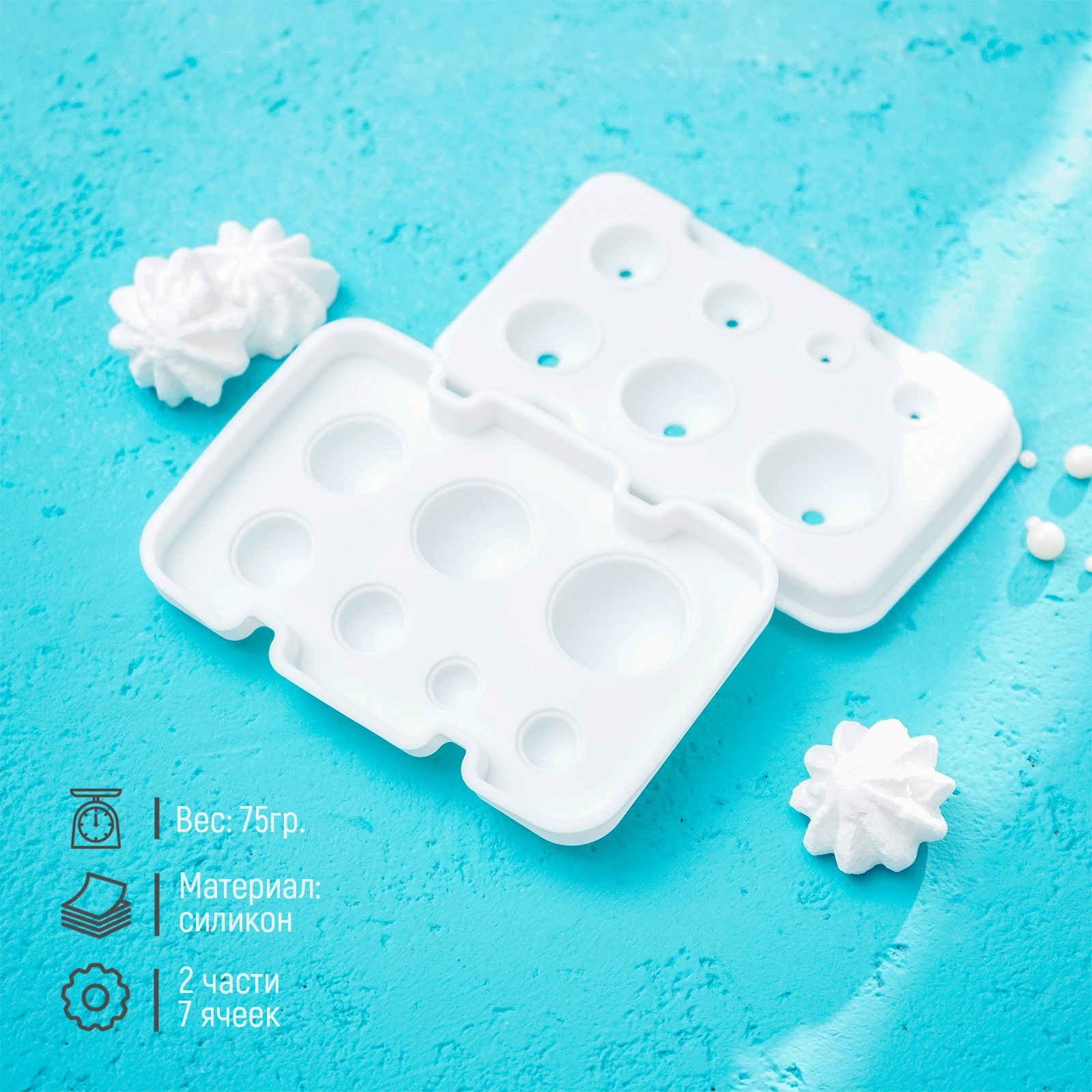 Форма для муссовых десертов и выпечки из 2 частей доляна «шарики», силикон, 13x8,5x3 см, 7 ячеек (d=1-3,5 см), цвет белый