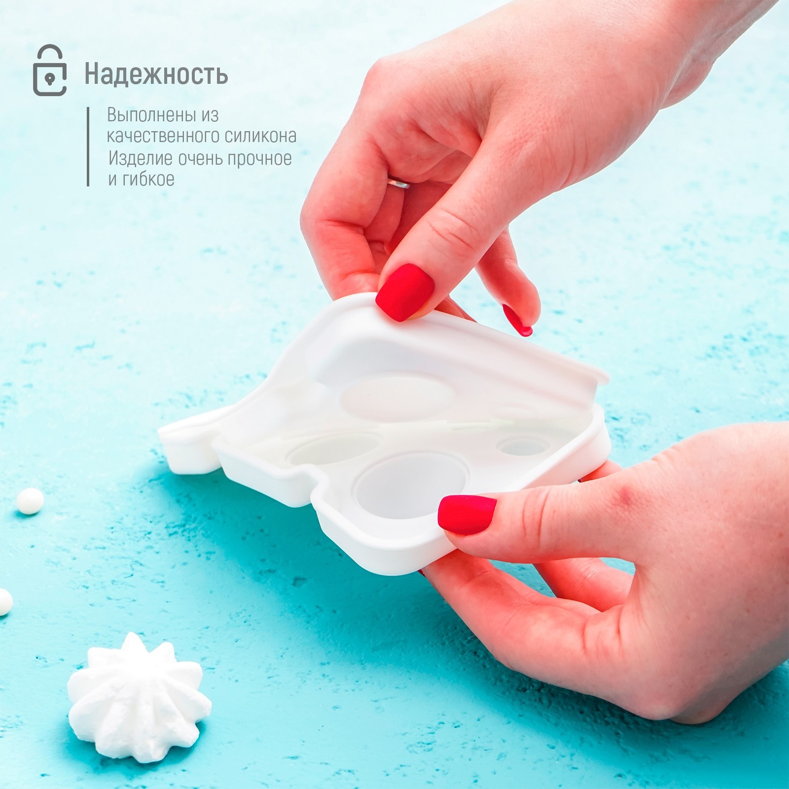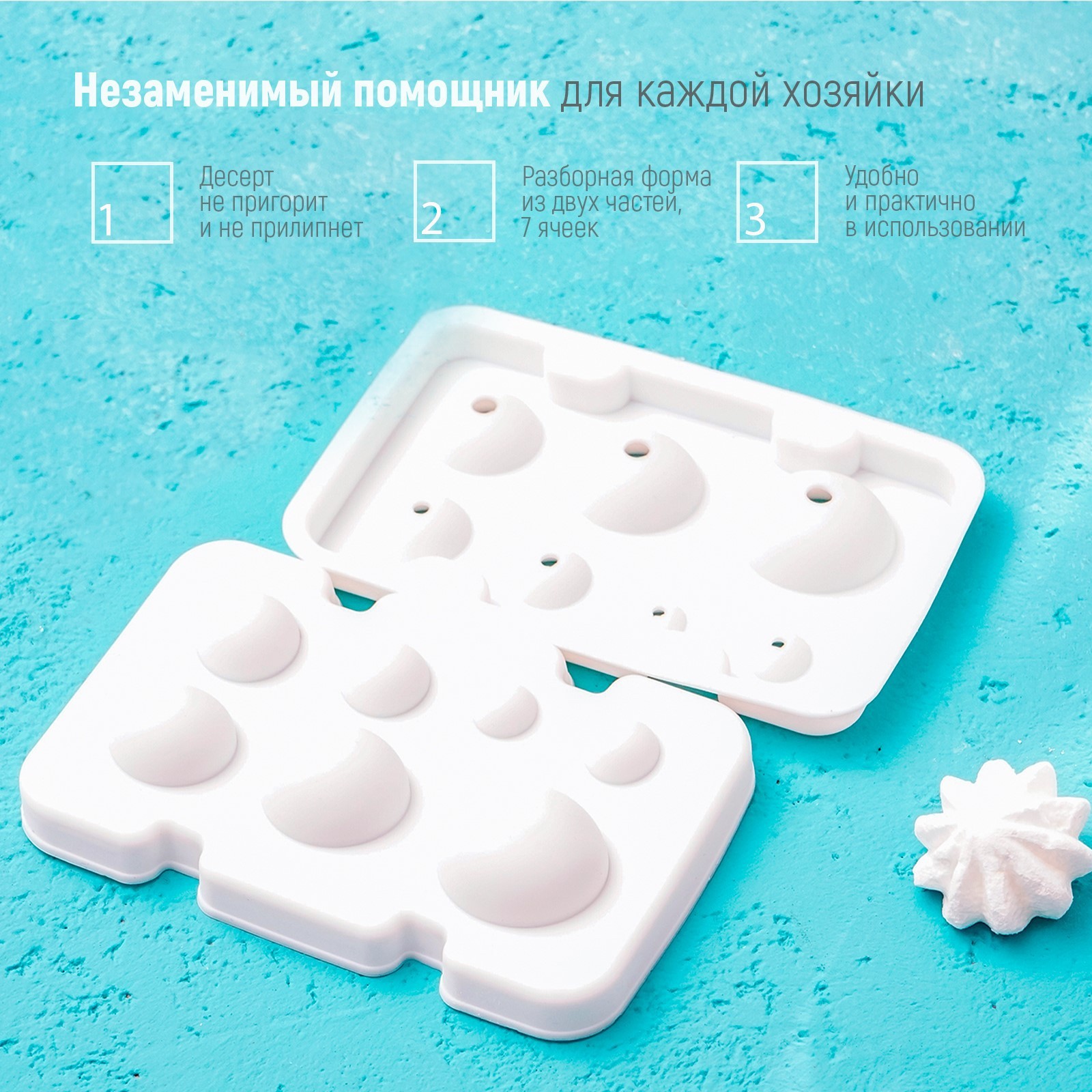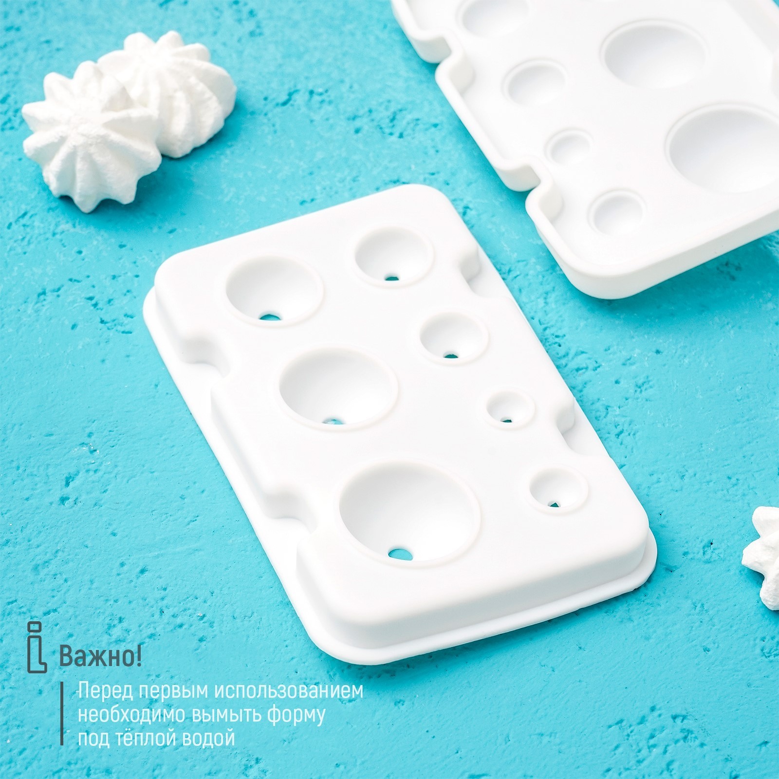 Форма для муссовых десертов и выпечки из 2 частей доляна «шарики», силикон, 13x8,5x3 см, 7 ячеек (d=1-3,5 см), цвет белый