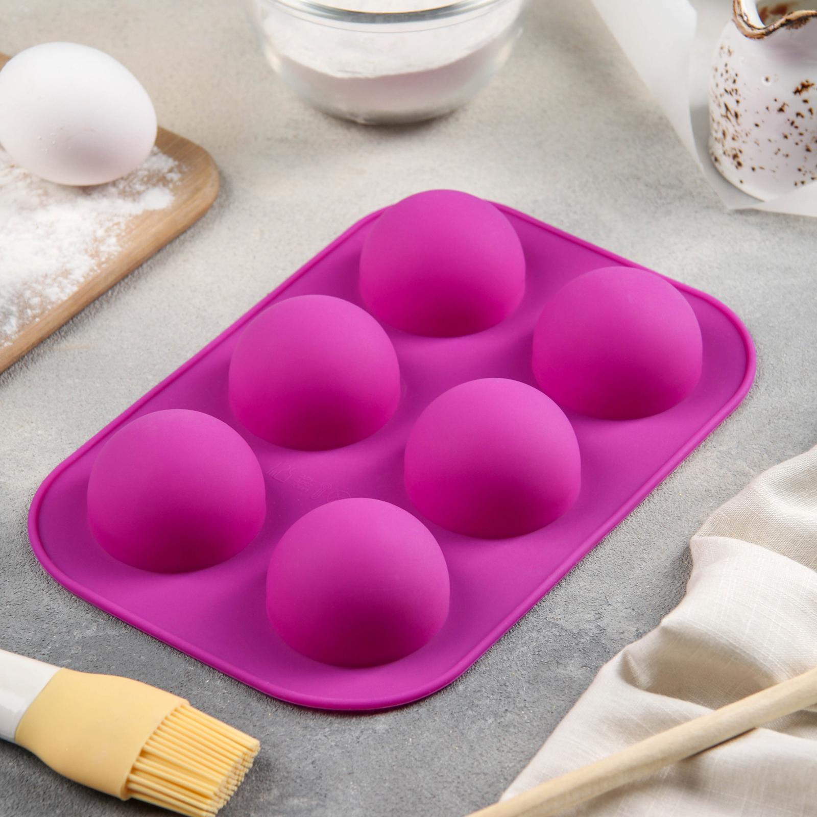 Форма силиконовая для выпечки доляна «шар», 24x16 см, 6 ячеек, D=5,5 см, цвет микс