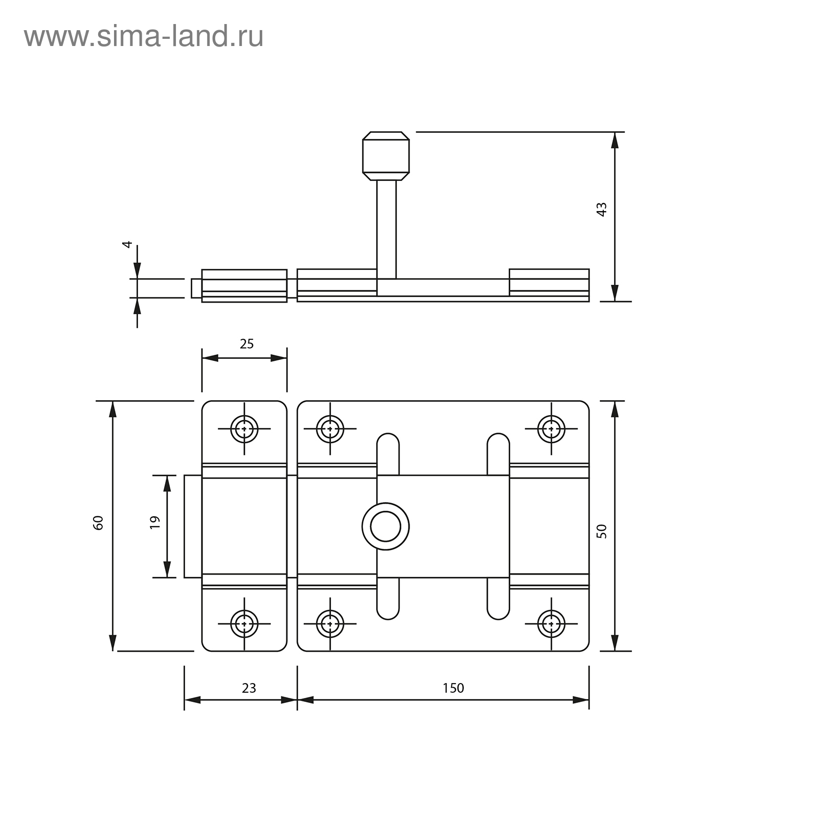 Задвижка дверная зд 002, 150 мм, под навесной замок, оцинкованная
