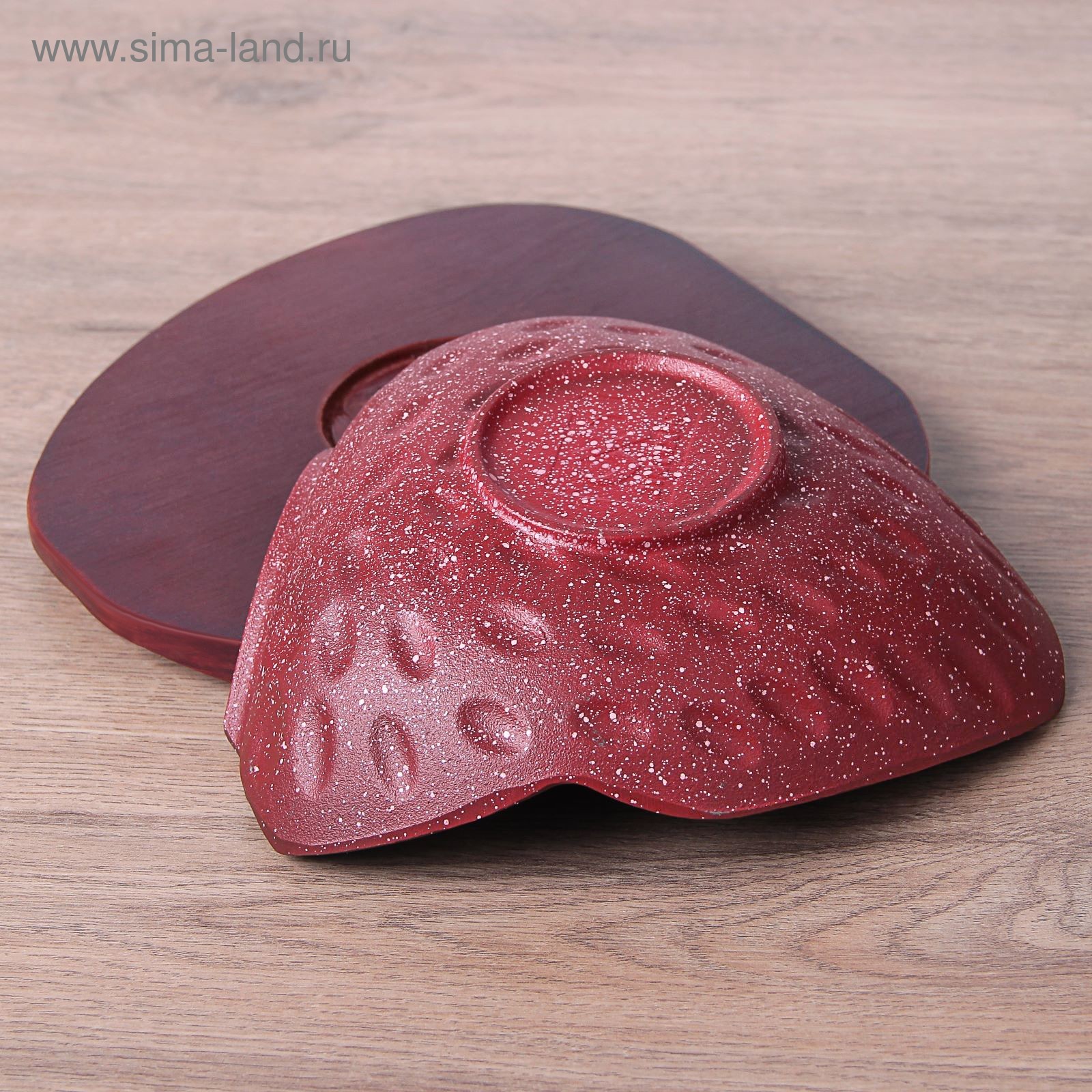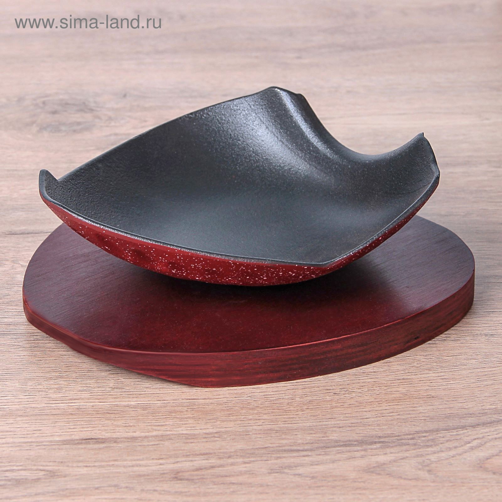 Блюдо для подачи чугунное «антиквариат», D=20 см, на деревянной подставке