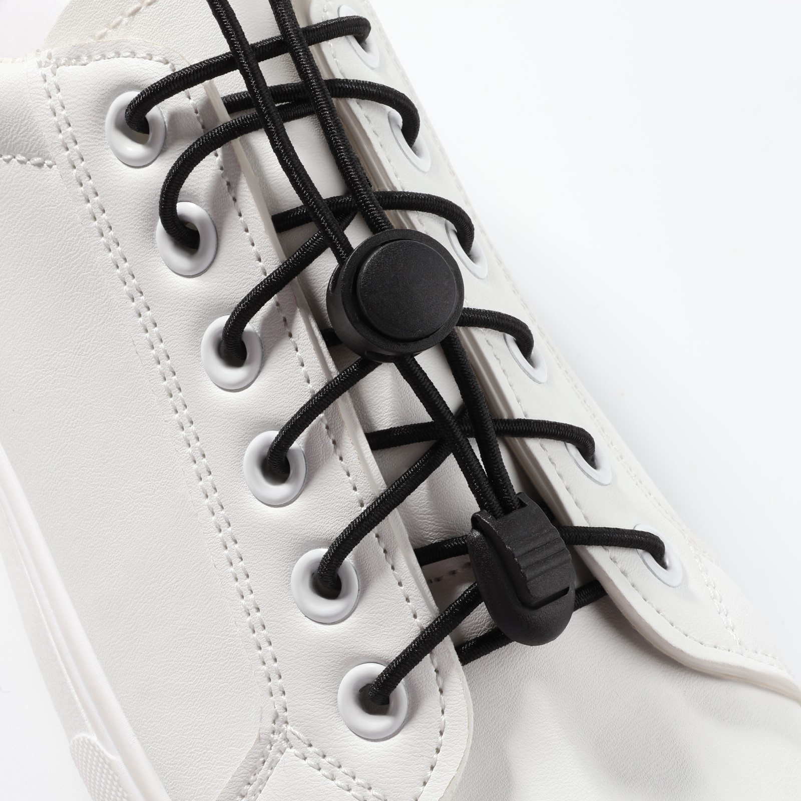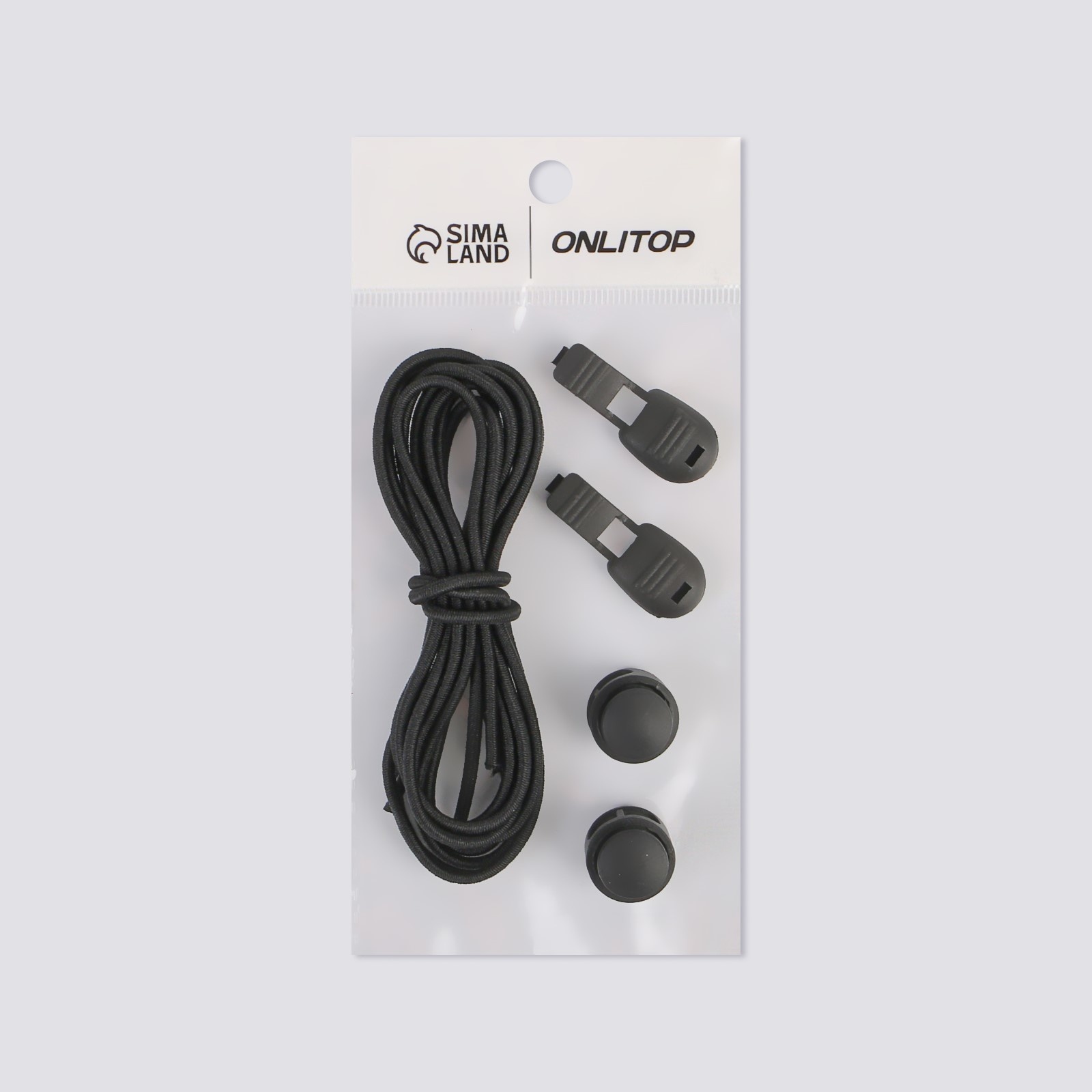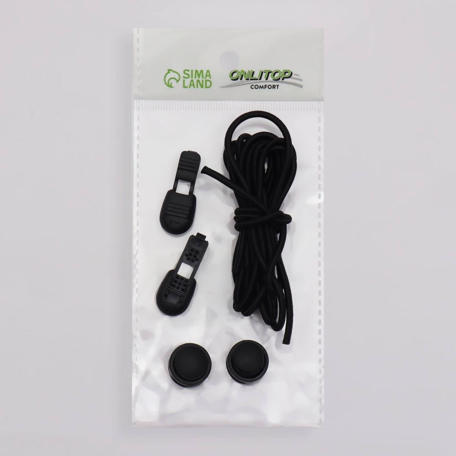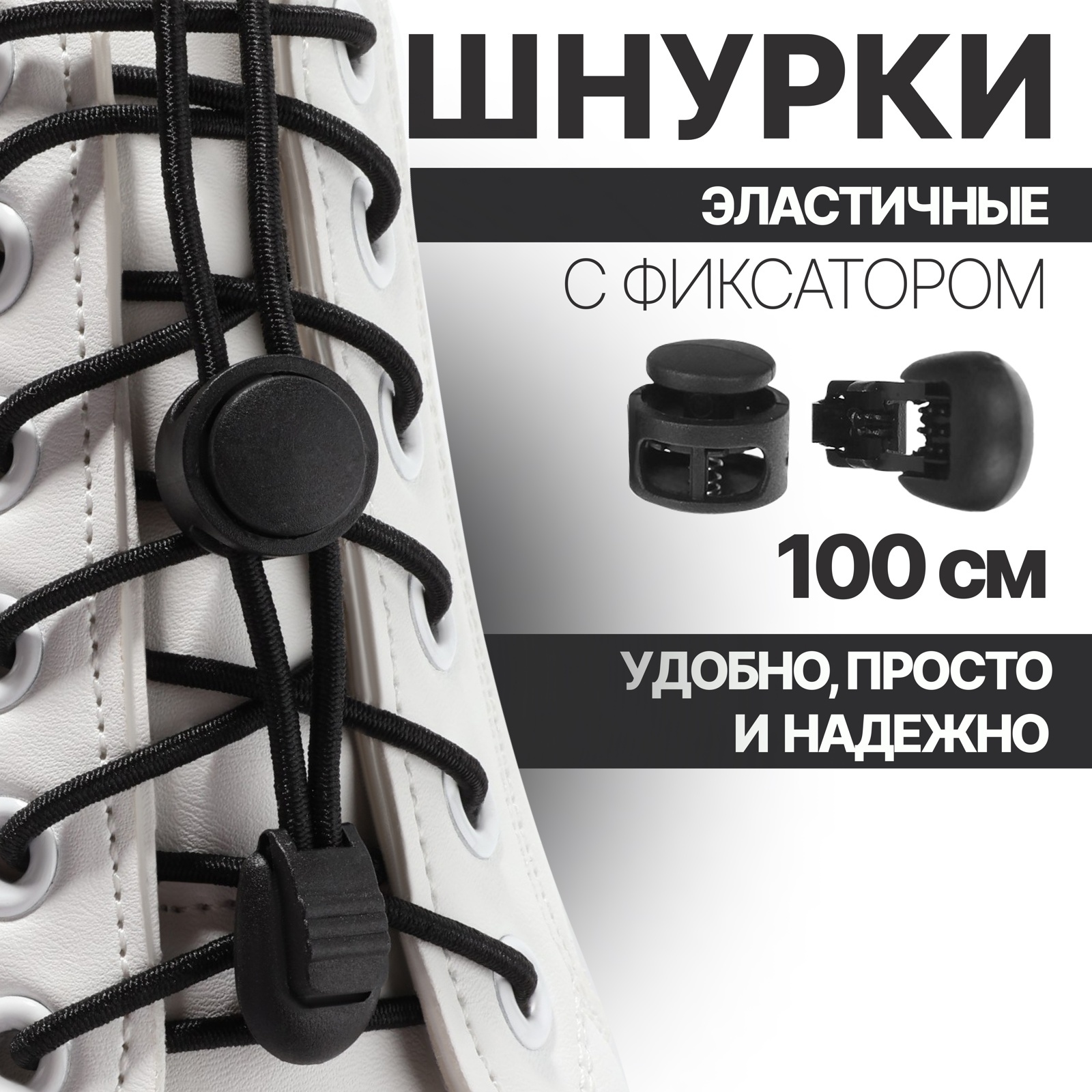 Шнурки для обуви, пара, круглые, с фиксатором, эластичные, D = 3 мм, 100 см, цвет чёрный