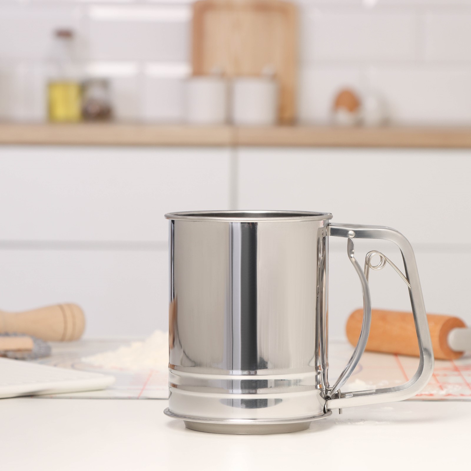Просеиватель для муки доляна, 2 уровня. Цвет: Хромированный Диаметр, см: 10 Материал ручки: Нержавеющая сталь Материал: Нержавеющая сталь  развернуть описание ▼