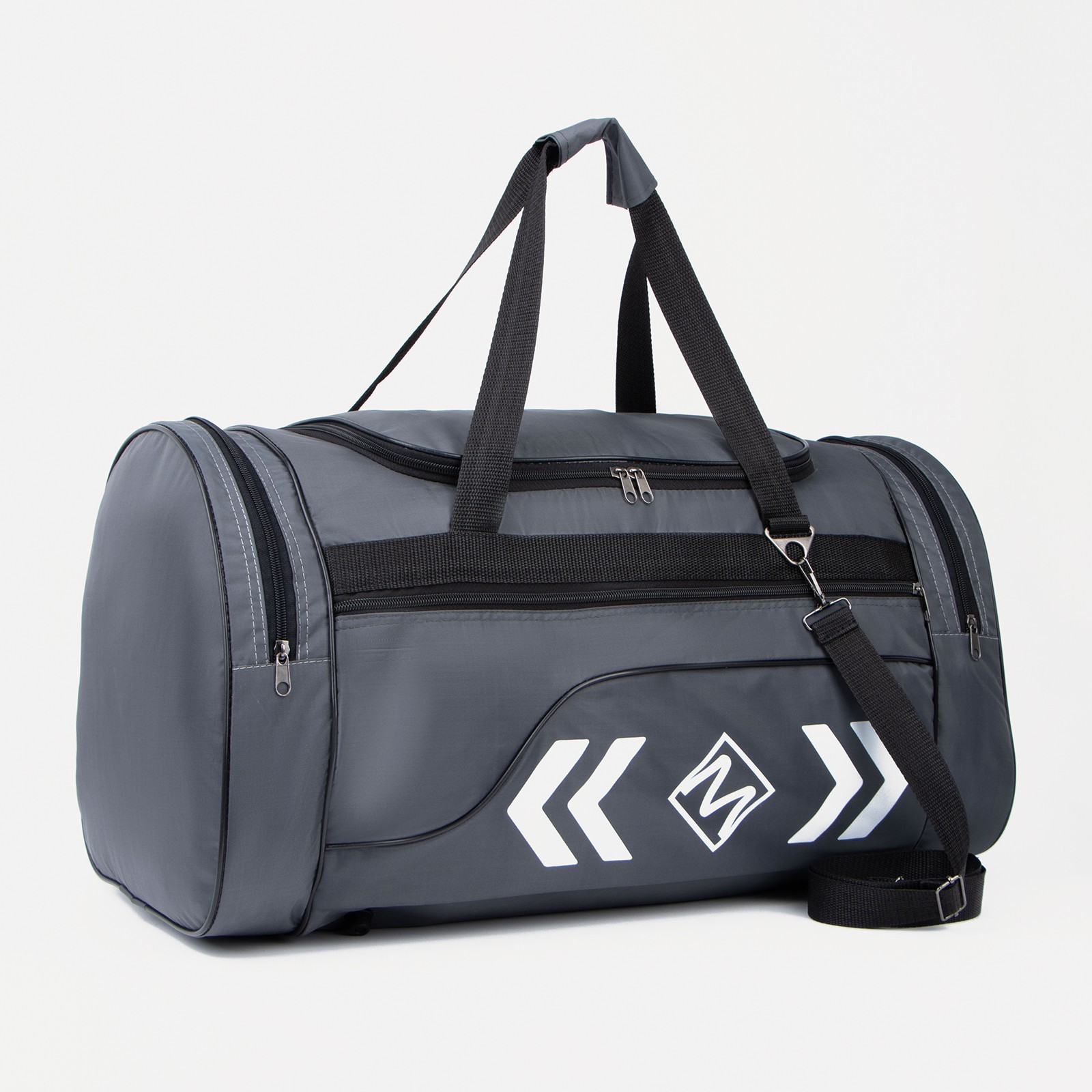 Сумка спортивная на молнии, 3 наружных кармана, длинный ремень, большой размер, цвет серый