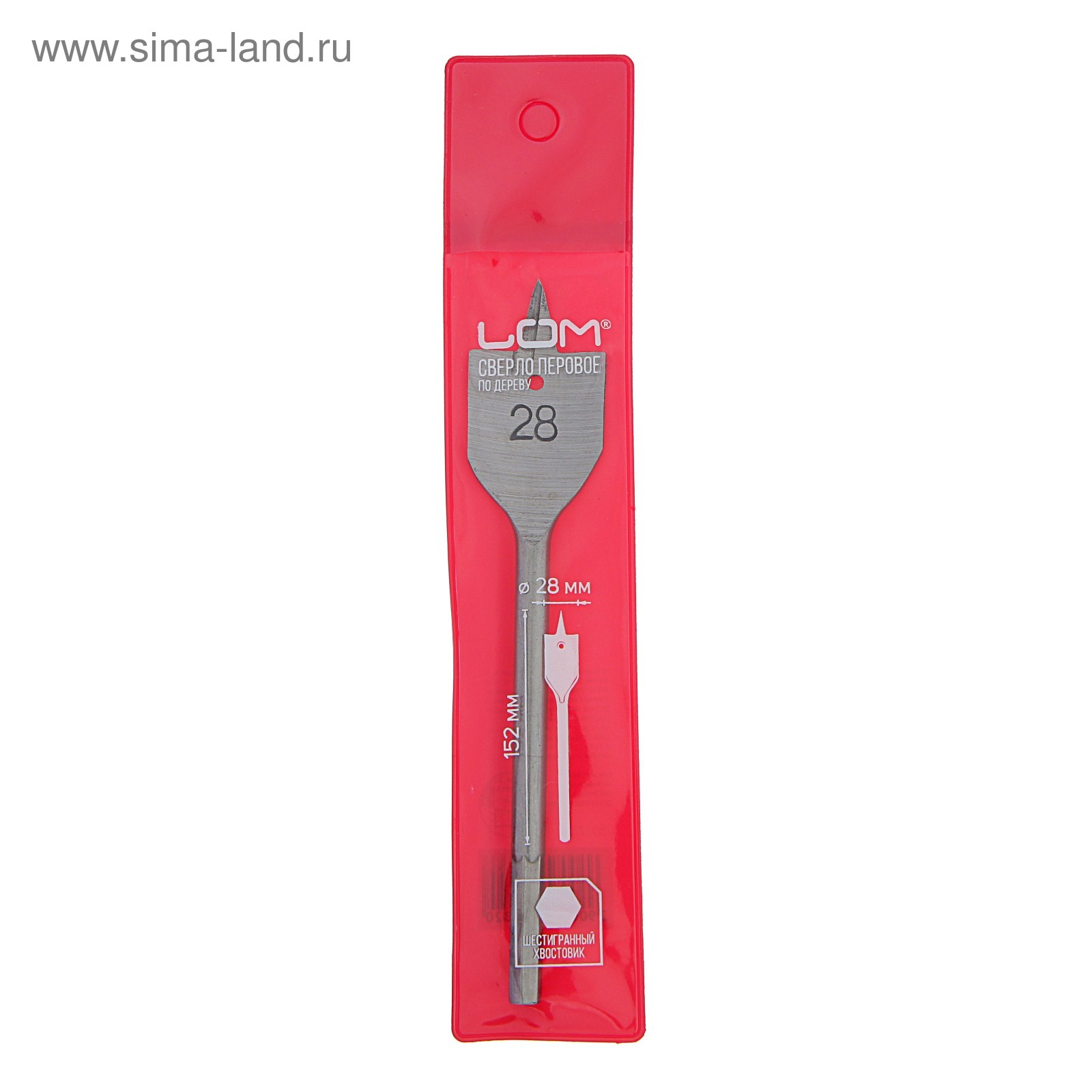 Сверло по дереву перовое лом, шестигранный хвостовик, 28 152 мм