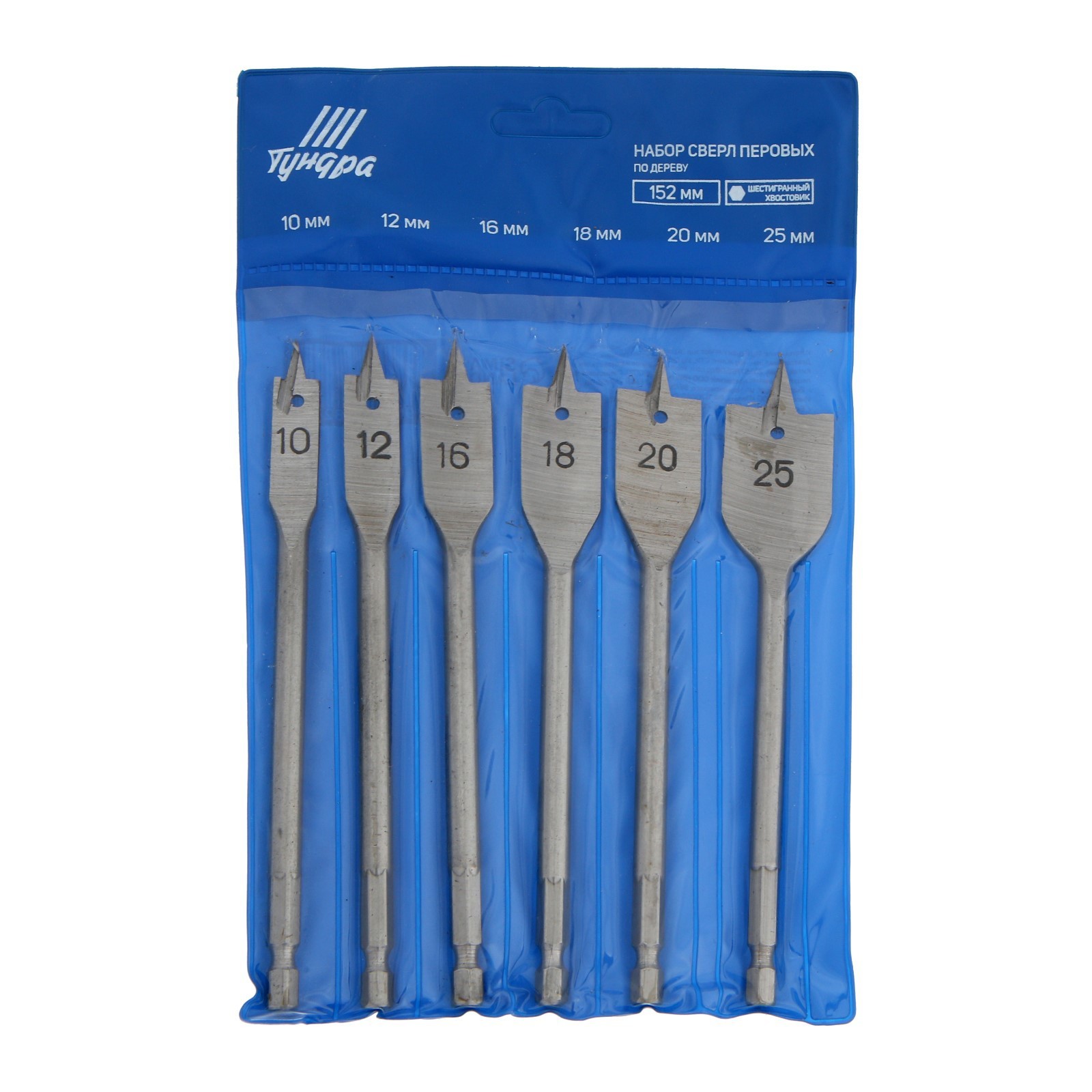 Набор сверл перовых тундра, шестигранный хвостовик, 10-12-16-18-20-25 мм, 6 шт.