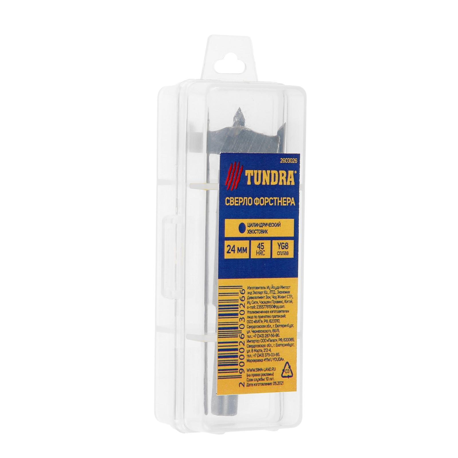 Сверло форстнера тундра, твердосплавные пластины, цилиндрический хвостовик, 24 мм