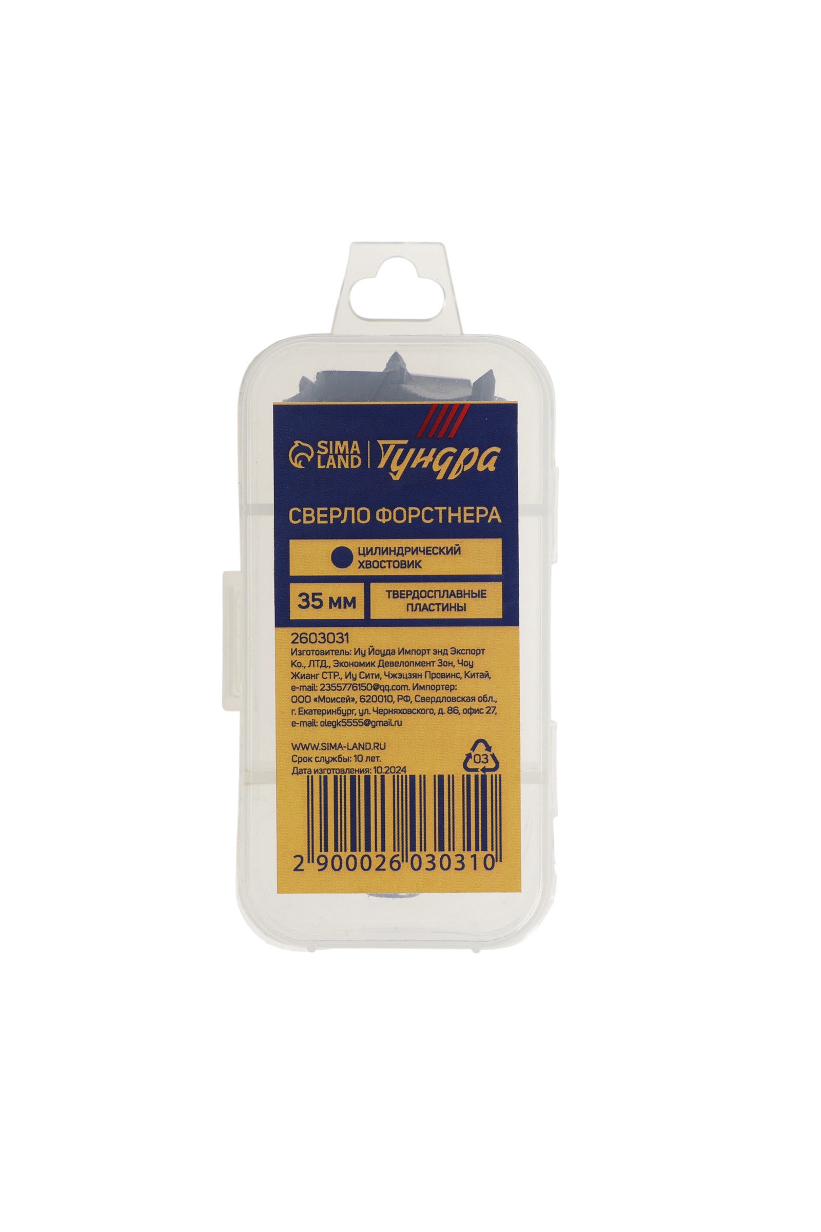 Сверло форстнера тундра, твердосплавные пластины, цилиндрический хвостовик, 35 мм