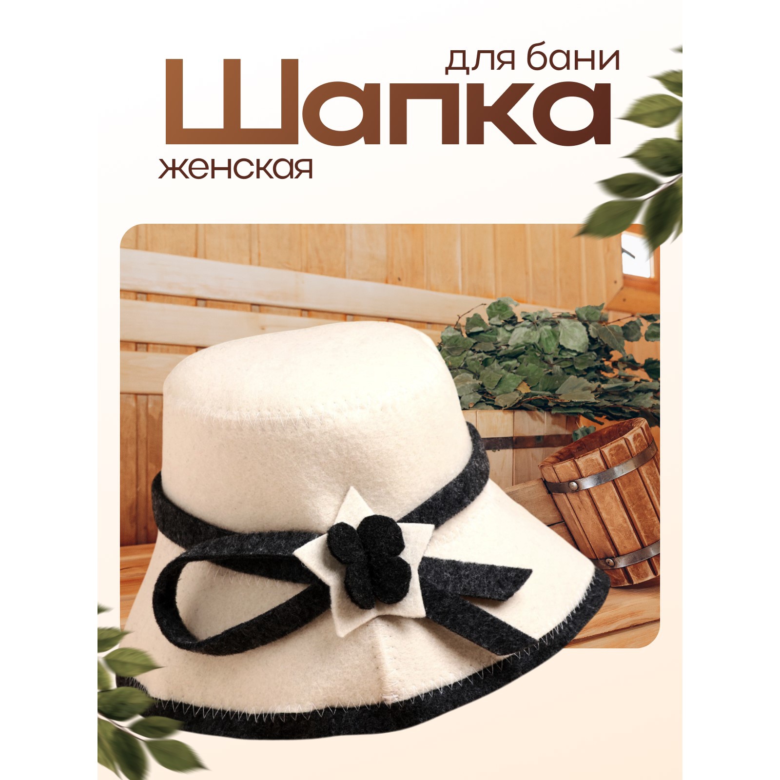 Шапка для бани и сауны женская, с аппликацией, полиэфир 70%, шерсть 30%, «добропаровъ»