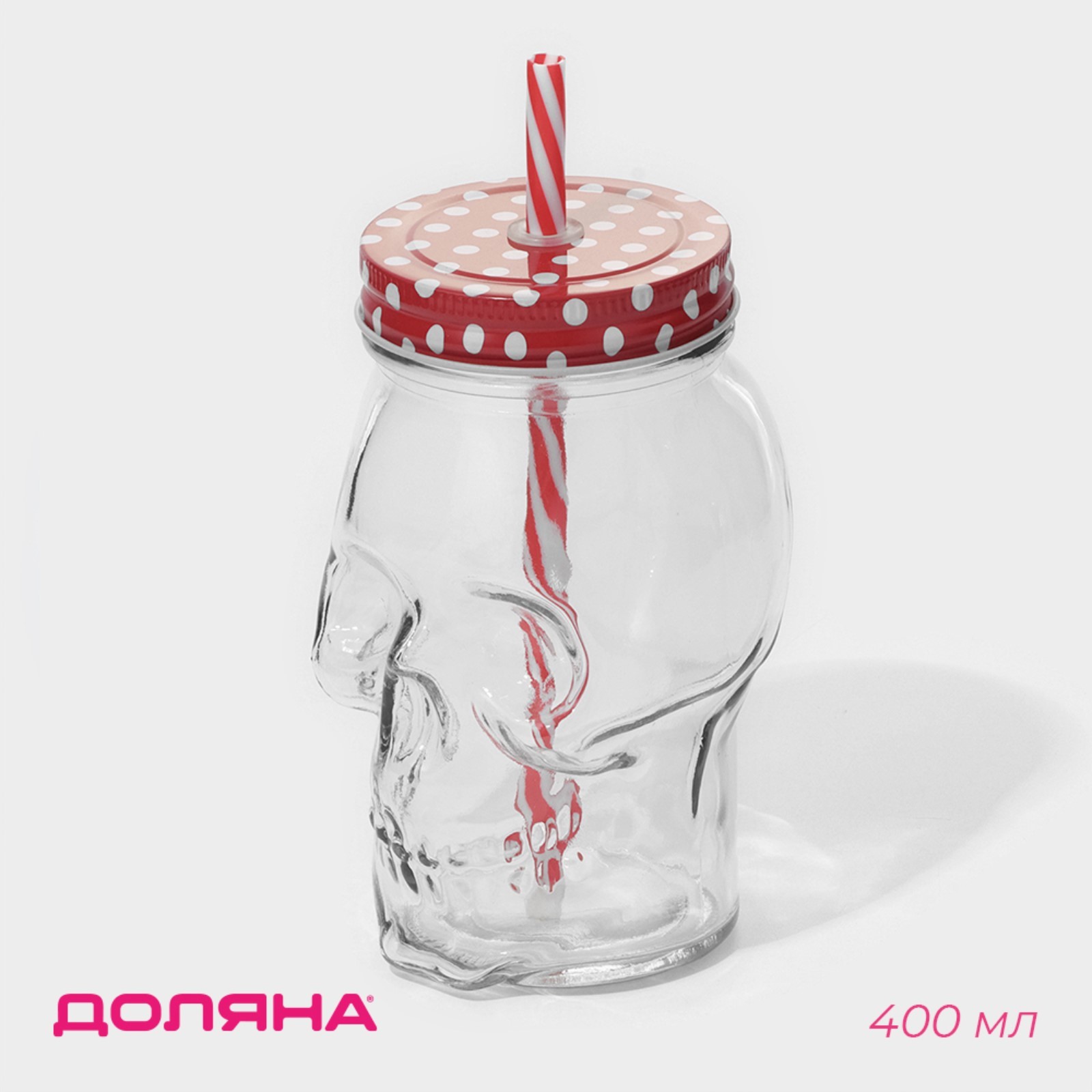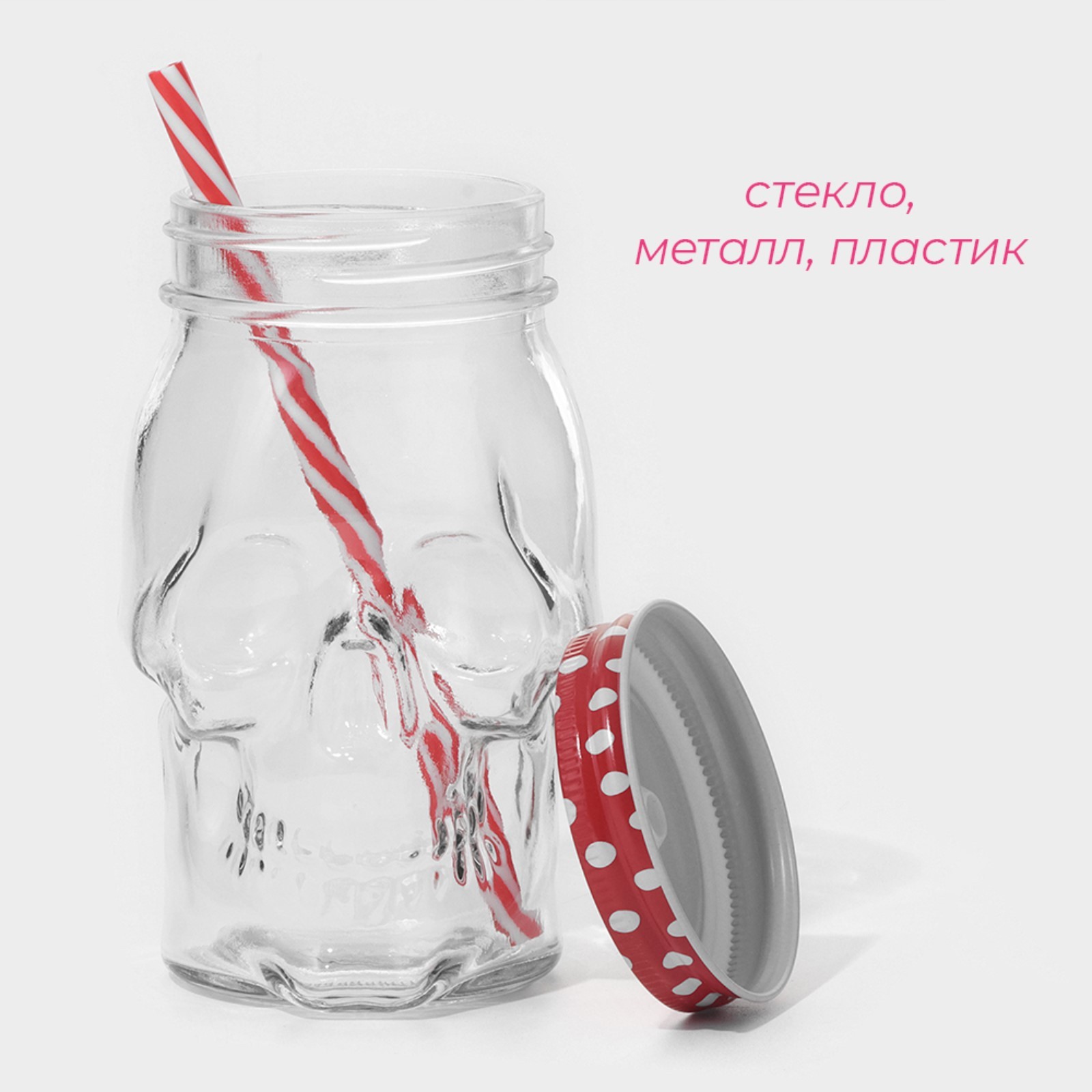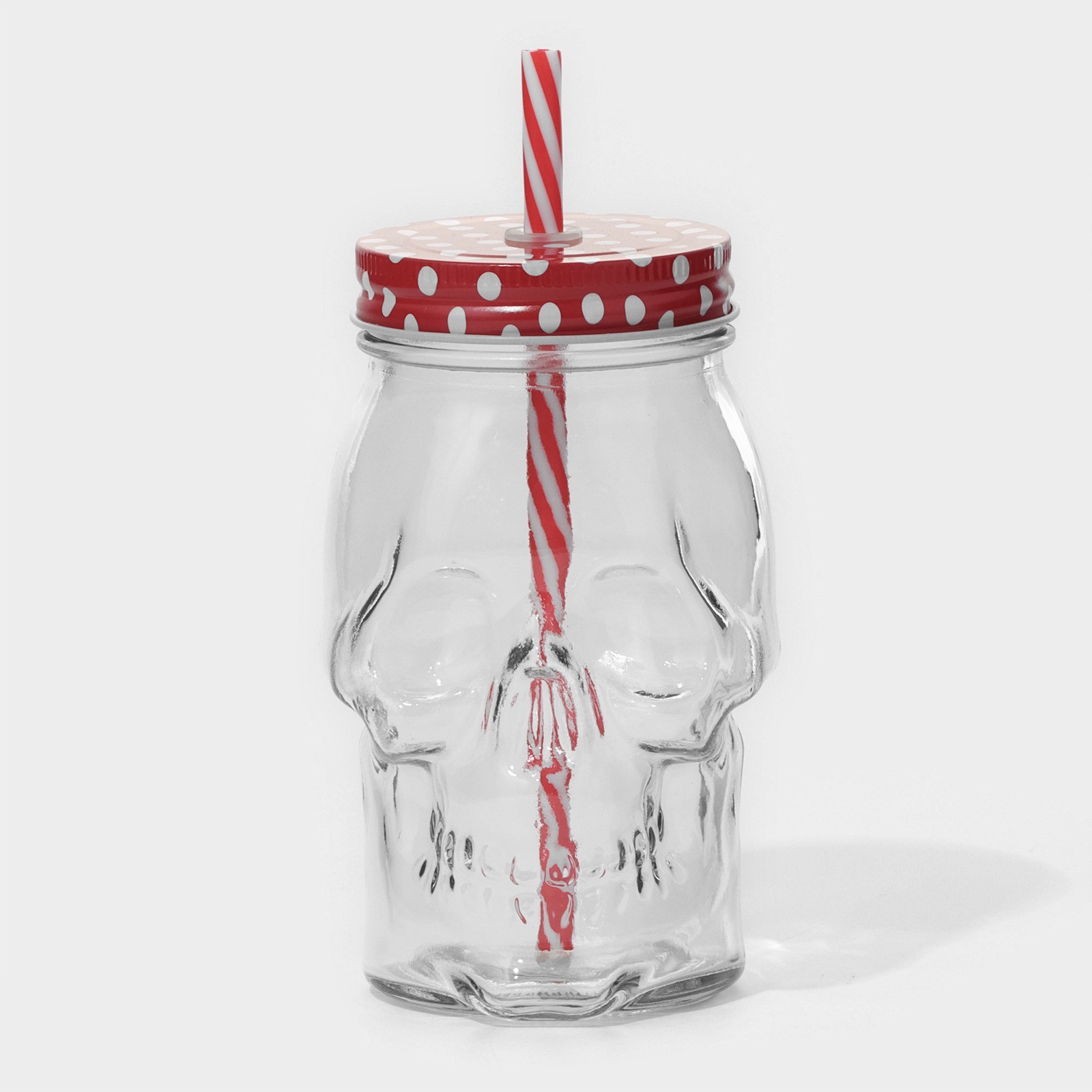 Банка стеклянная с крышкой и трубочкой доляна «череп. хэллоуин», 400 мл, 9x14,5 см, цвет микс