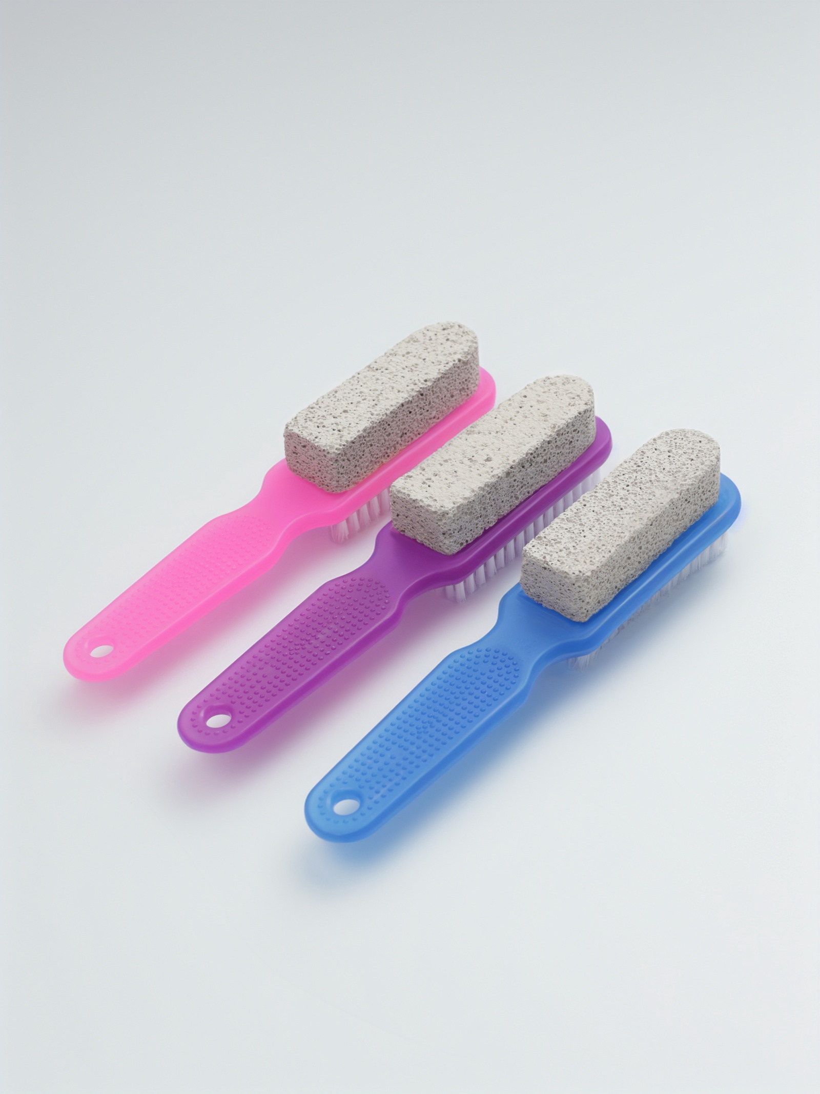 Пемза для педикюра, с щёткой, двусторонняя, 15.5 см, микс