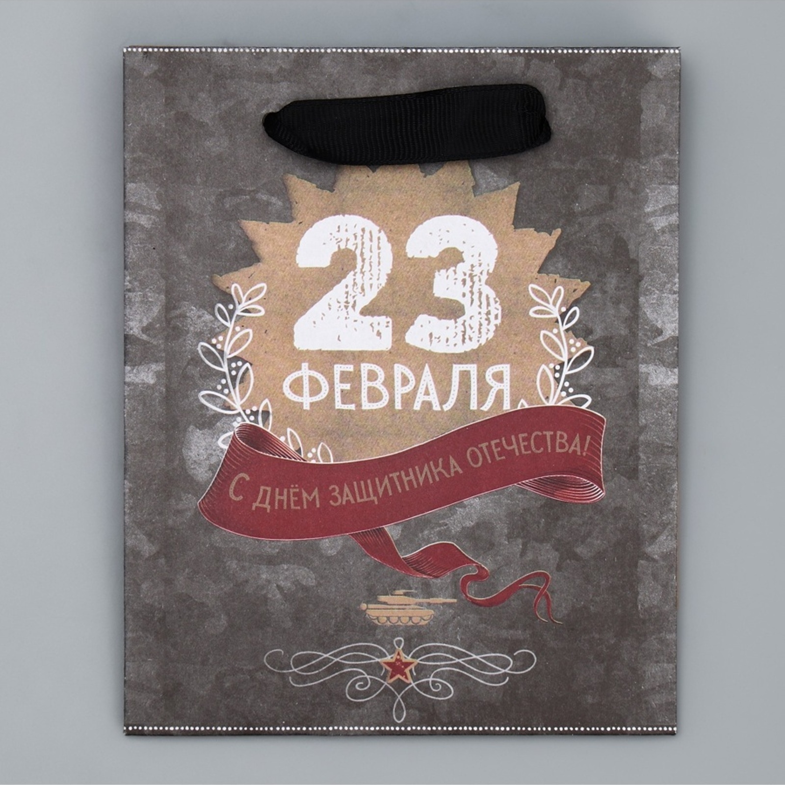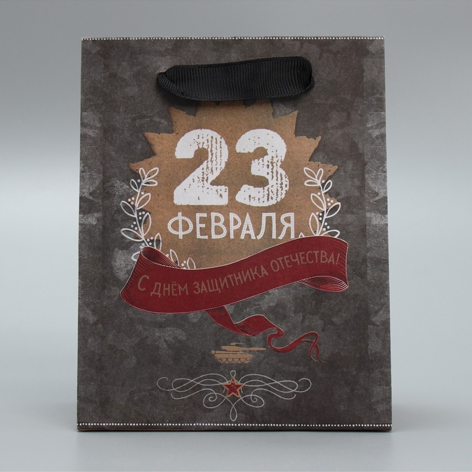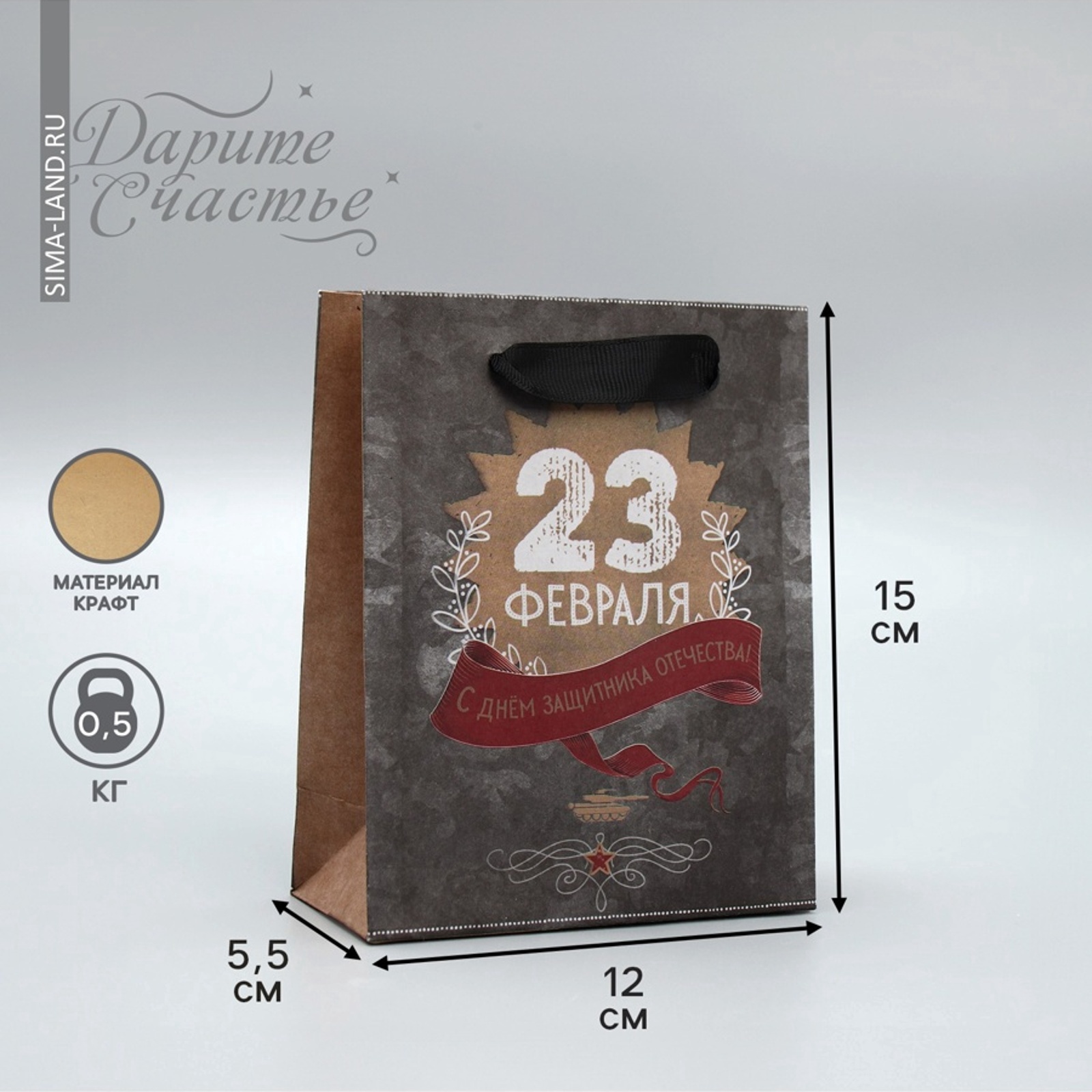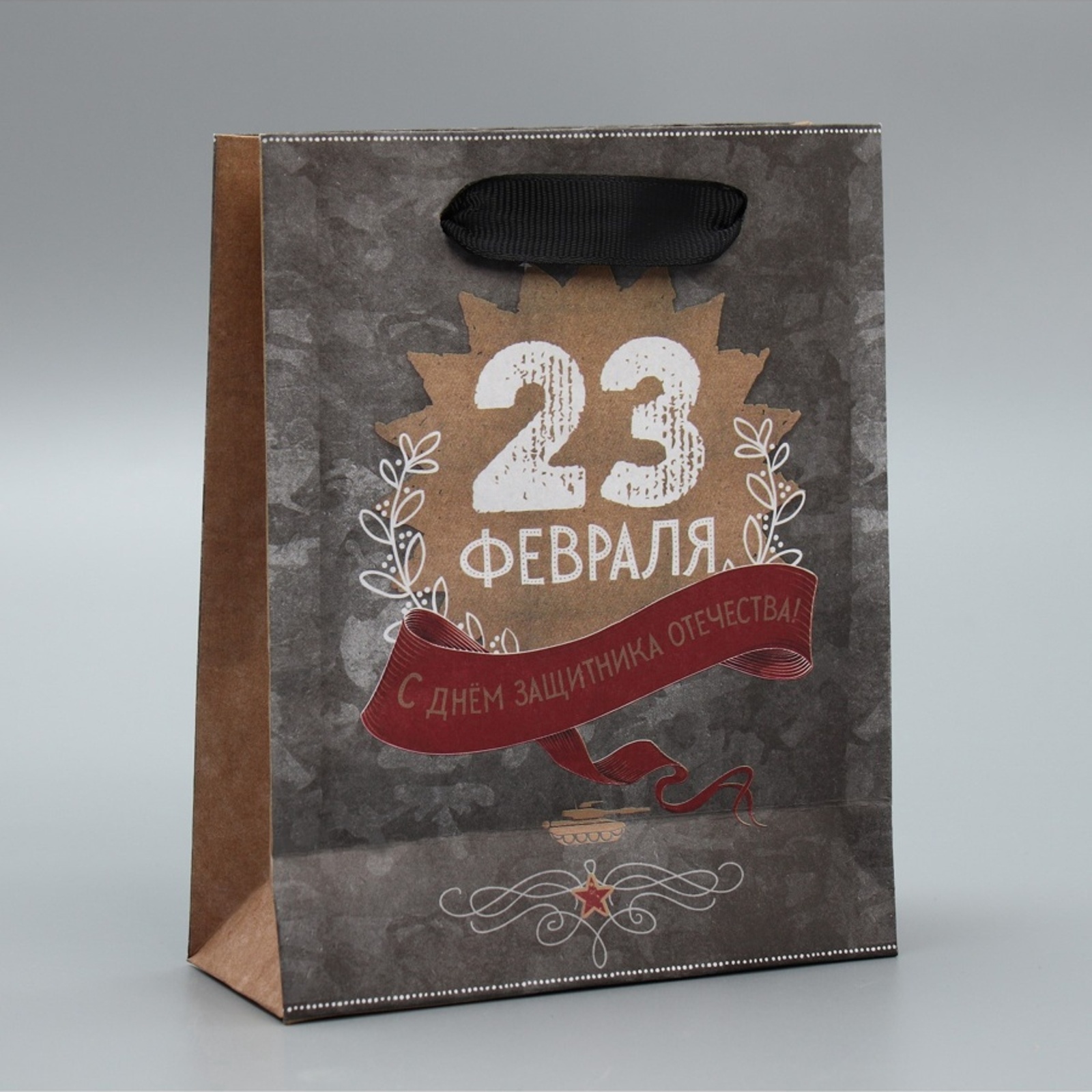 Пакет подарочный крафтовый, упаковка, «с 23 февраля», 12 х 15 х 5.5 см