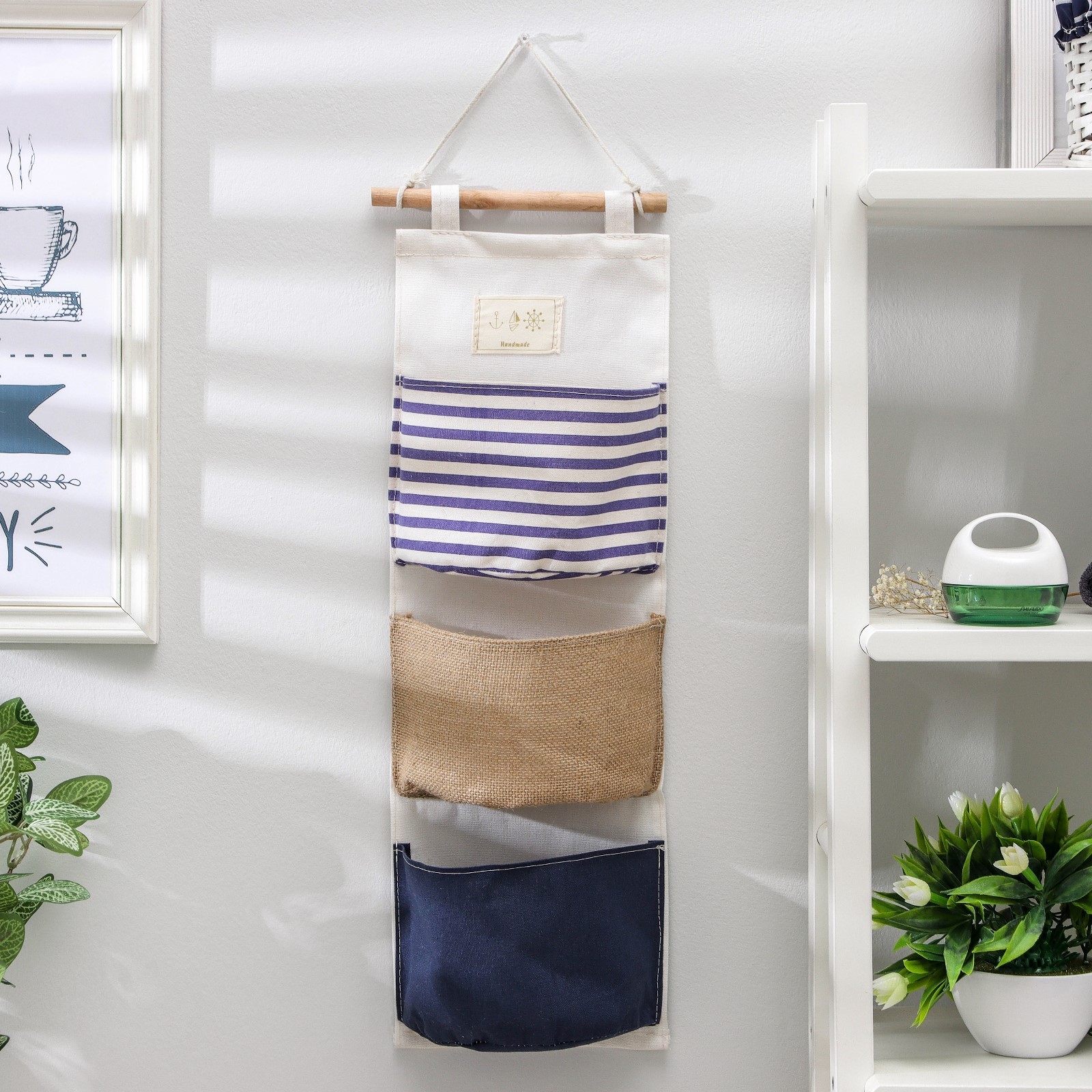 Органайзер подвесной с карманами, 3 отделения, 20x60 см, цвет микс