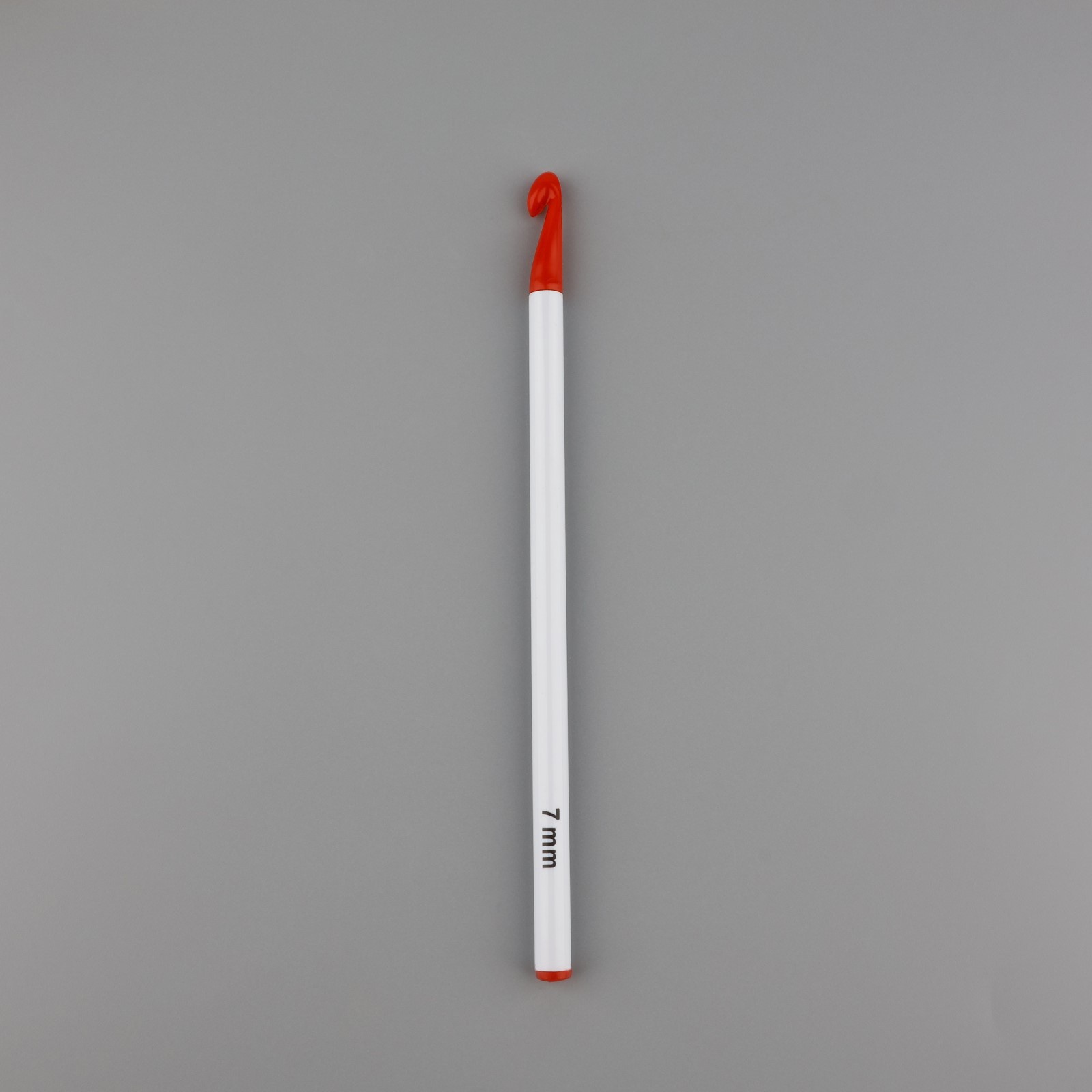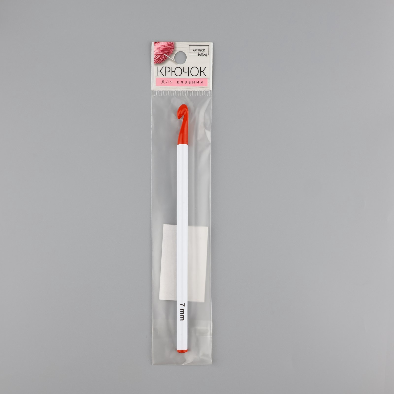 Крючок для вязания, D=7 мм, 16 см, цвет белый/красный