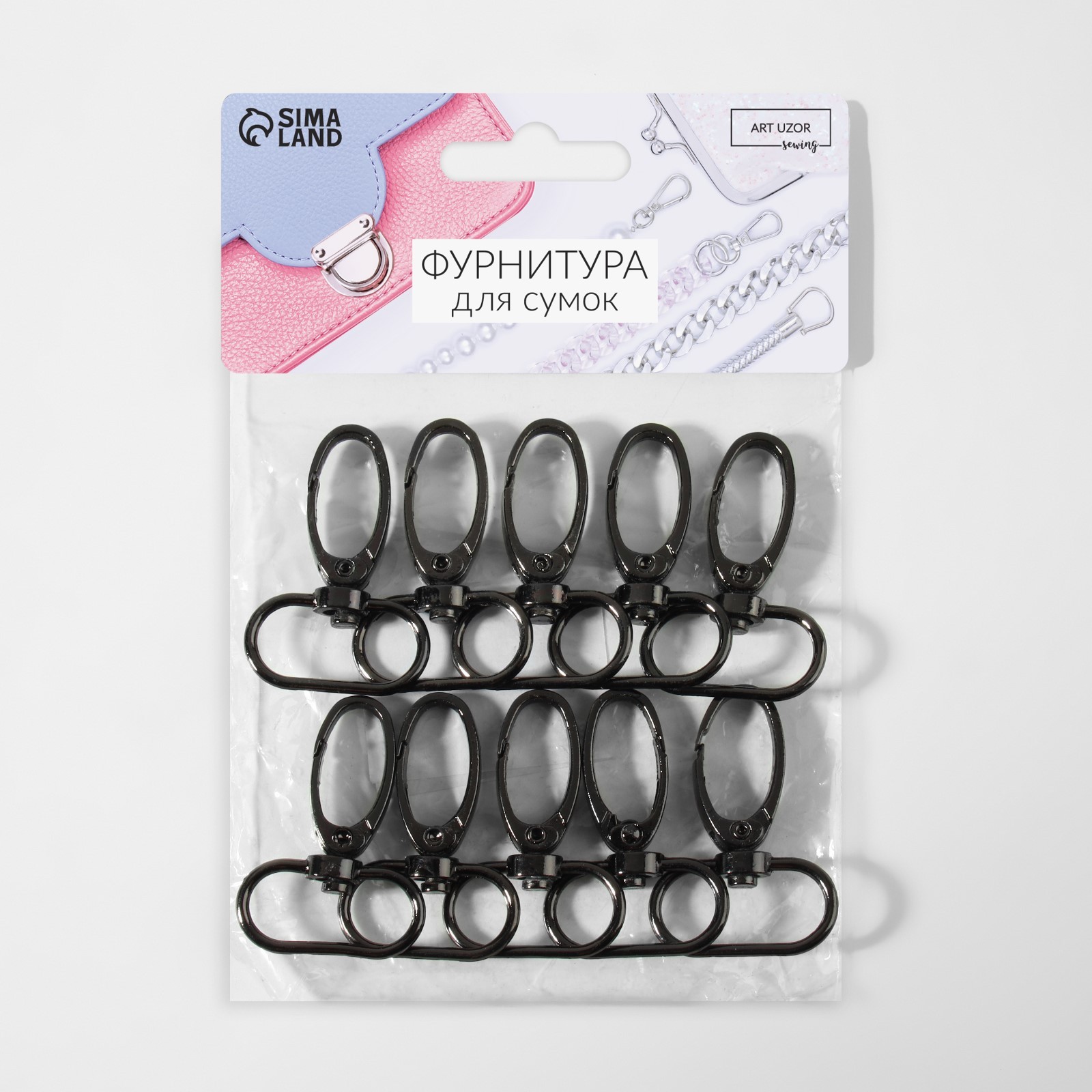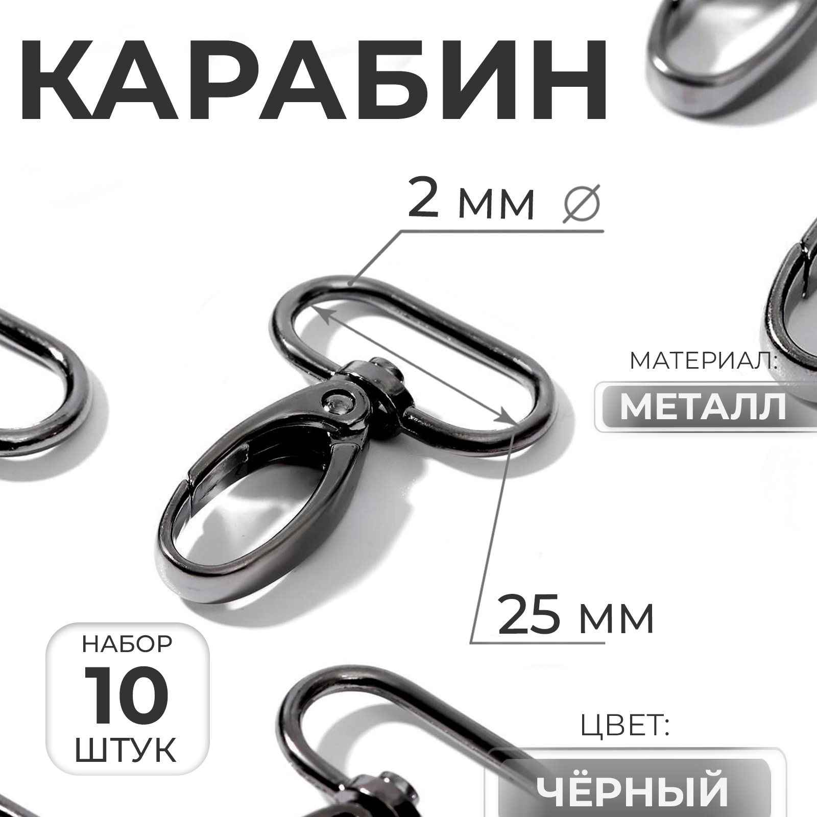 Карабин металлический, 45 30 мм / 25 2 мм, 10 шт., чёрный
