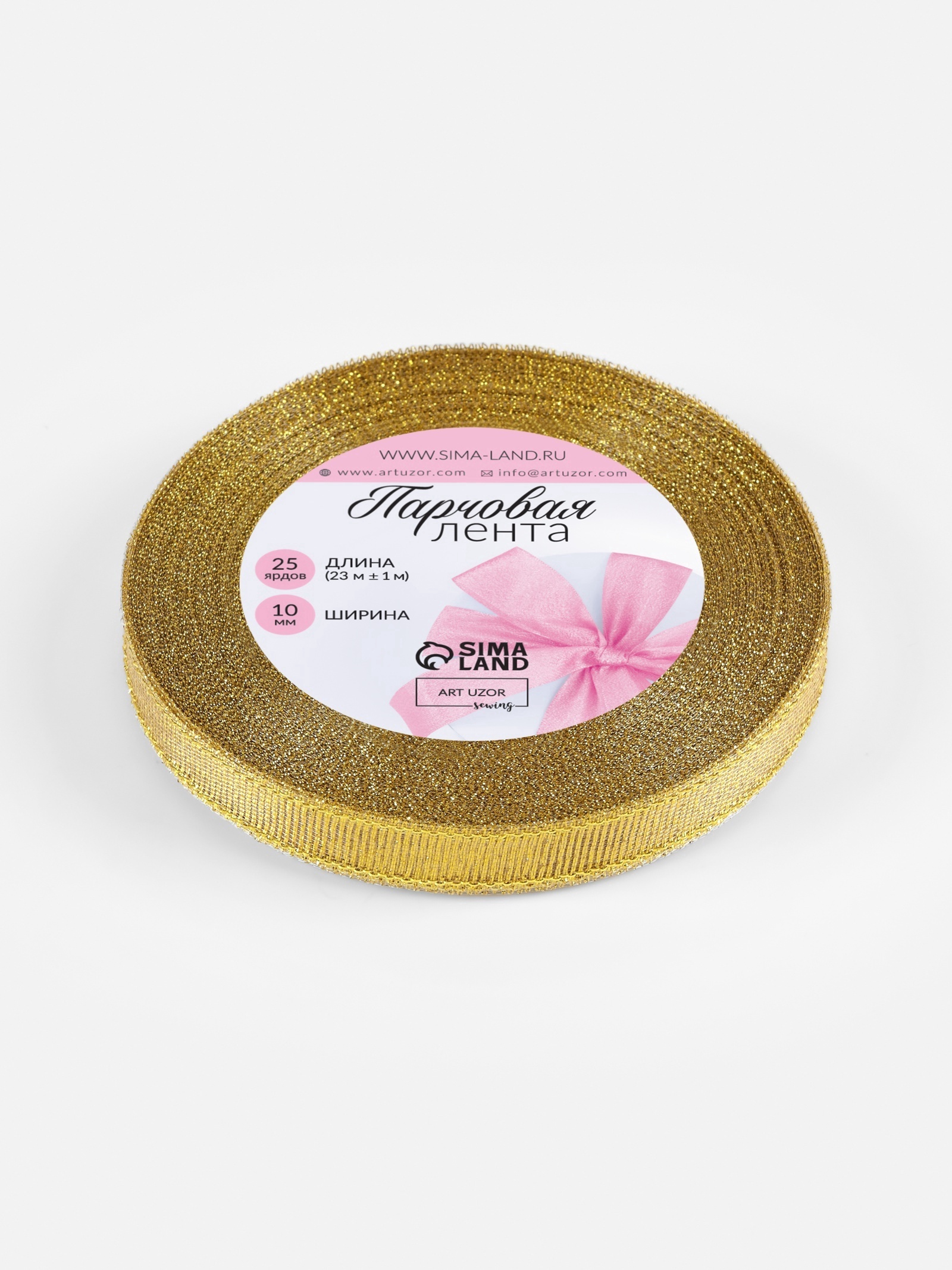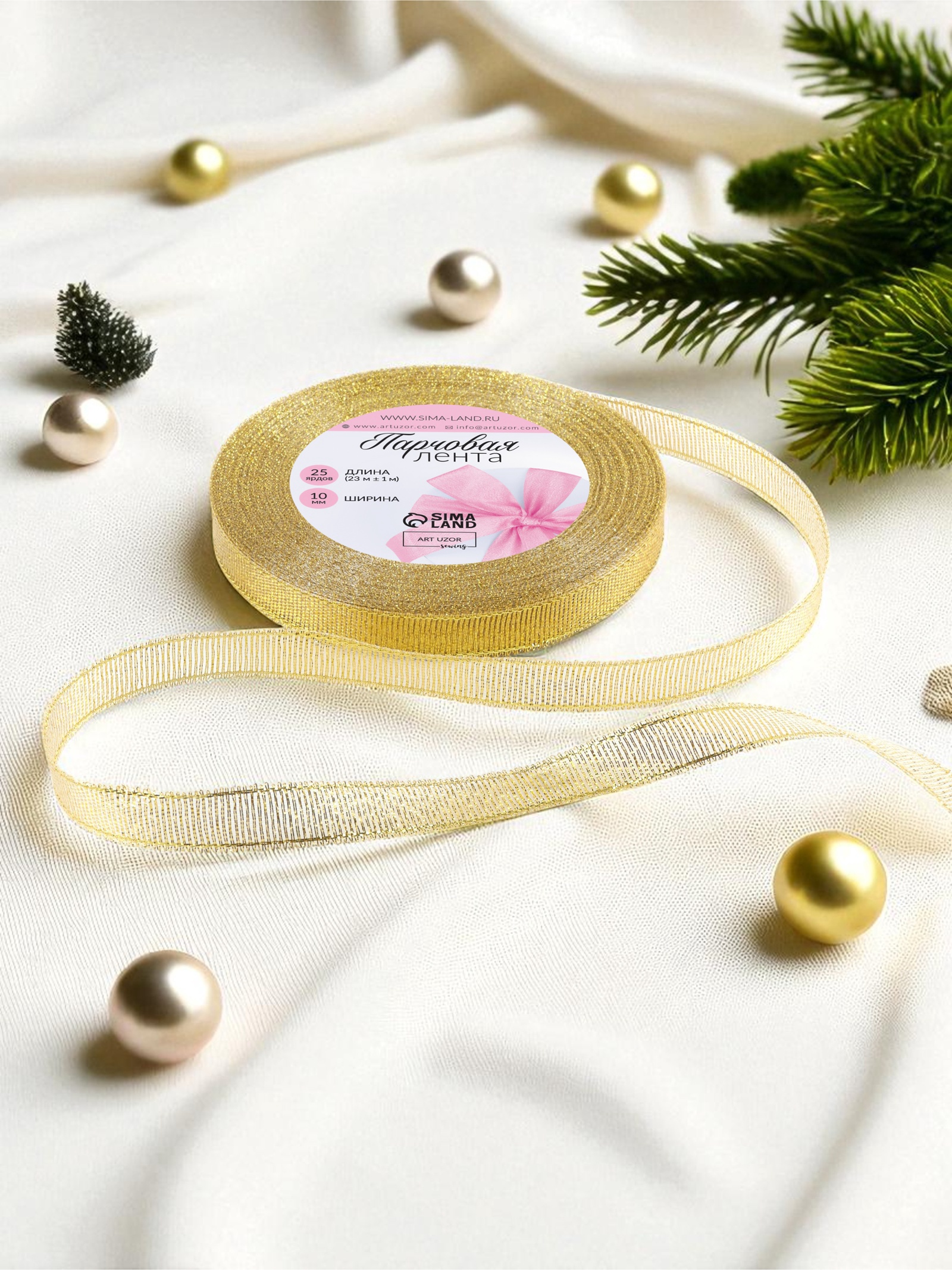 Лента парчовая, 10 мм, 23±1 м, цвет золотой