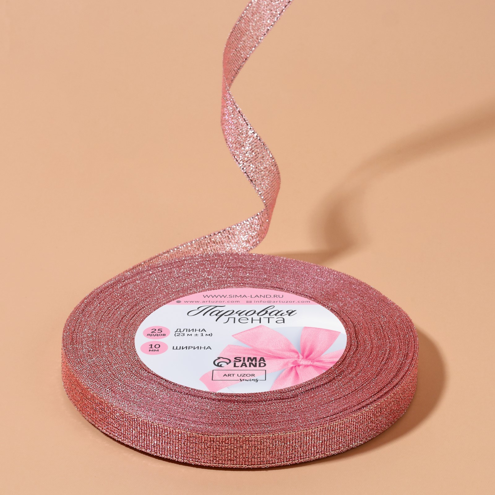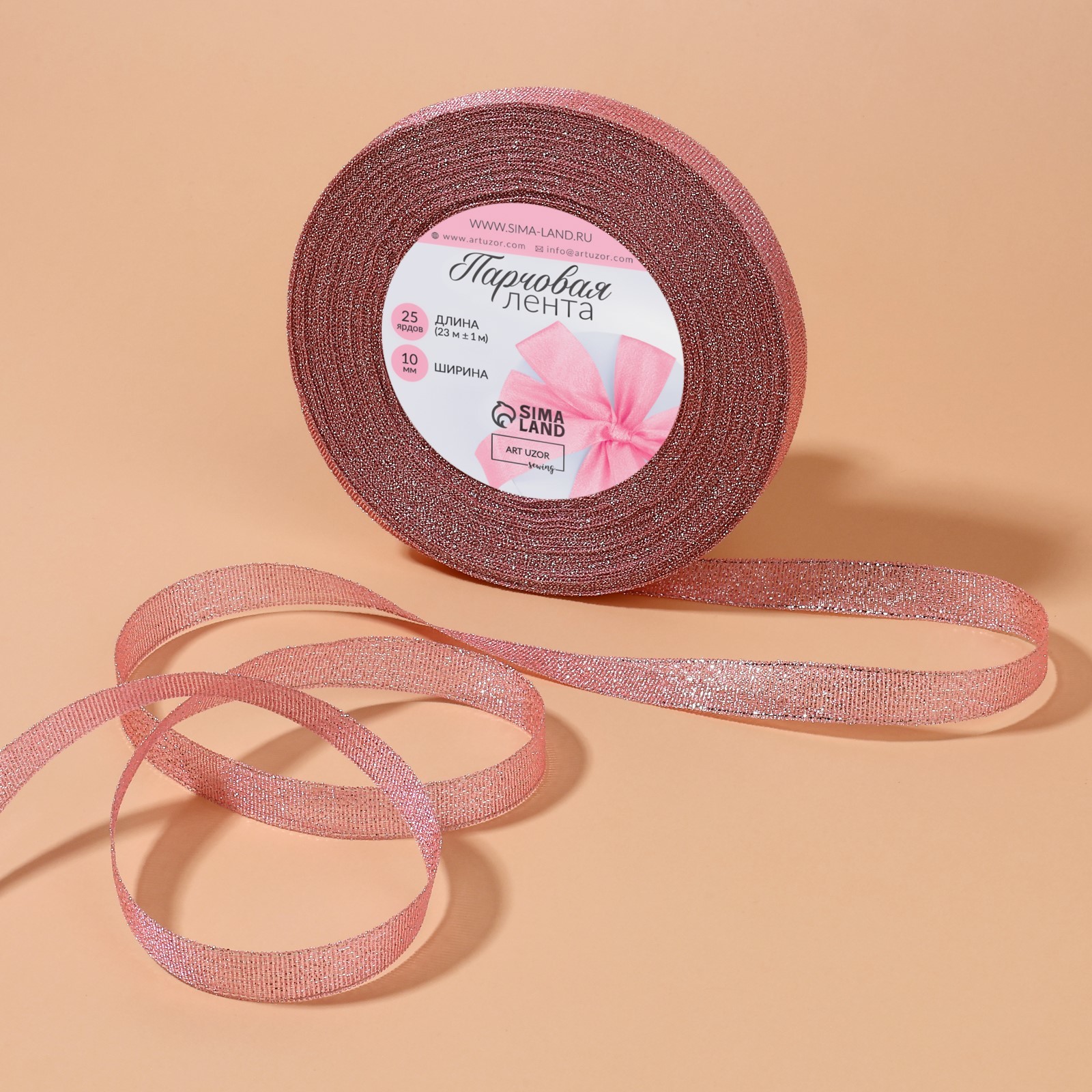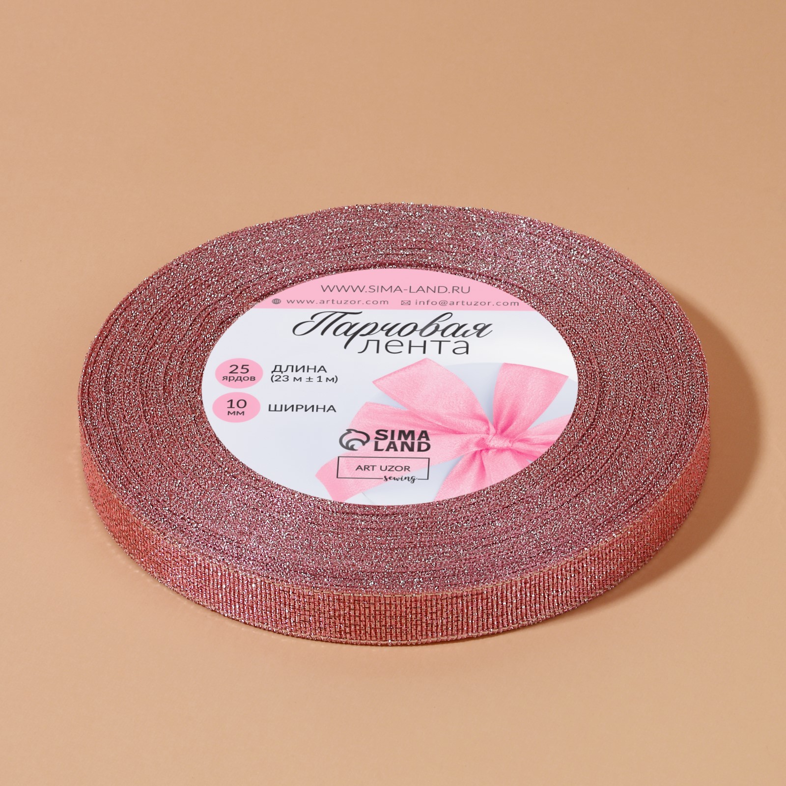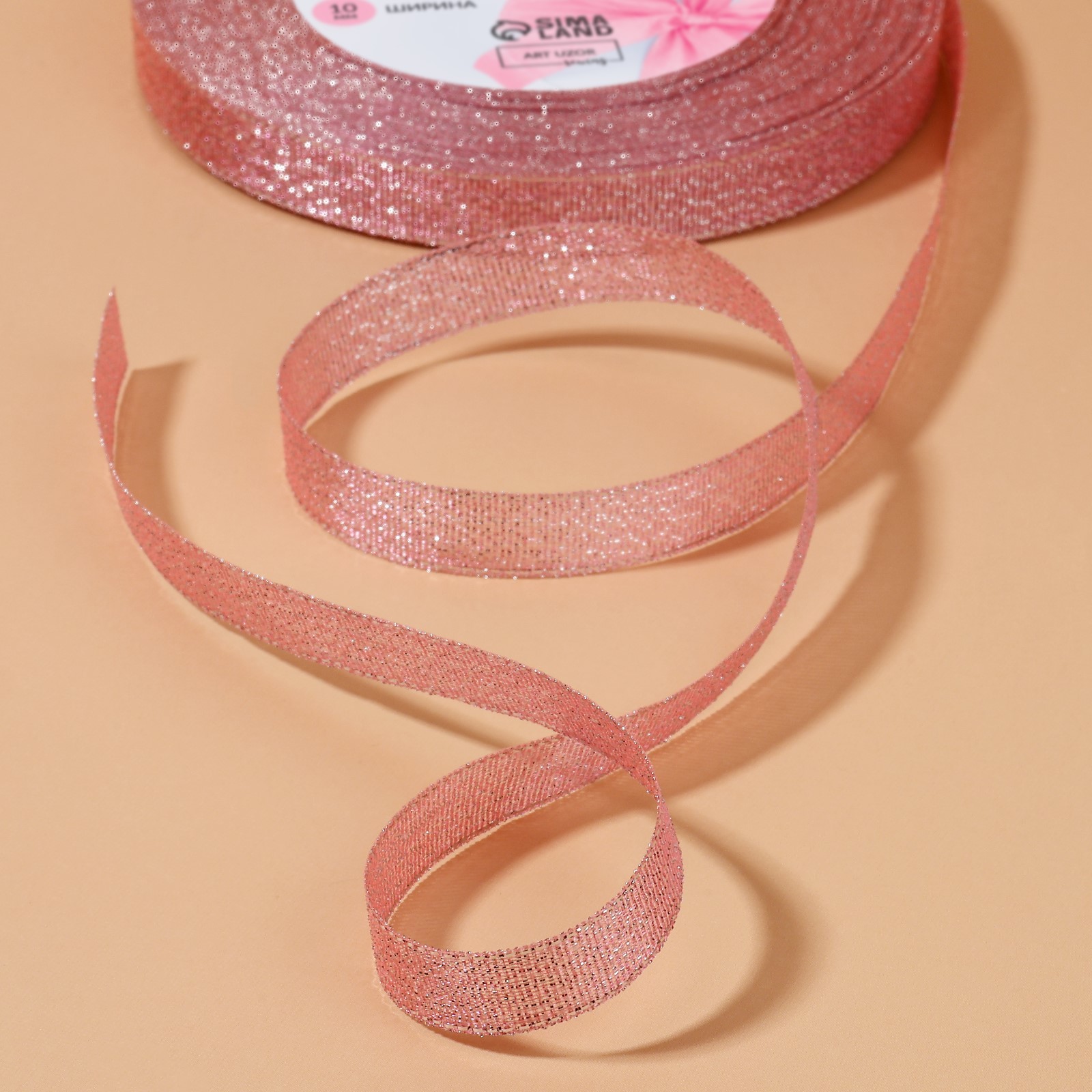 Лента парчовая, 10 мм, 23±1 м, розовая №013