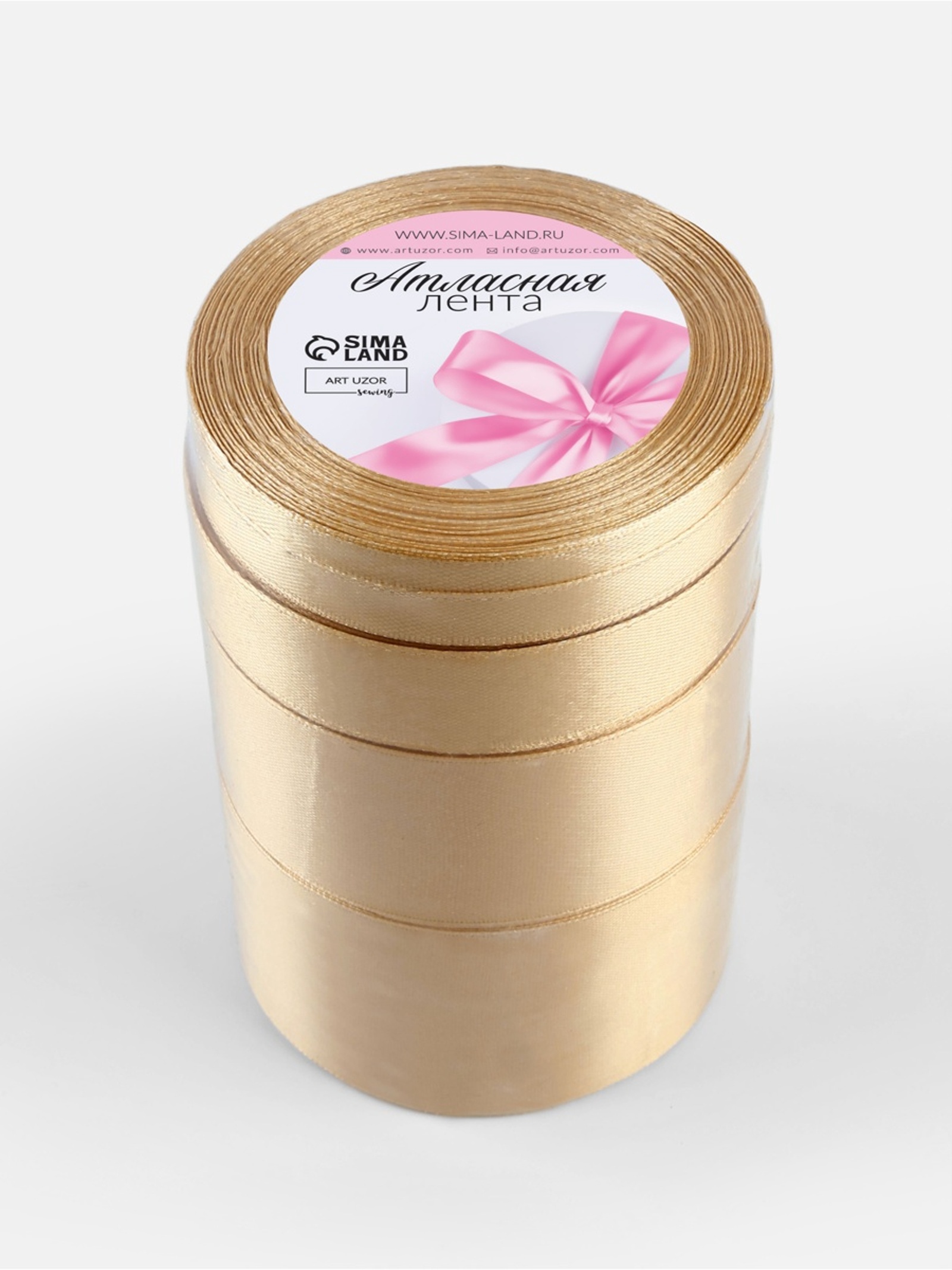 Атласная лента, набор 5 шт., 6/10/20/40/50 мм, 23±1 м, бежевая №105