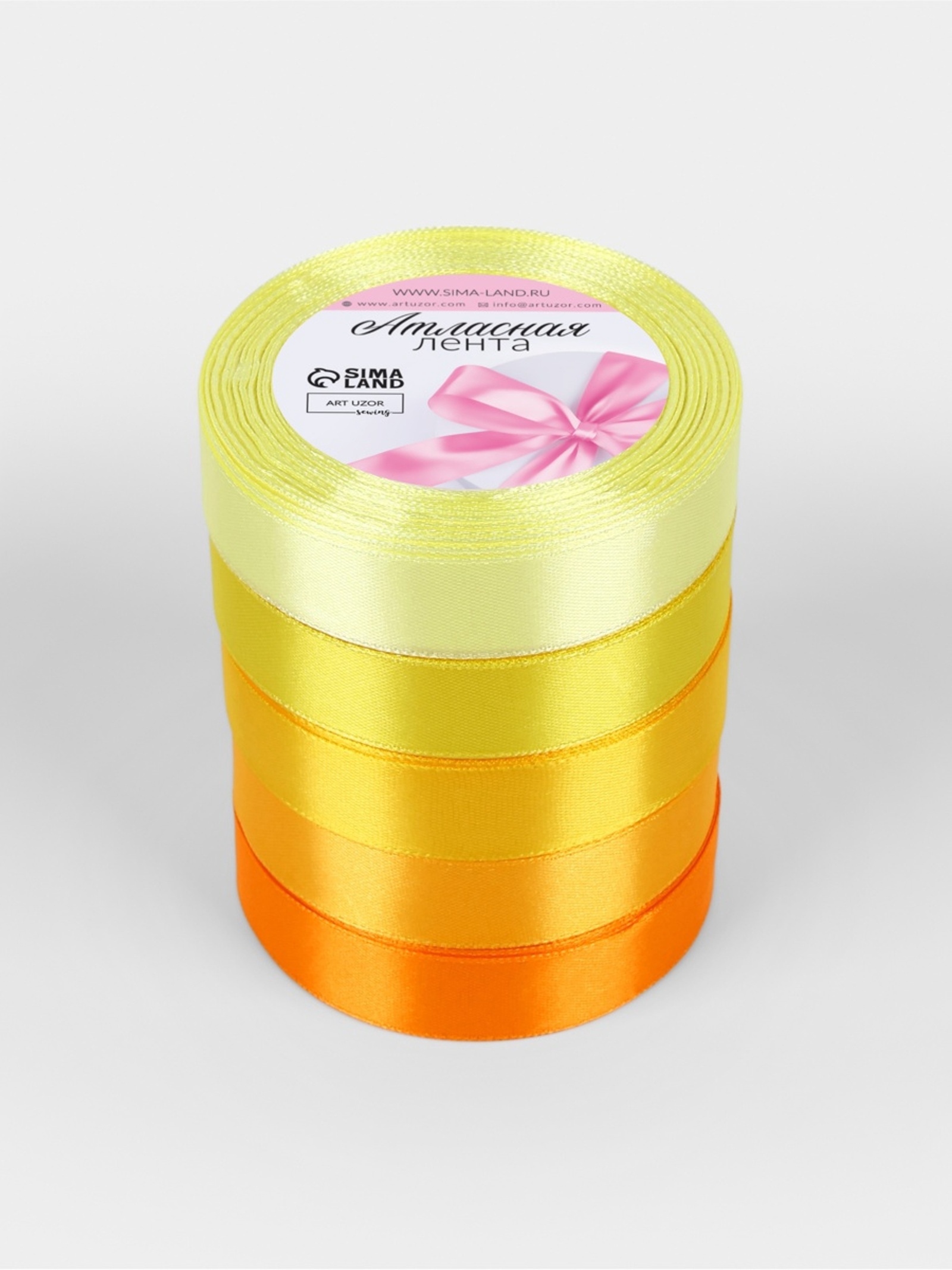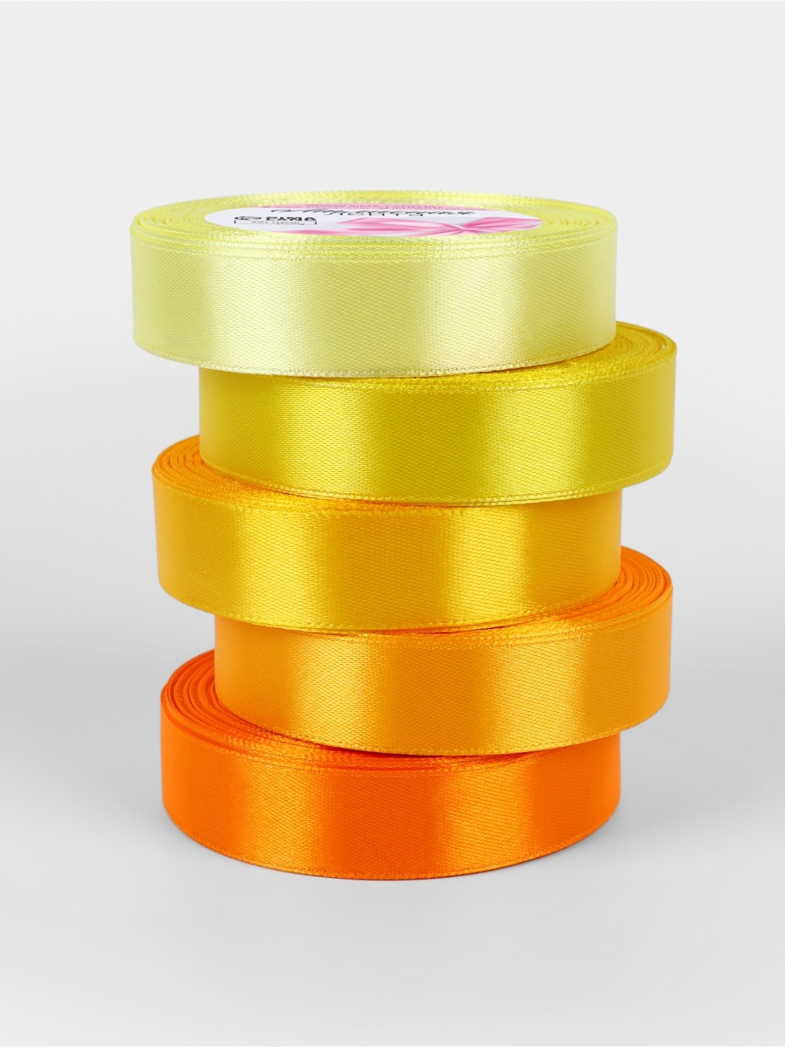 Набор атласных лент, 5 шт., 20 мм, 23±1 м, жёлтый, оранжевый