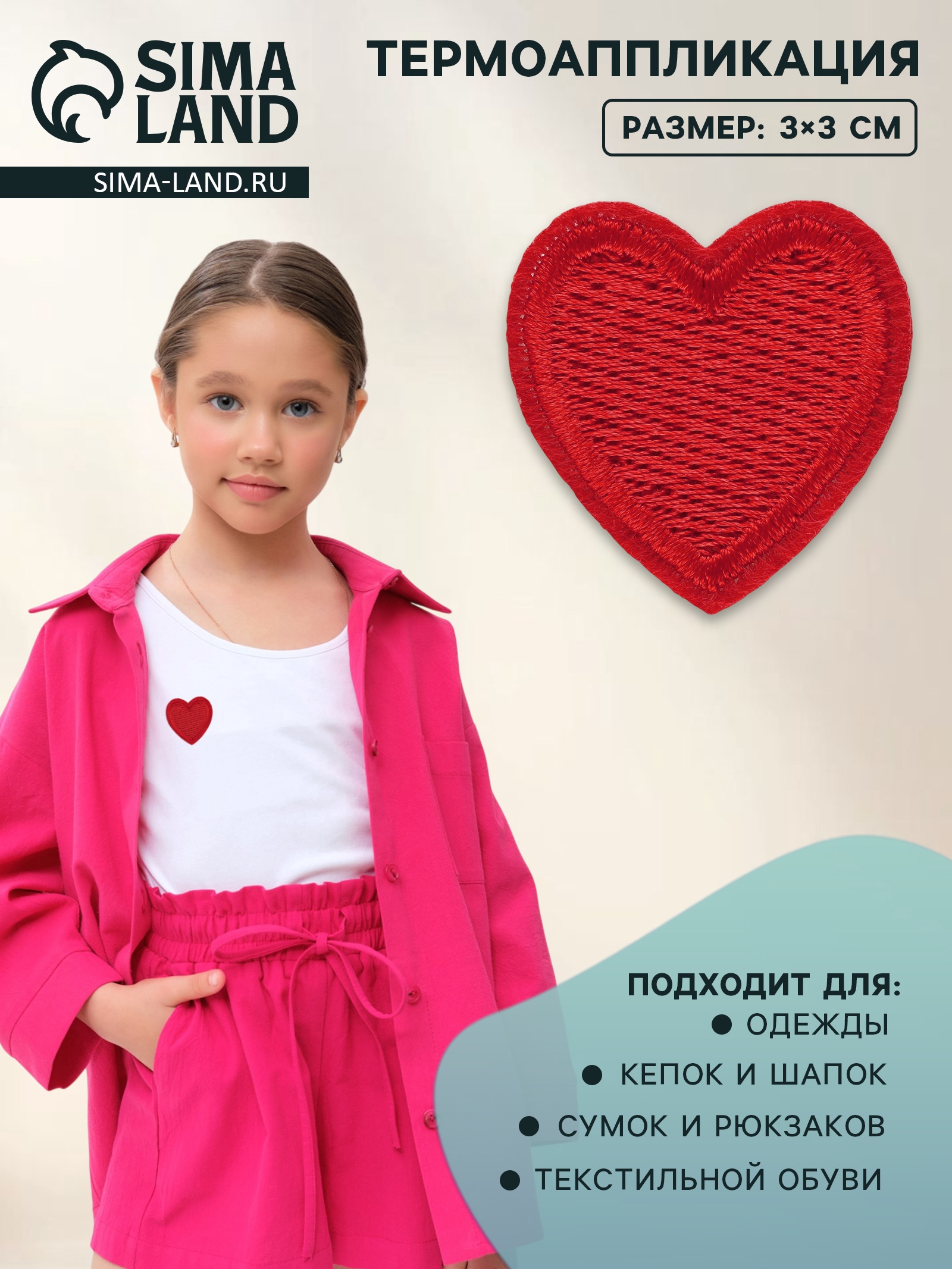 Термоаппликация «сердце», 3 3 см, красная
