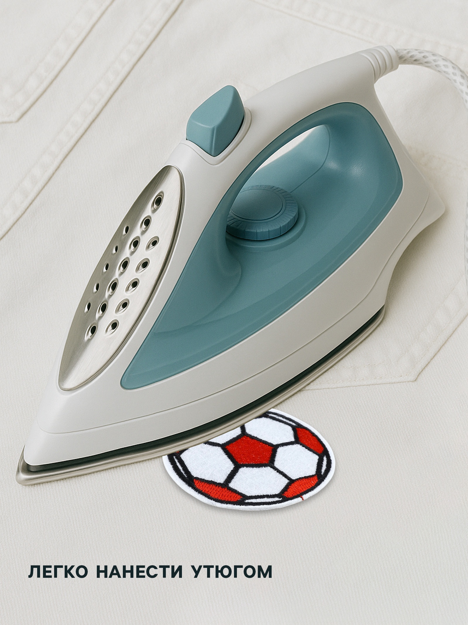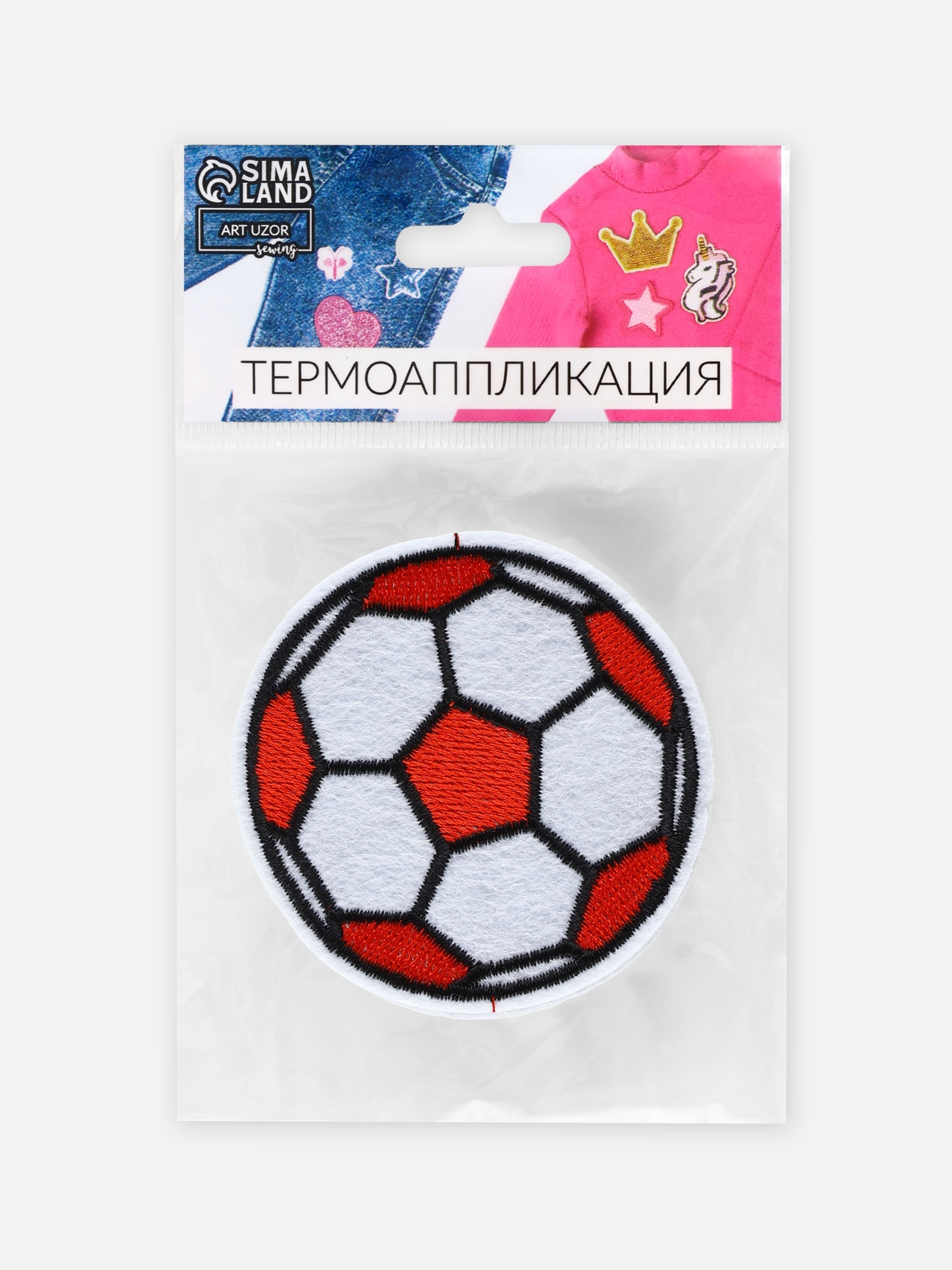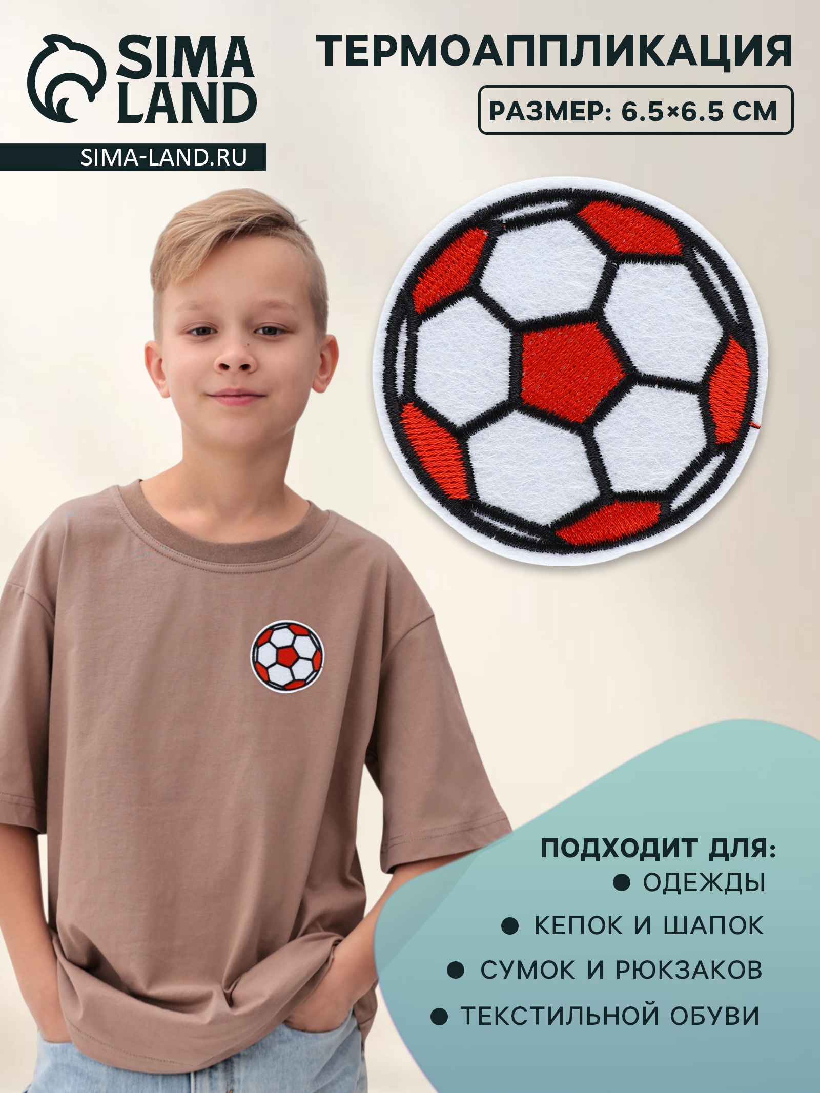 Термоаппликация «футбольный мячик», D=6.5 см, красная, белая