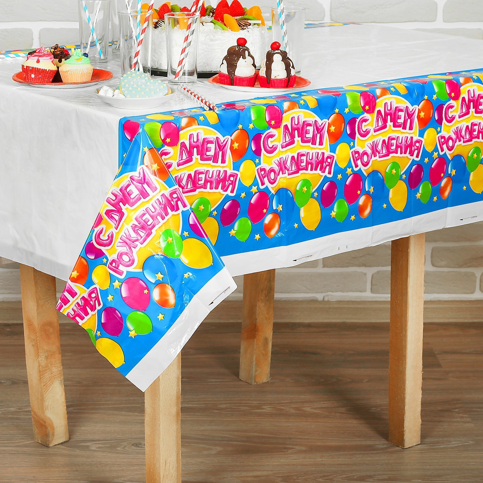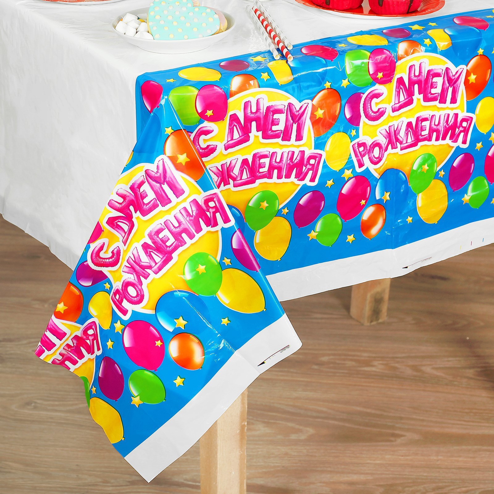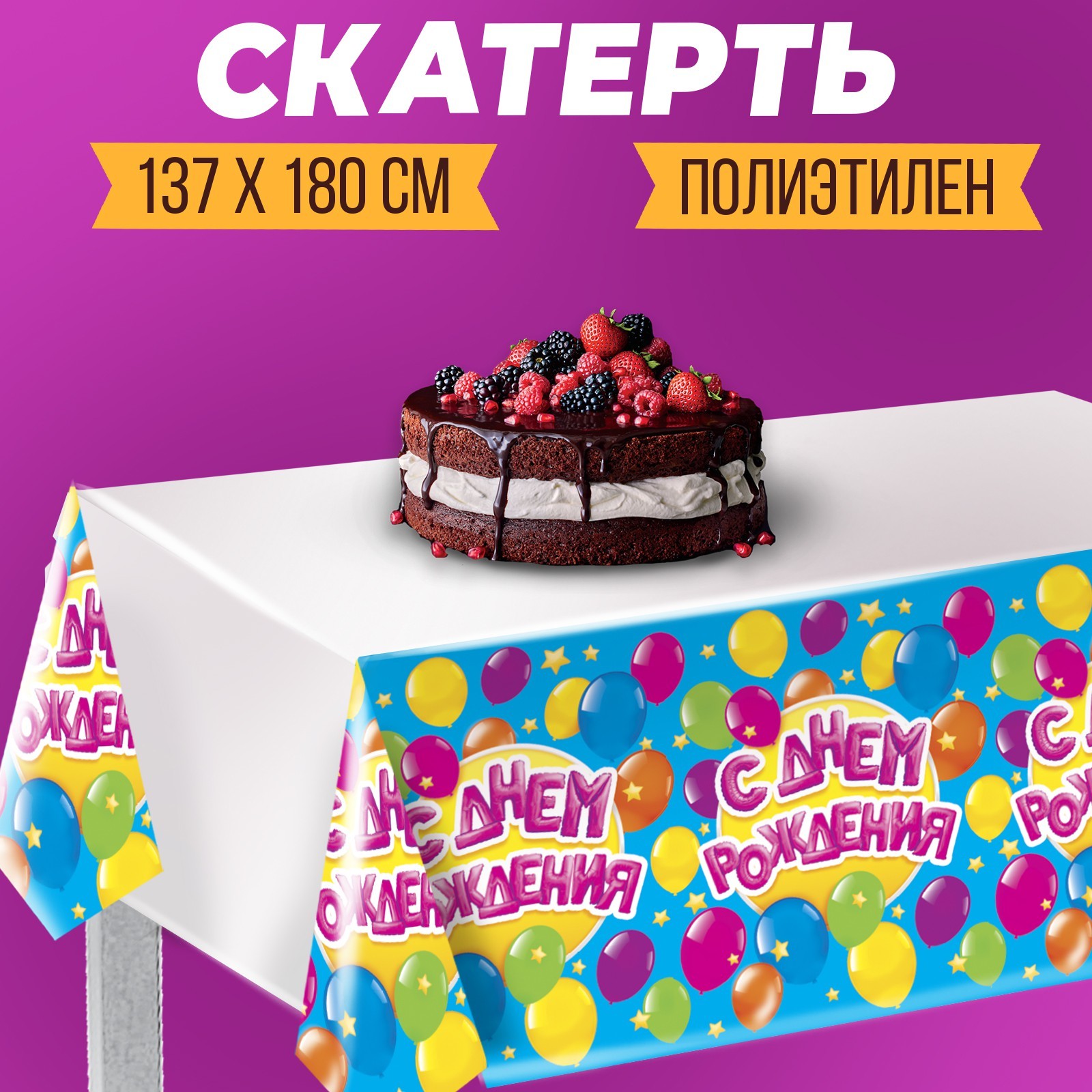 Скатерть одноразовая «с днём рождения», шарики, 180х137 см