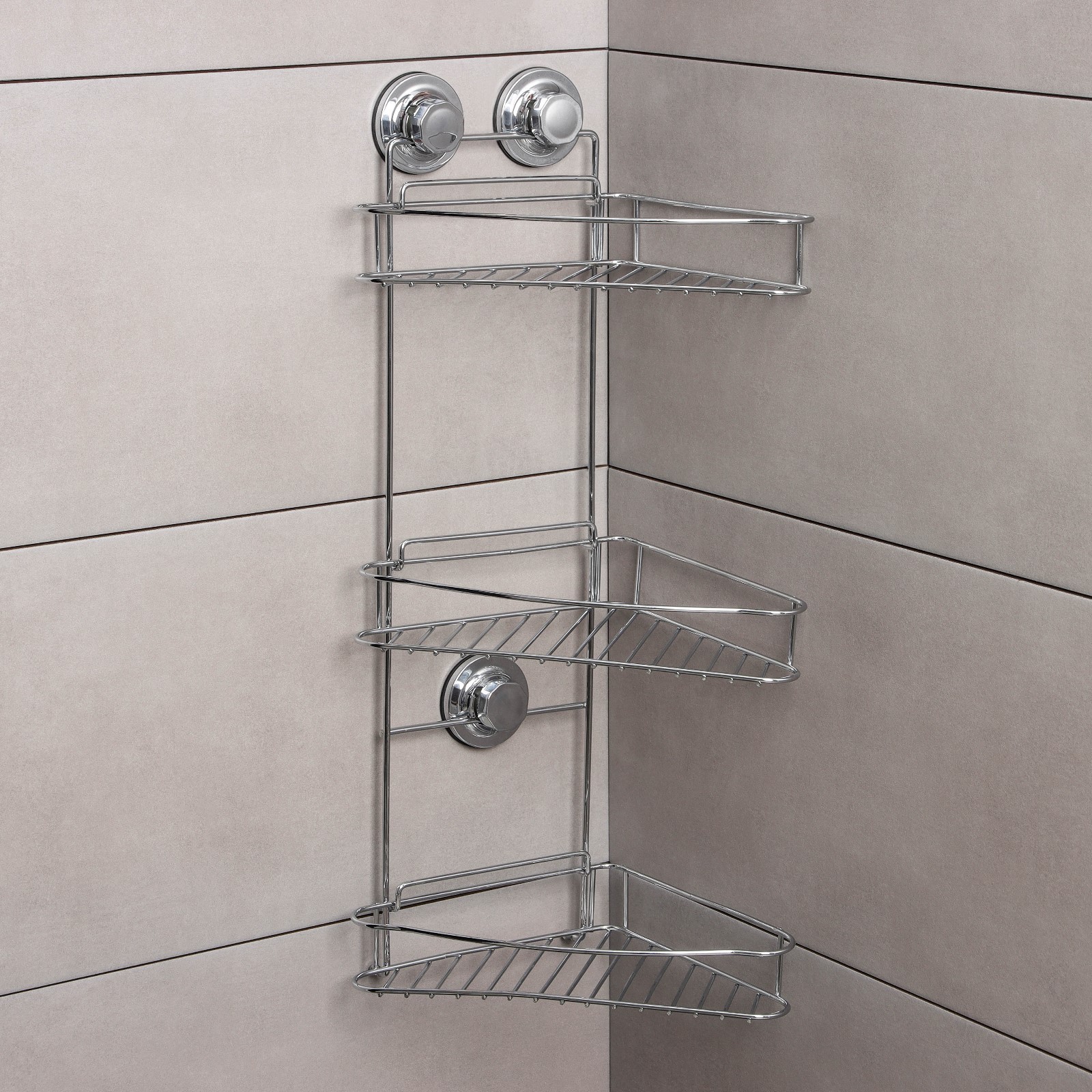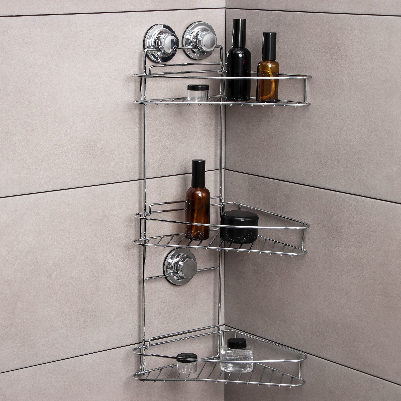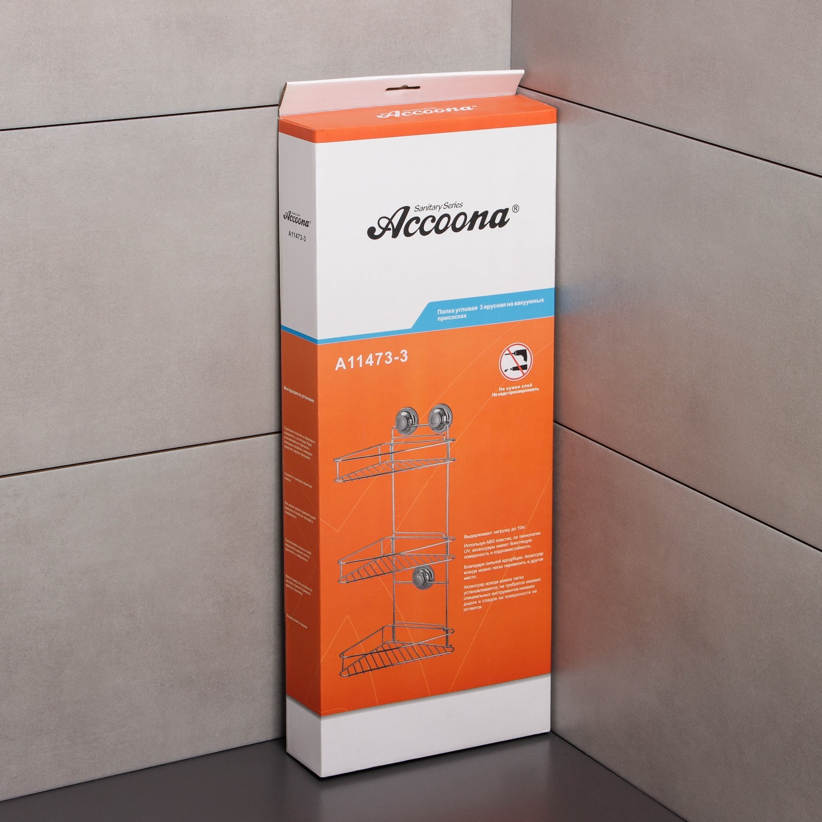 Полка угловая 3-х ярусная Accoona, A11473-3, 20x30x57 см, на вакуумных присосках, цвет хром